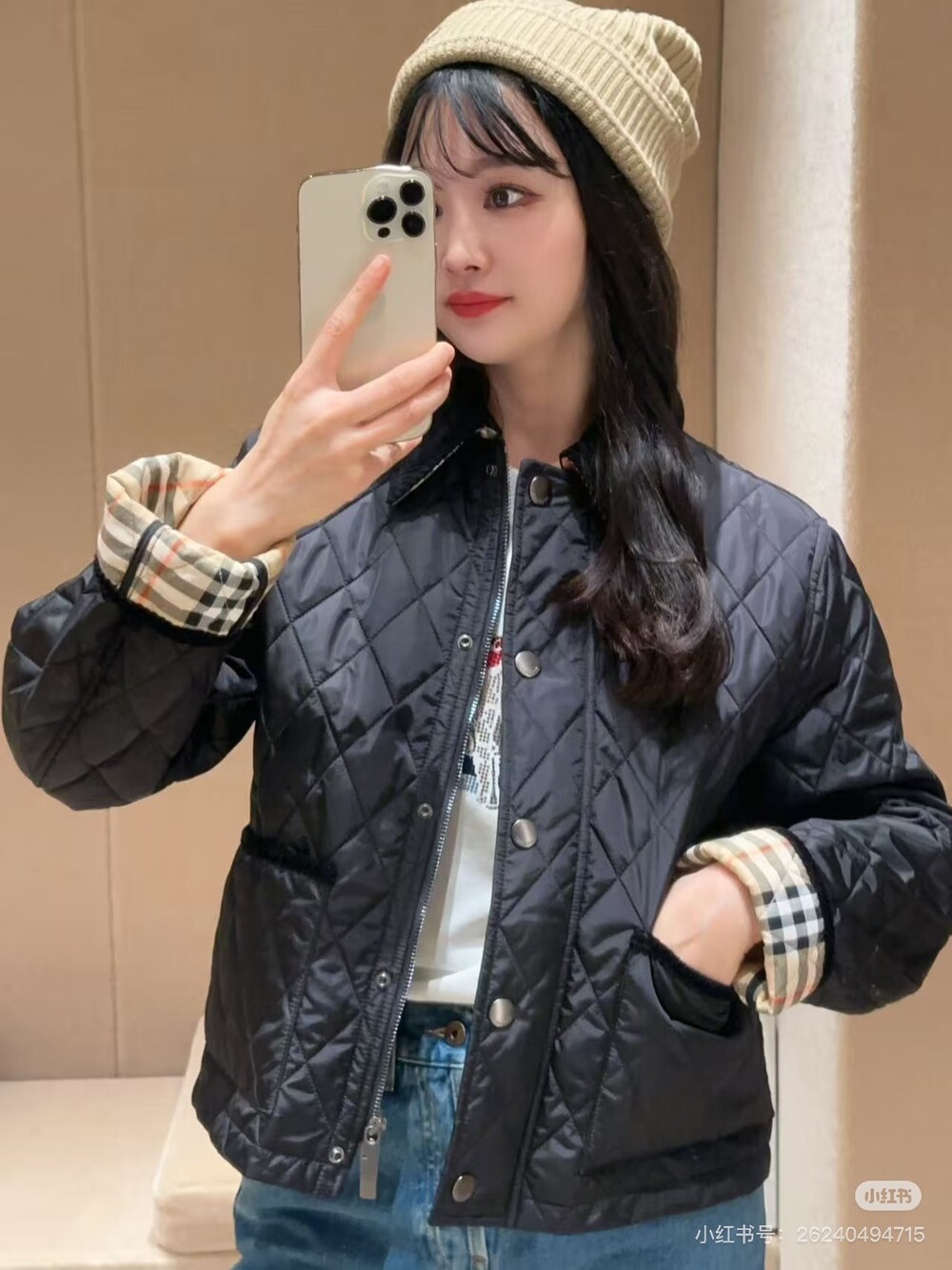 이 다이아몬드 패턴 퀼팅 재킷은