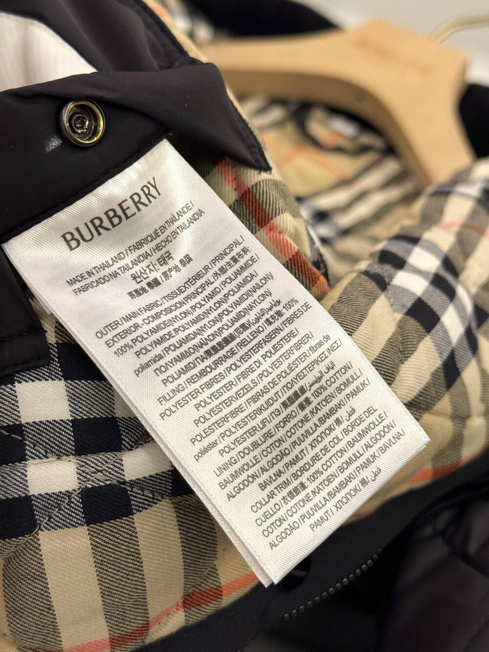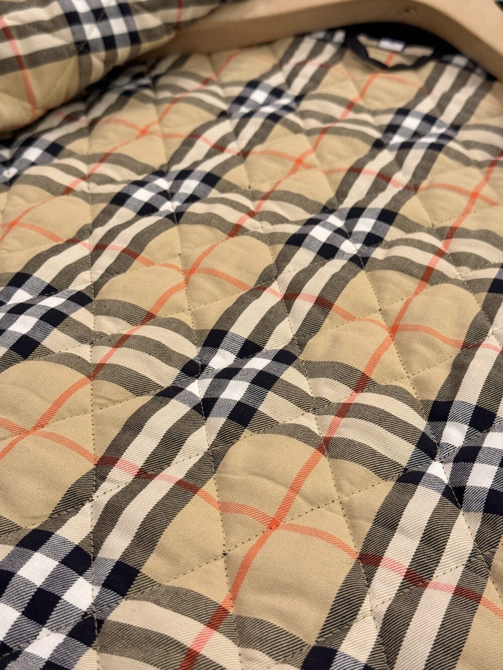 샌드 컬러의 체크 코튼 트윌 안감이