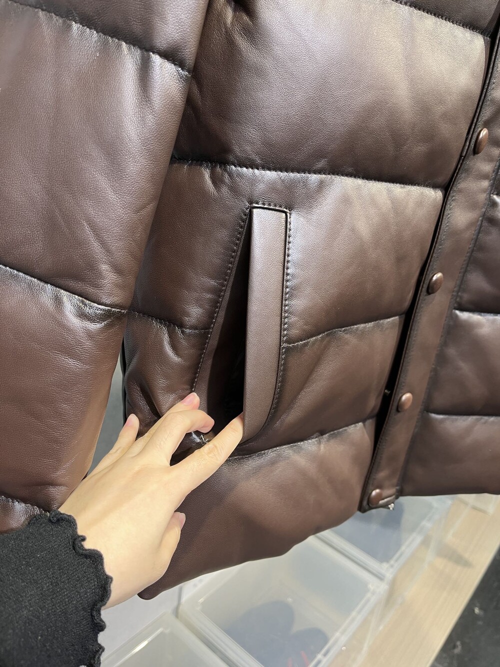 맞춤형 가죽 다운 자켓입니다!