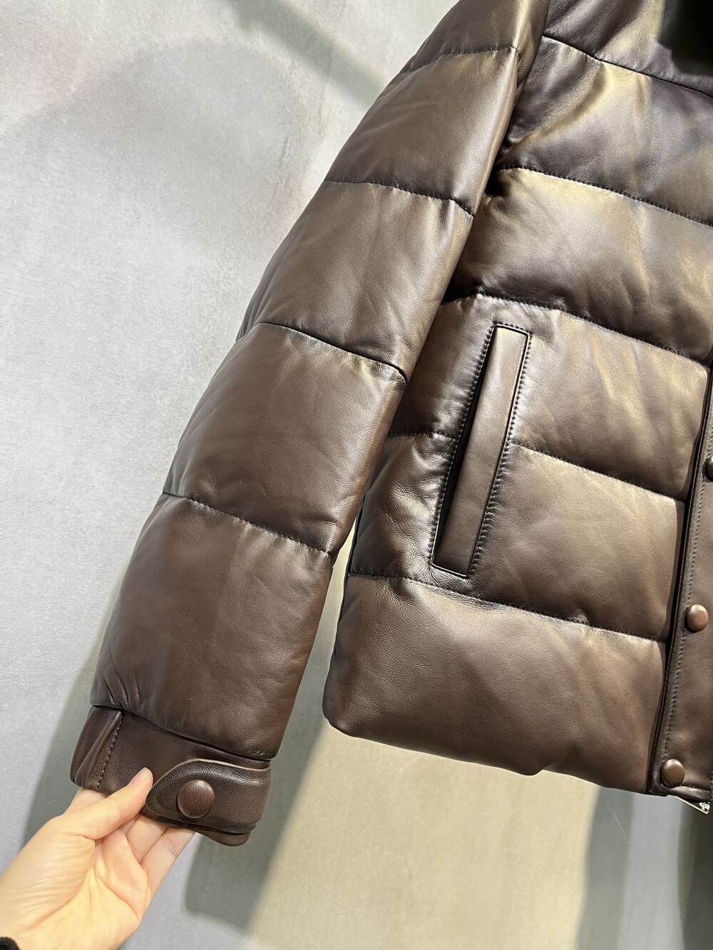 소맷단은 천연가죽 단추로