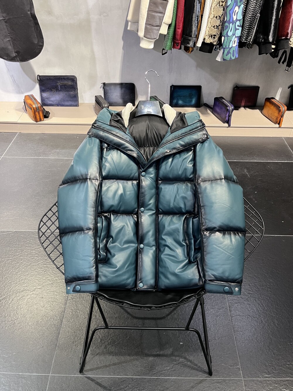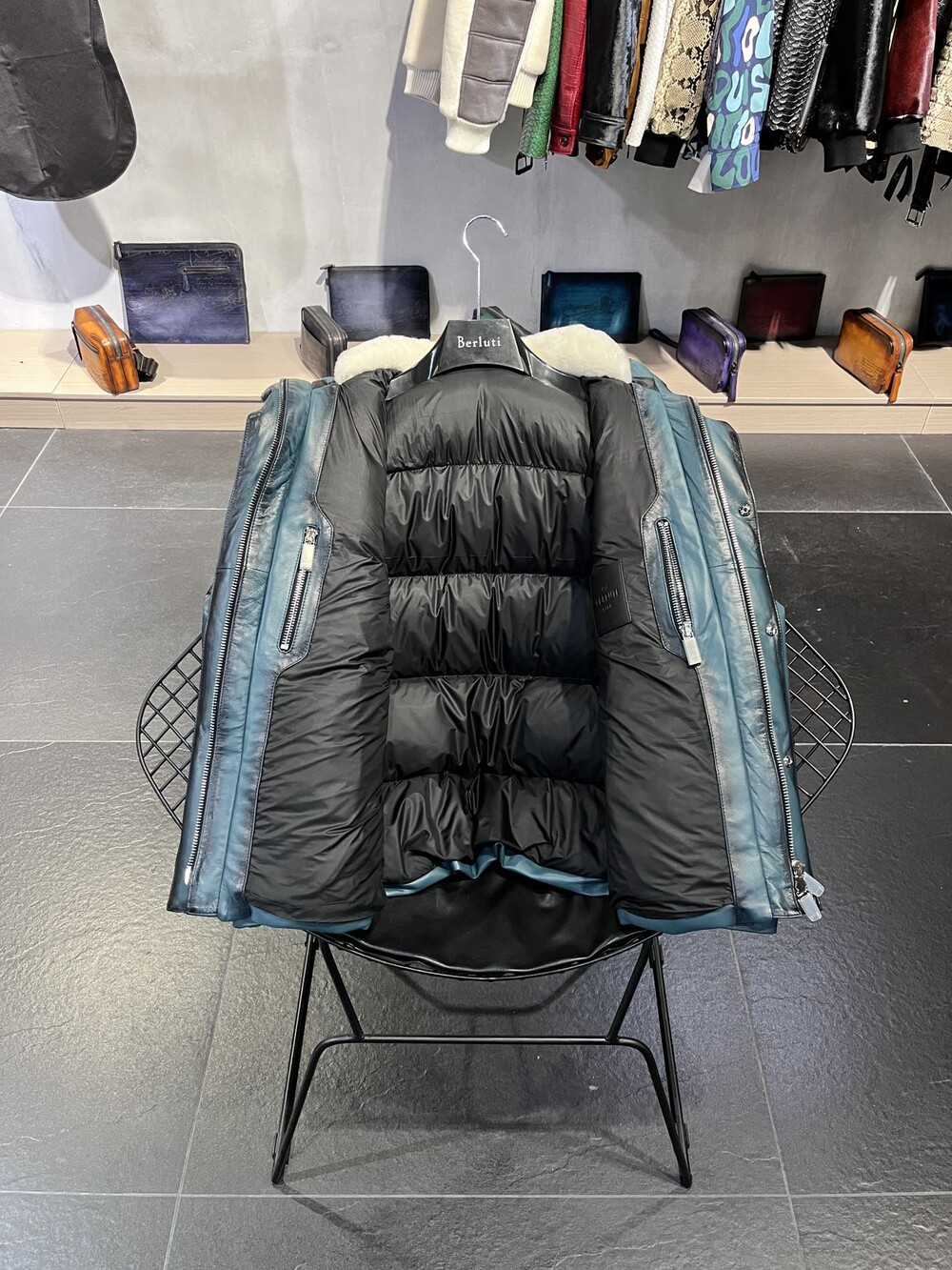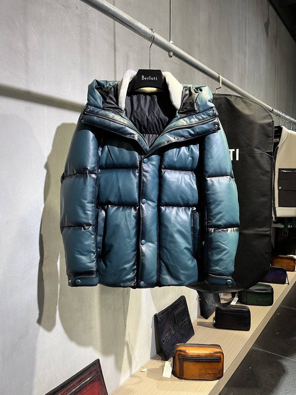 □B.ERLUTI 파티나 레더 다운 자켓□