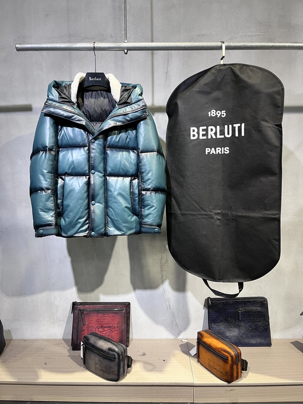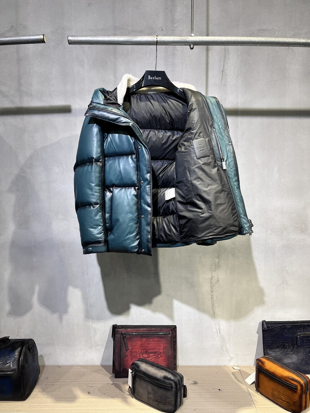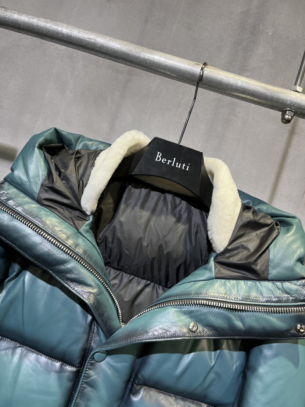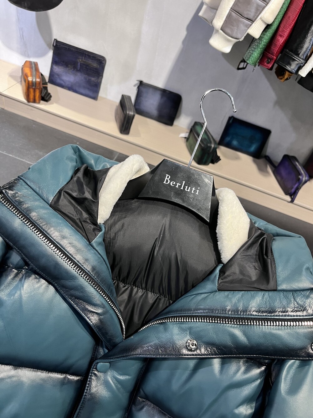 □B.ERLUTI 파티나 레더 다운 자켓□