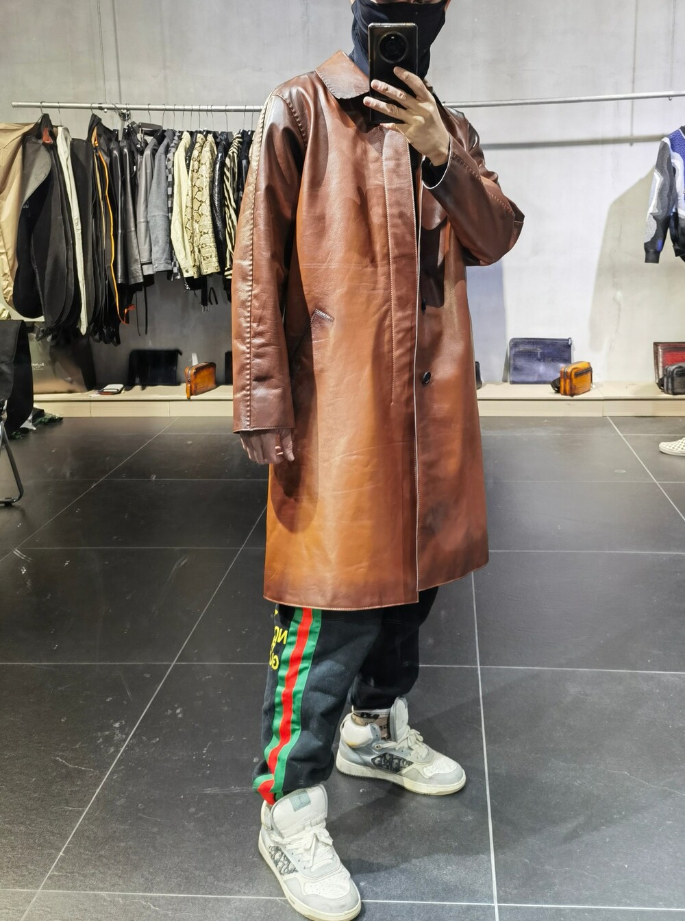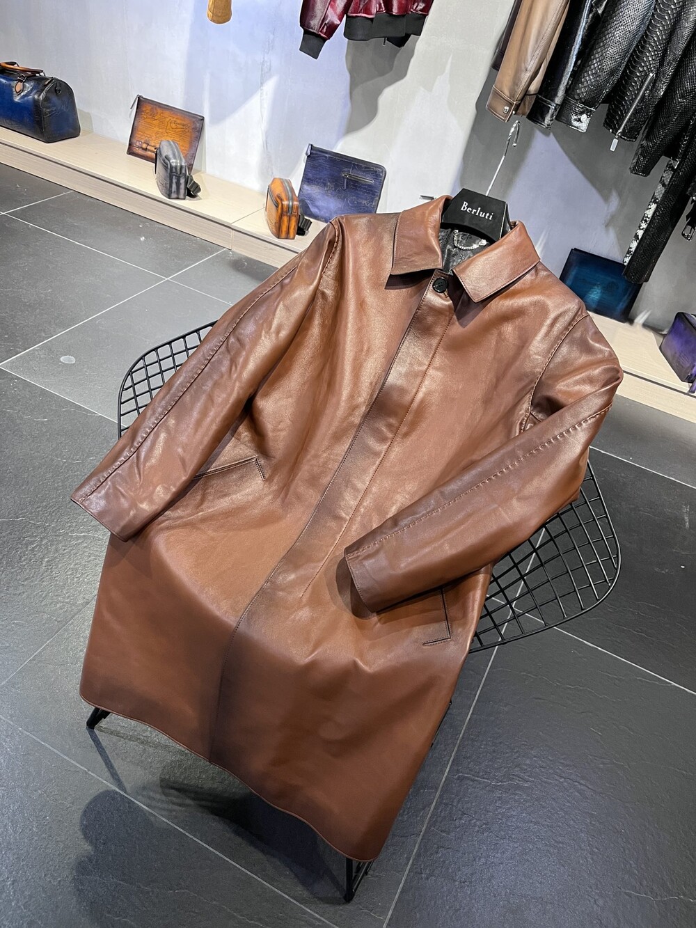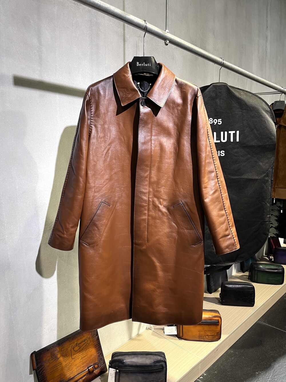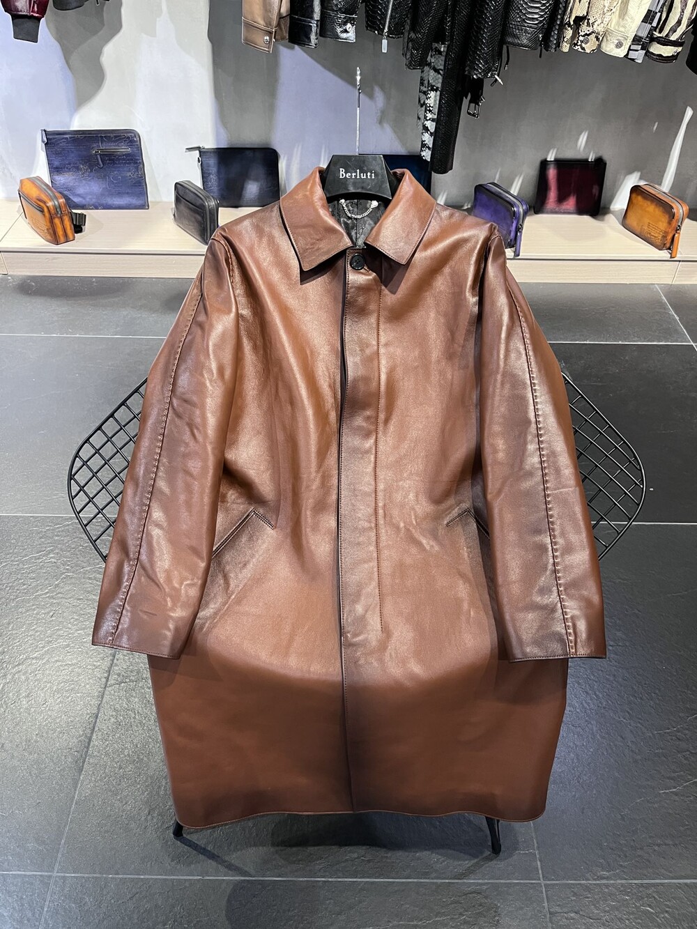 □B.ERLUTI 파티나 롱 가죽 코트□