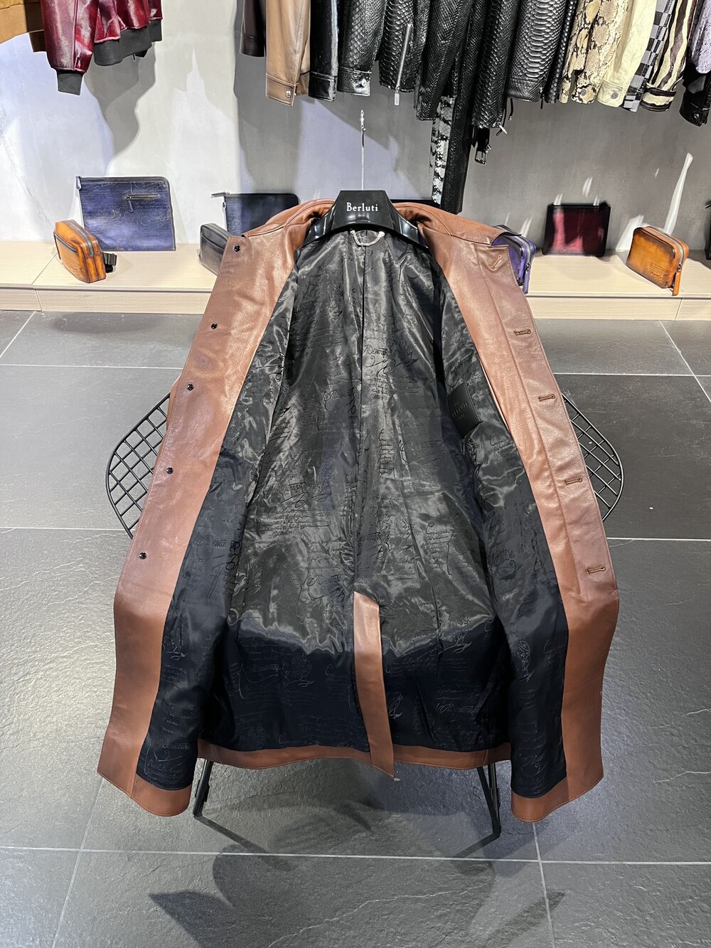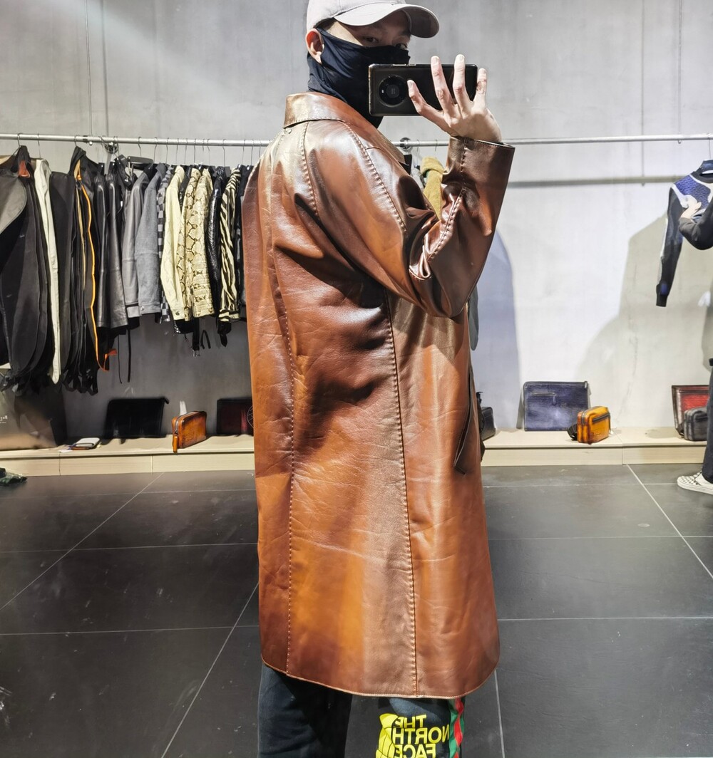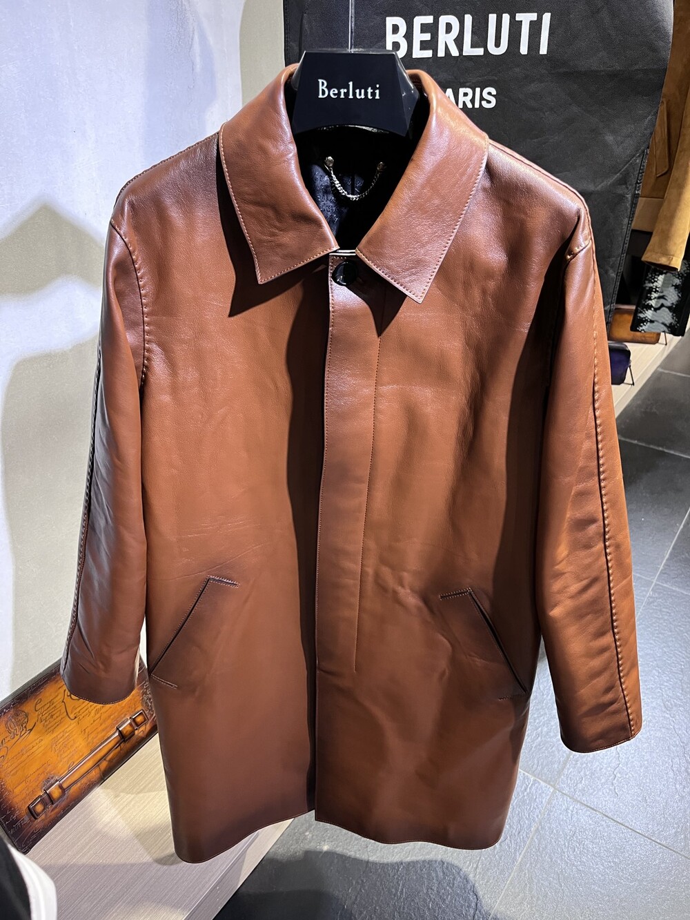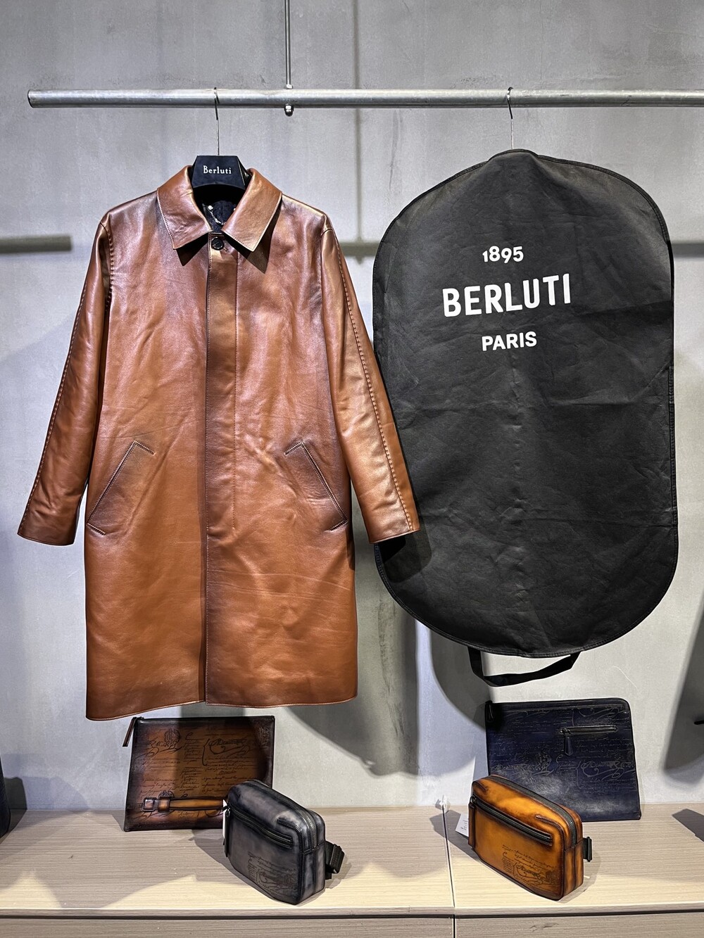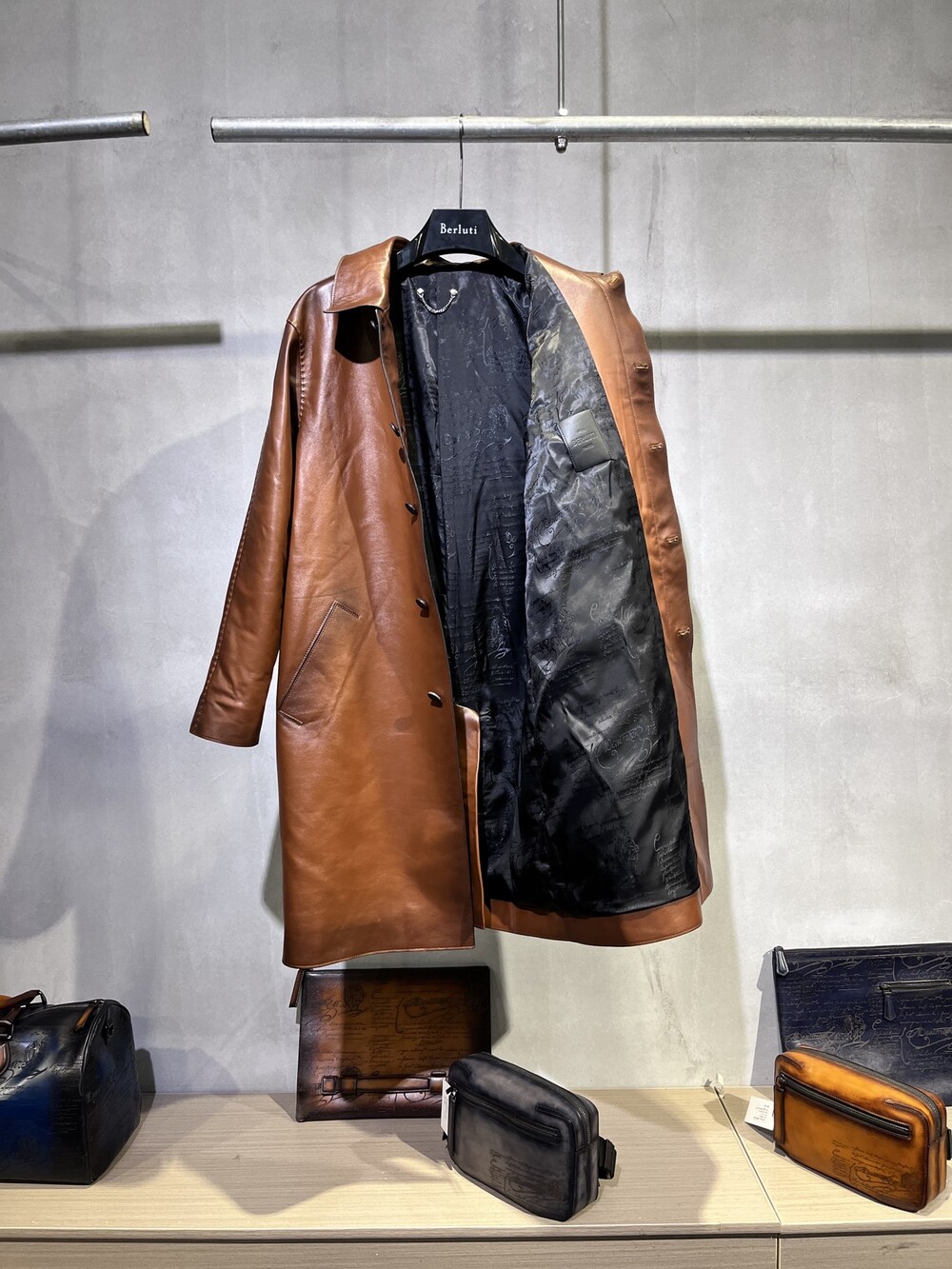 □B.ERLUTI 파티나 롱 가죽 코트□