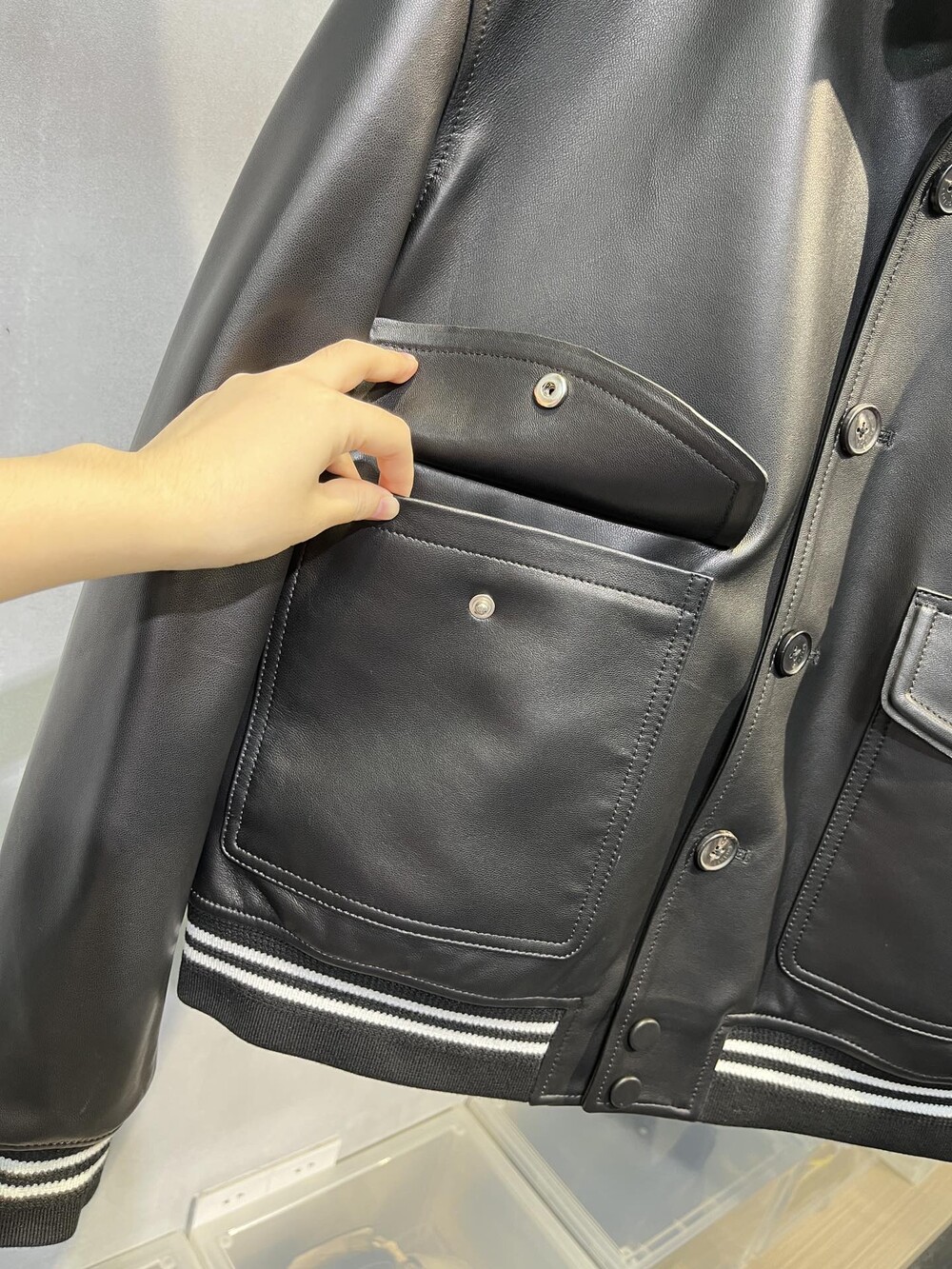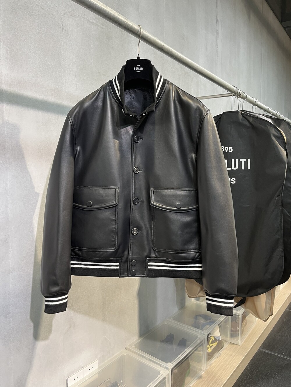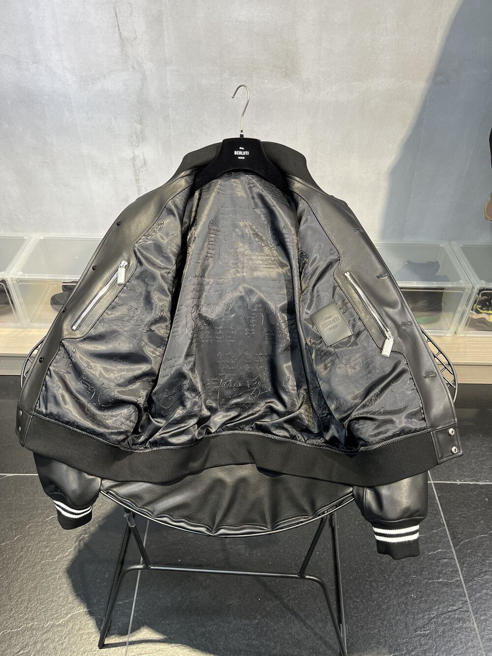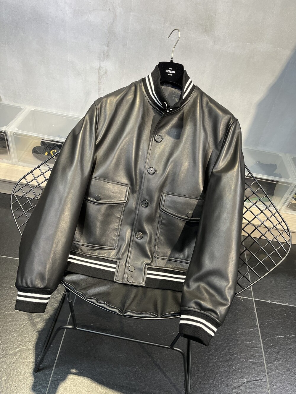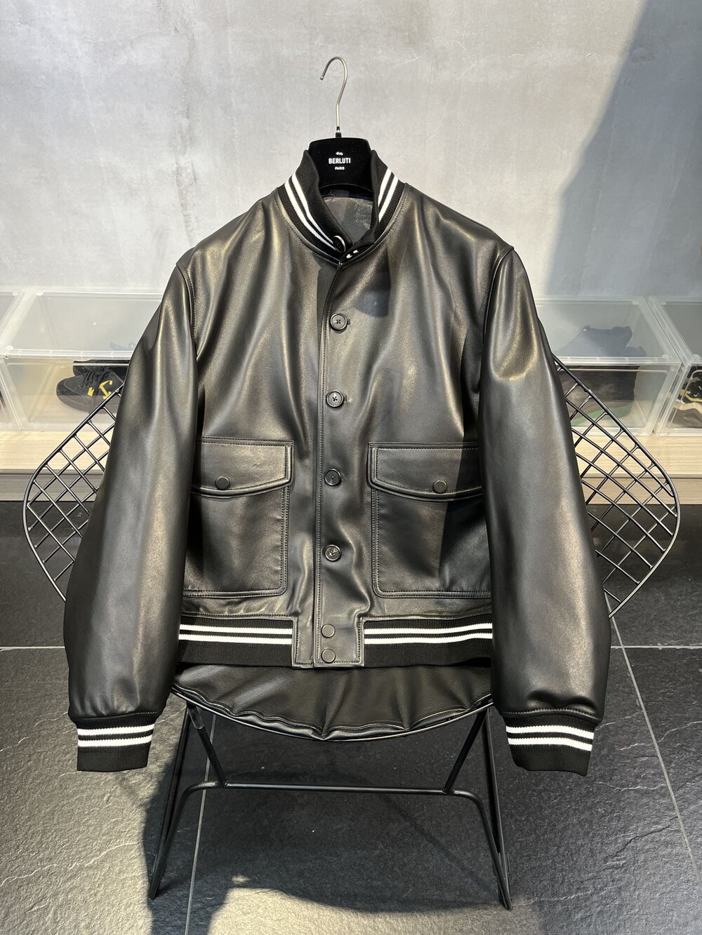 □B.ERLUTI 파티나 가죽 블루종□