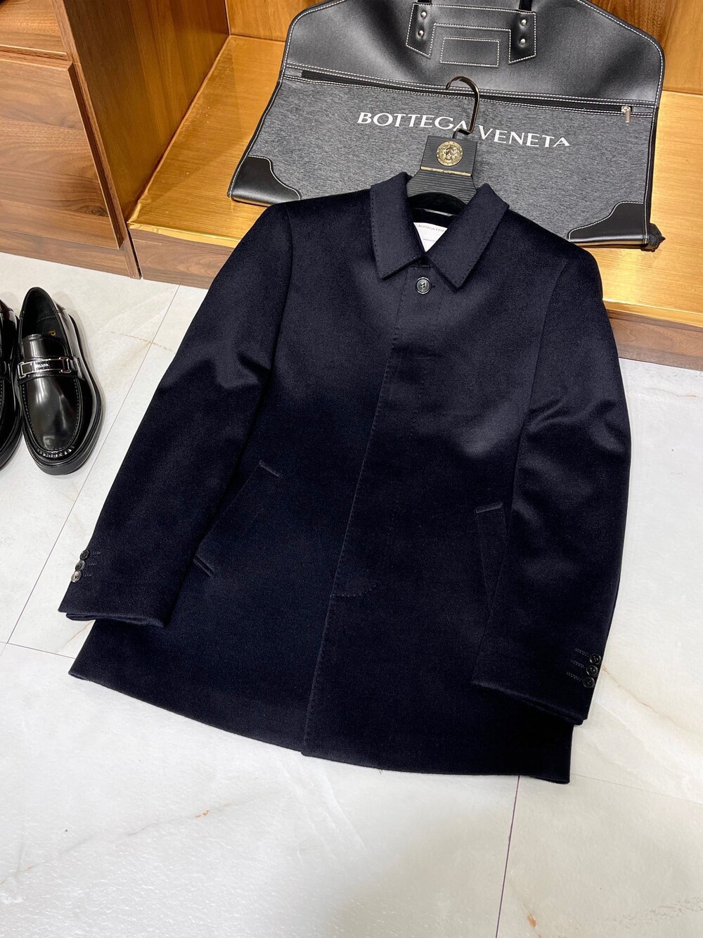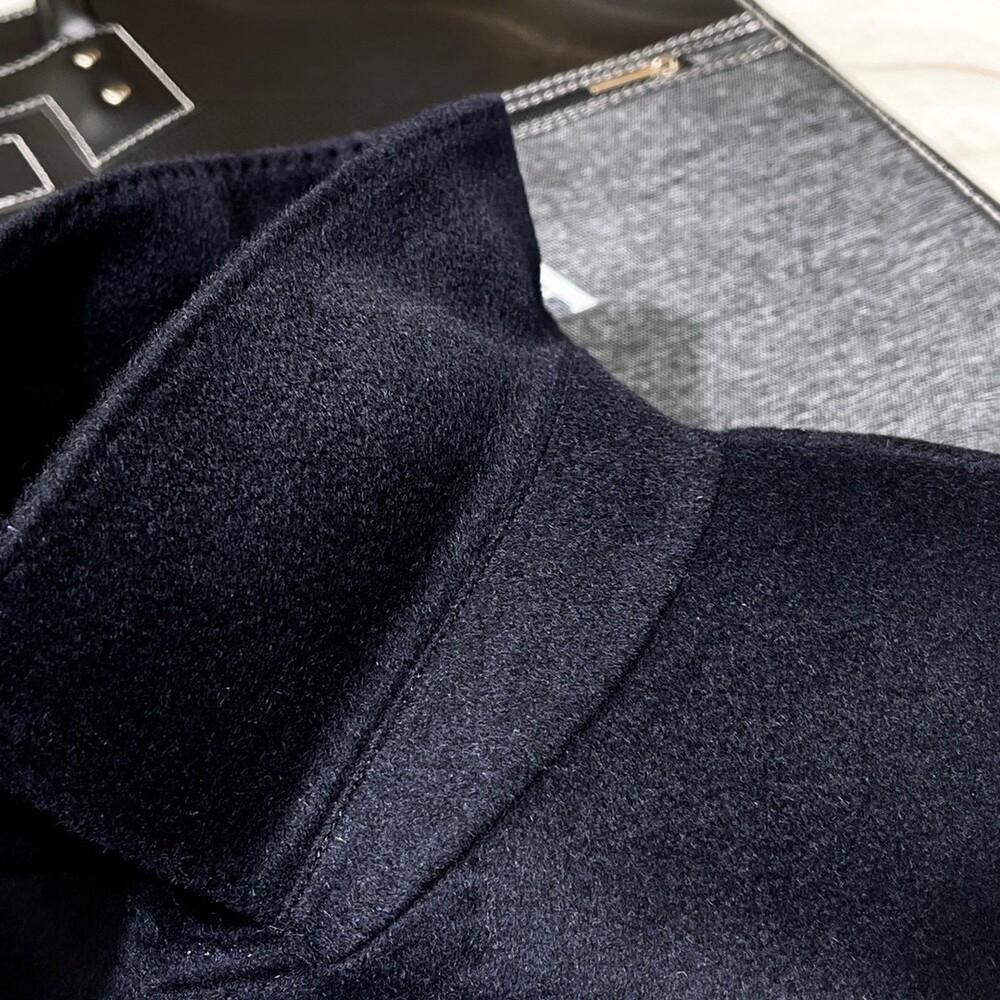 2023 순수 손바느질 V형 뿔단추 캐시미어 코트,