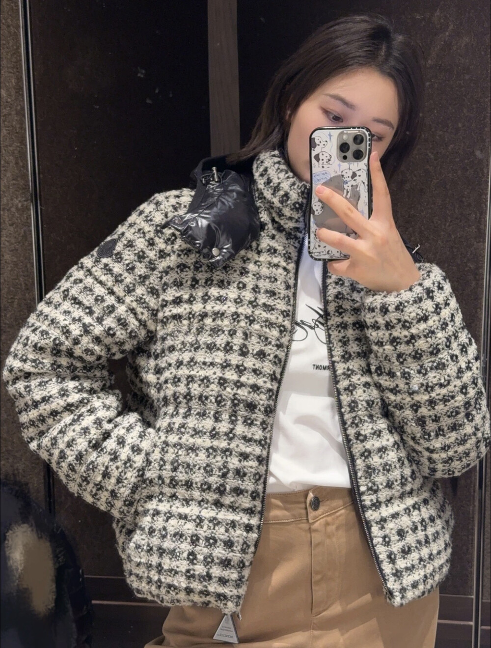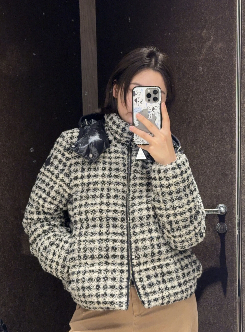 체크 트위드 원단으로 제작되었습니다