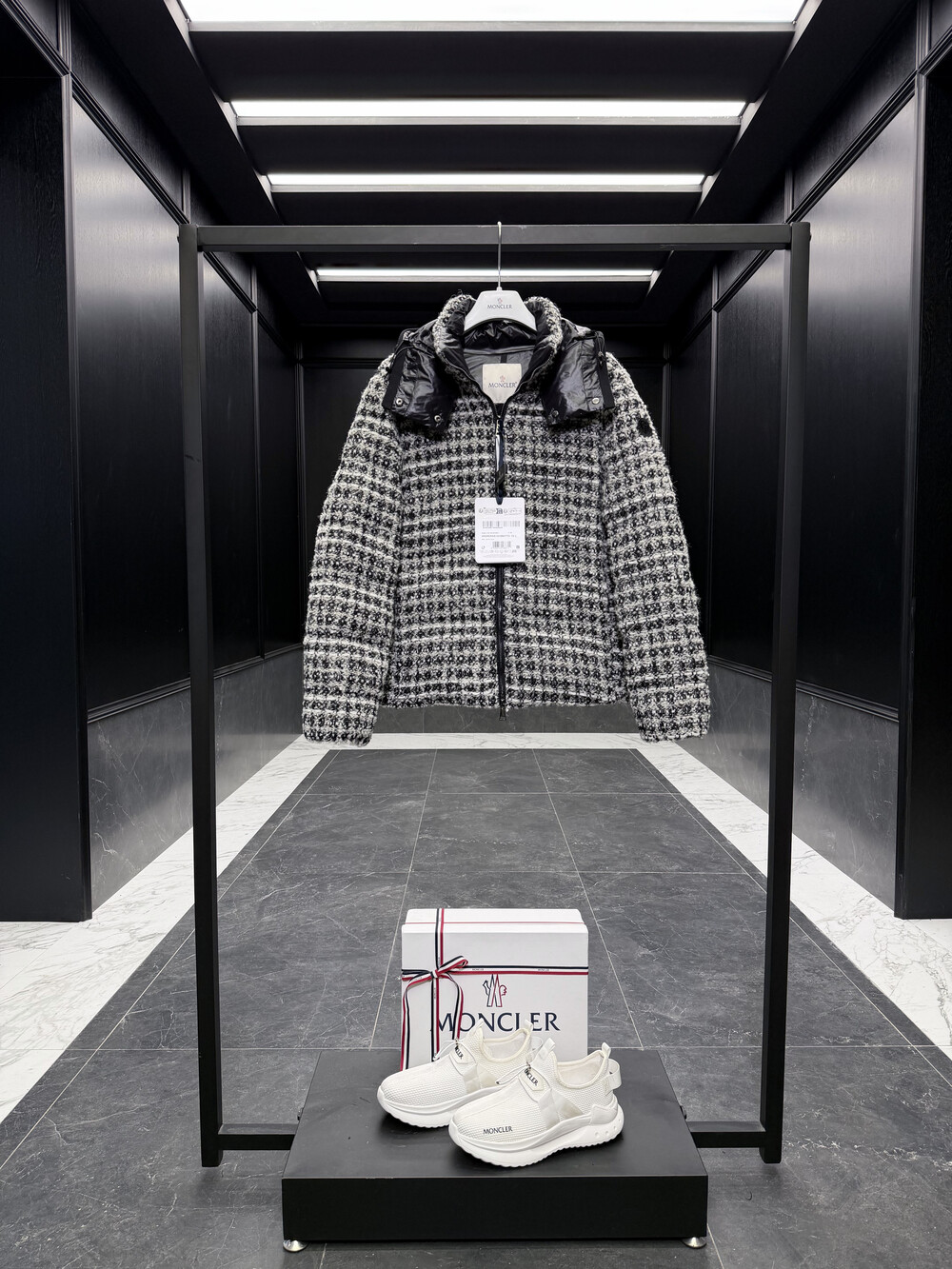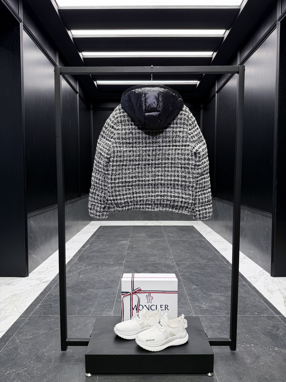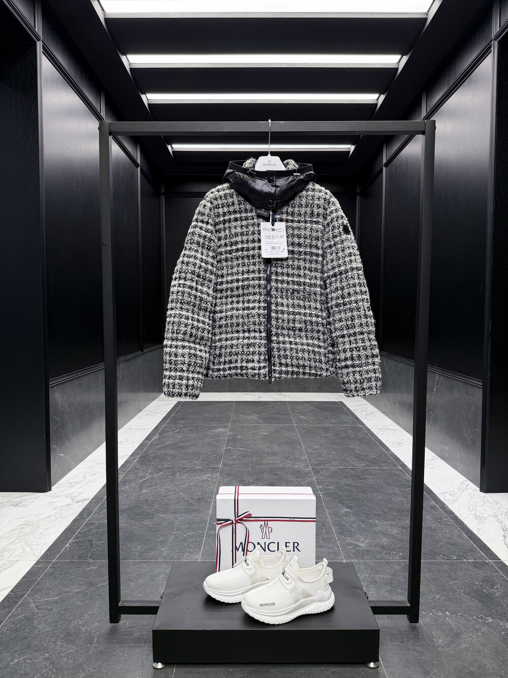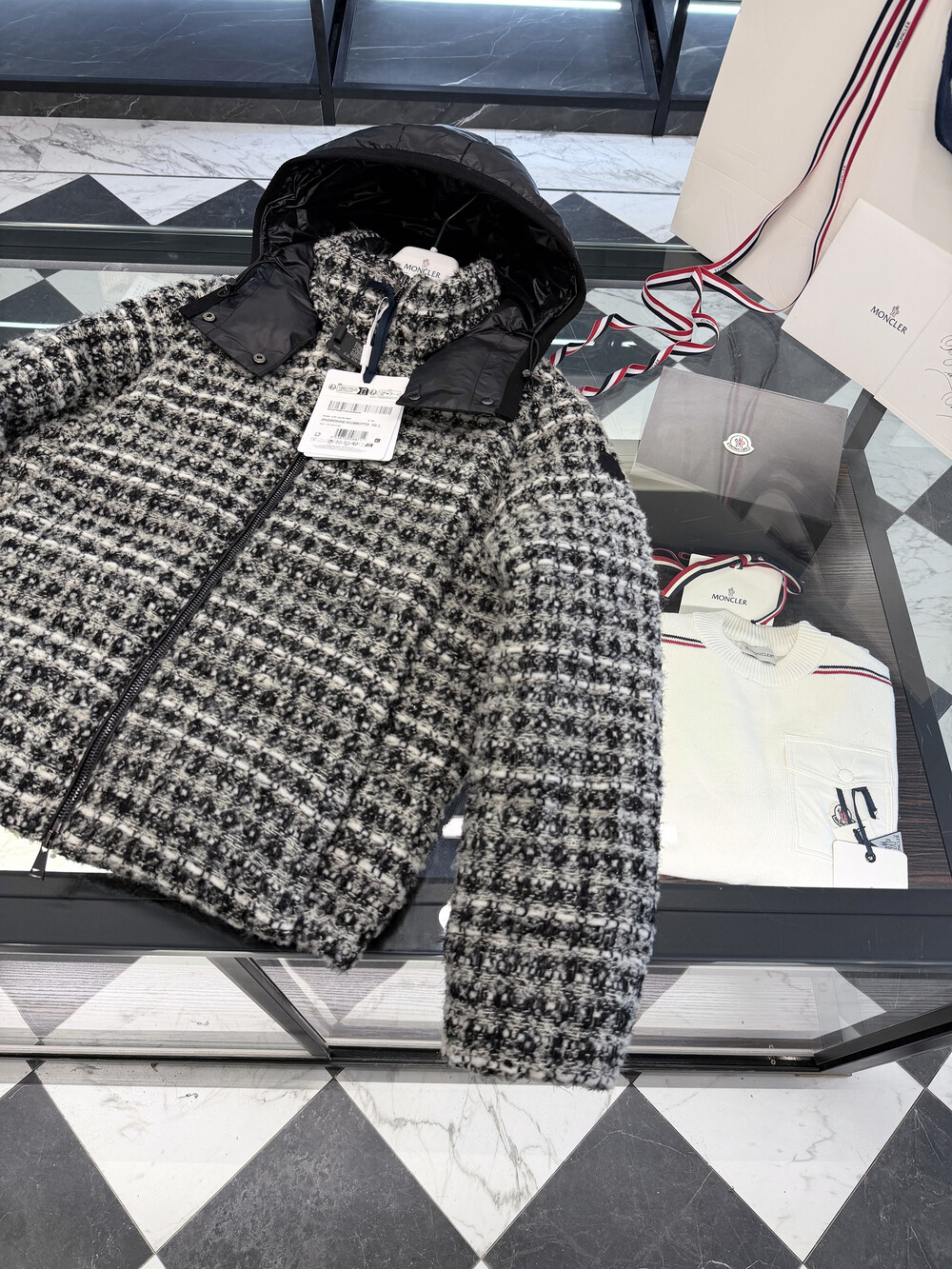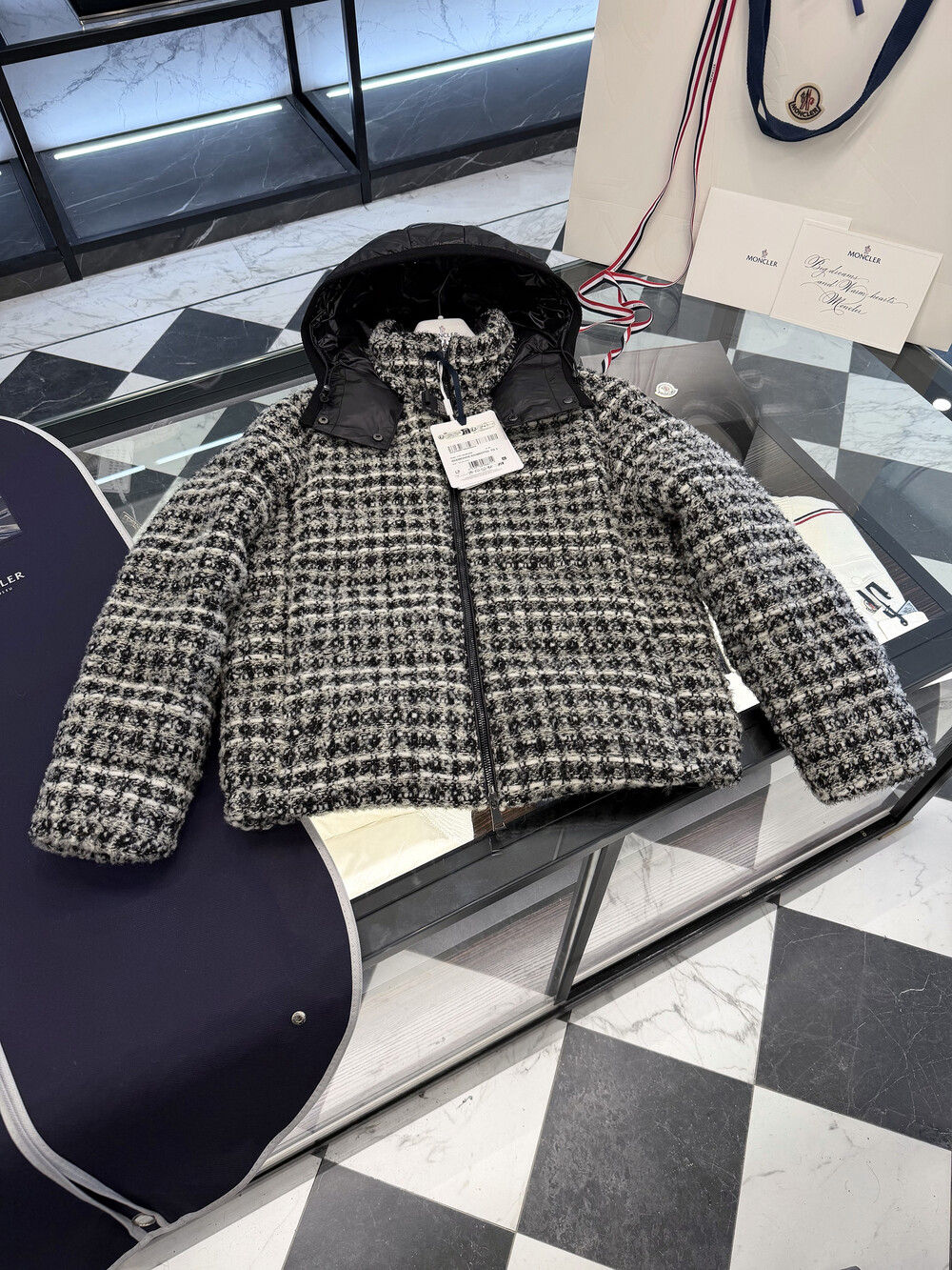 메탈릭 트위드 체크 패턴으로 제작되었습니다