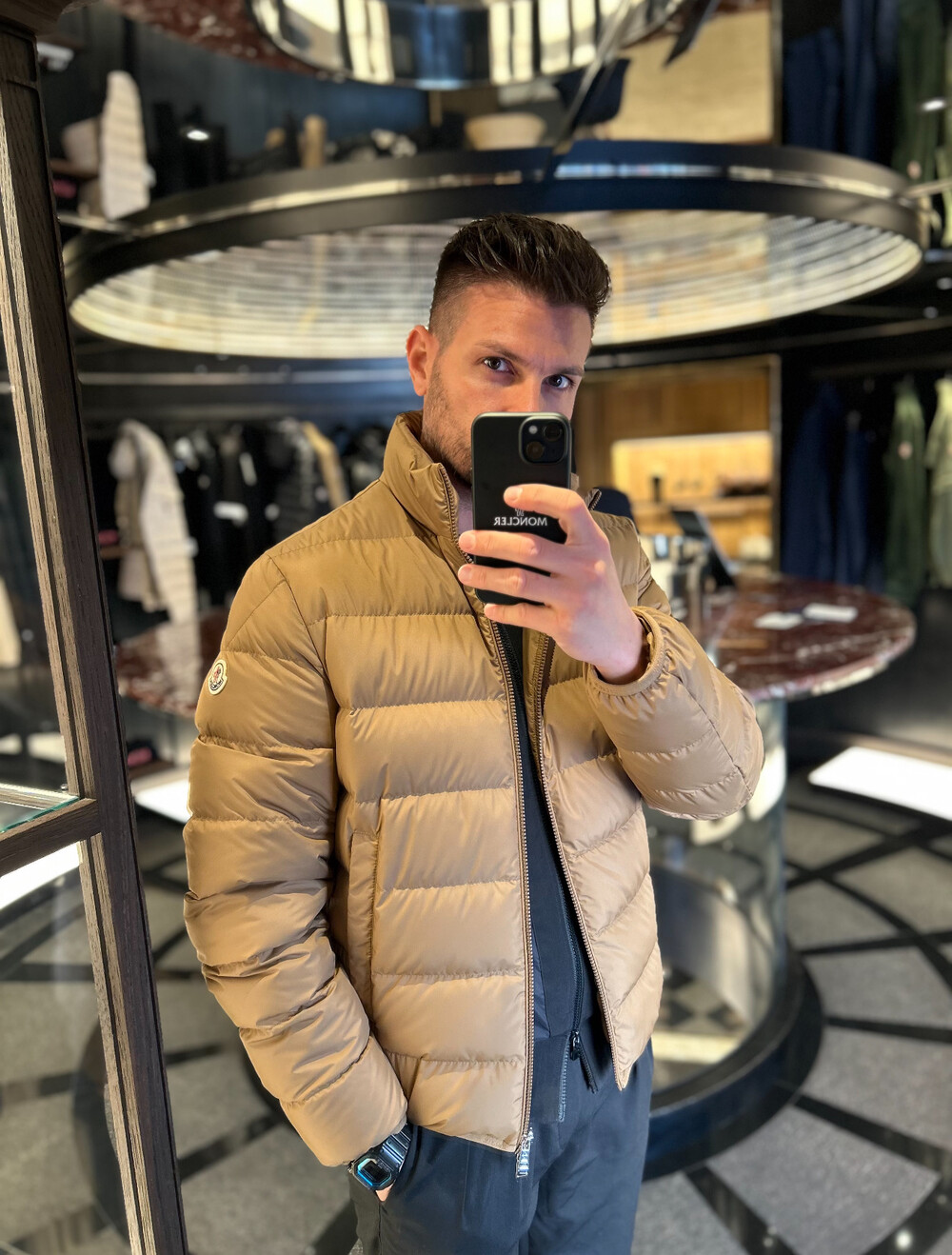 Baudinet 남성용 스탠드 칼라 숏 다운 재킷