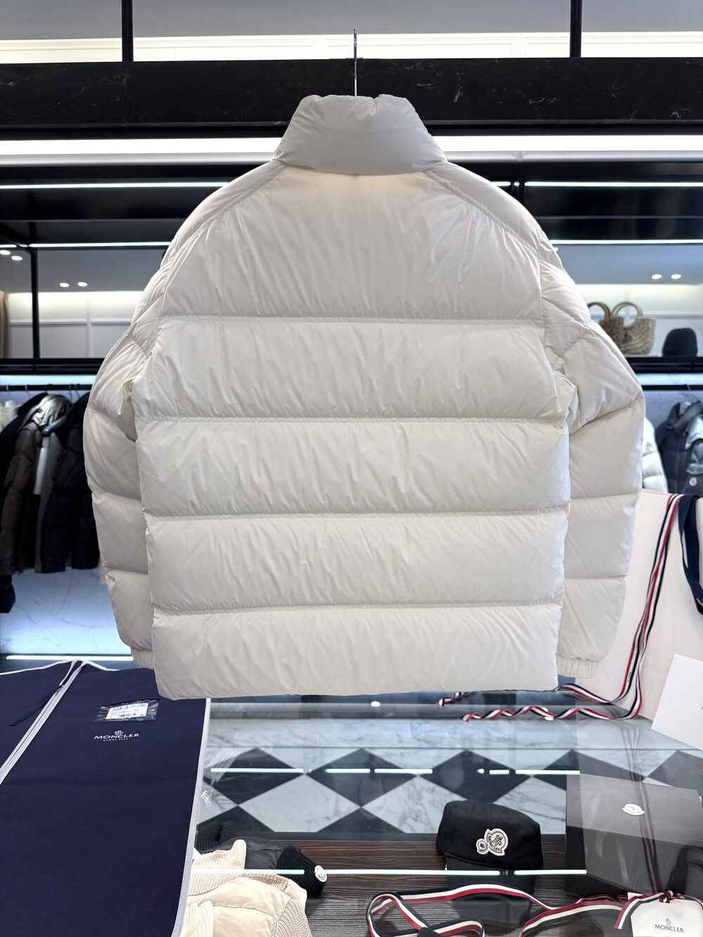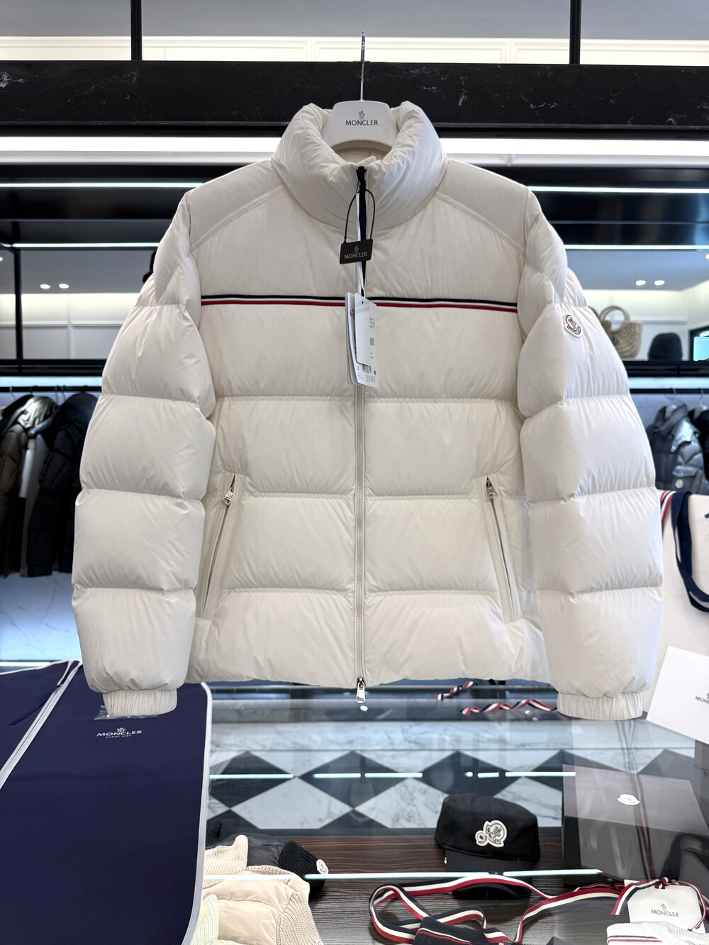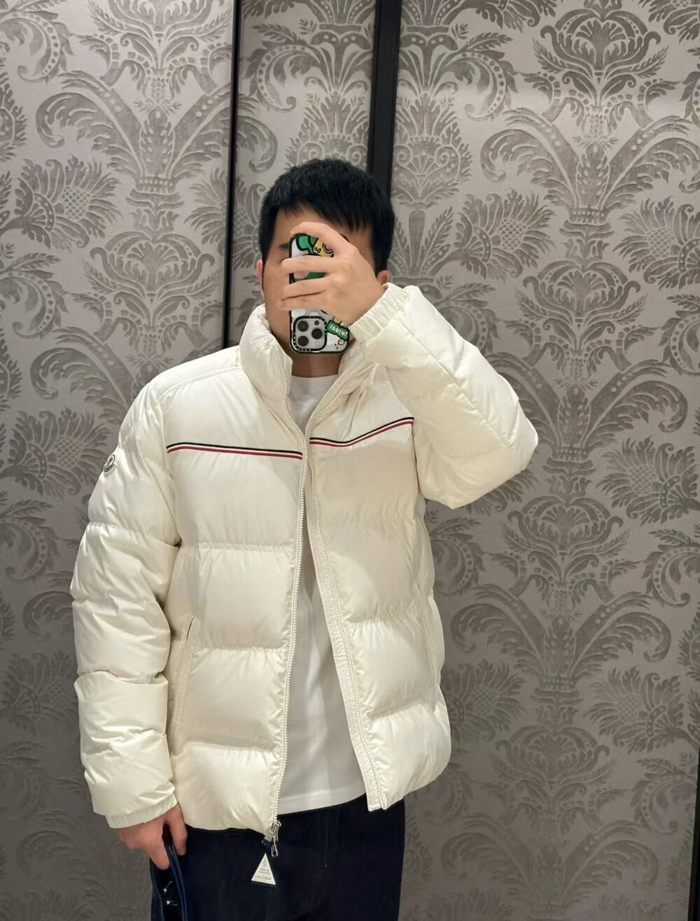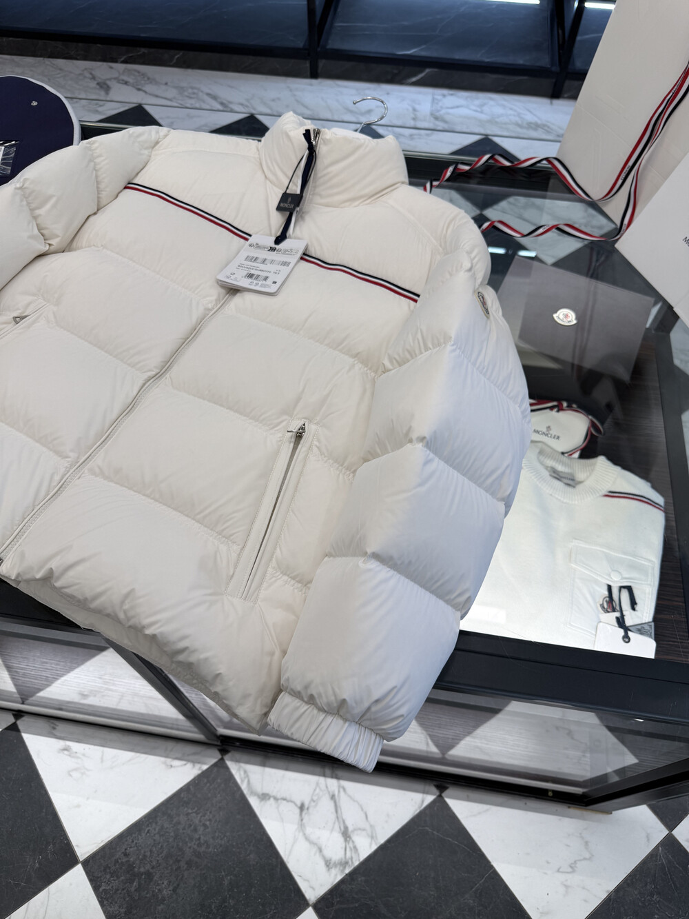 스트라이프 자수 스탠드 칼라 다운 재킷