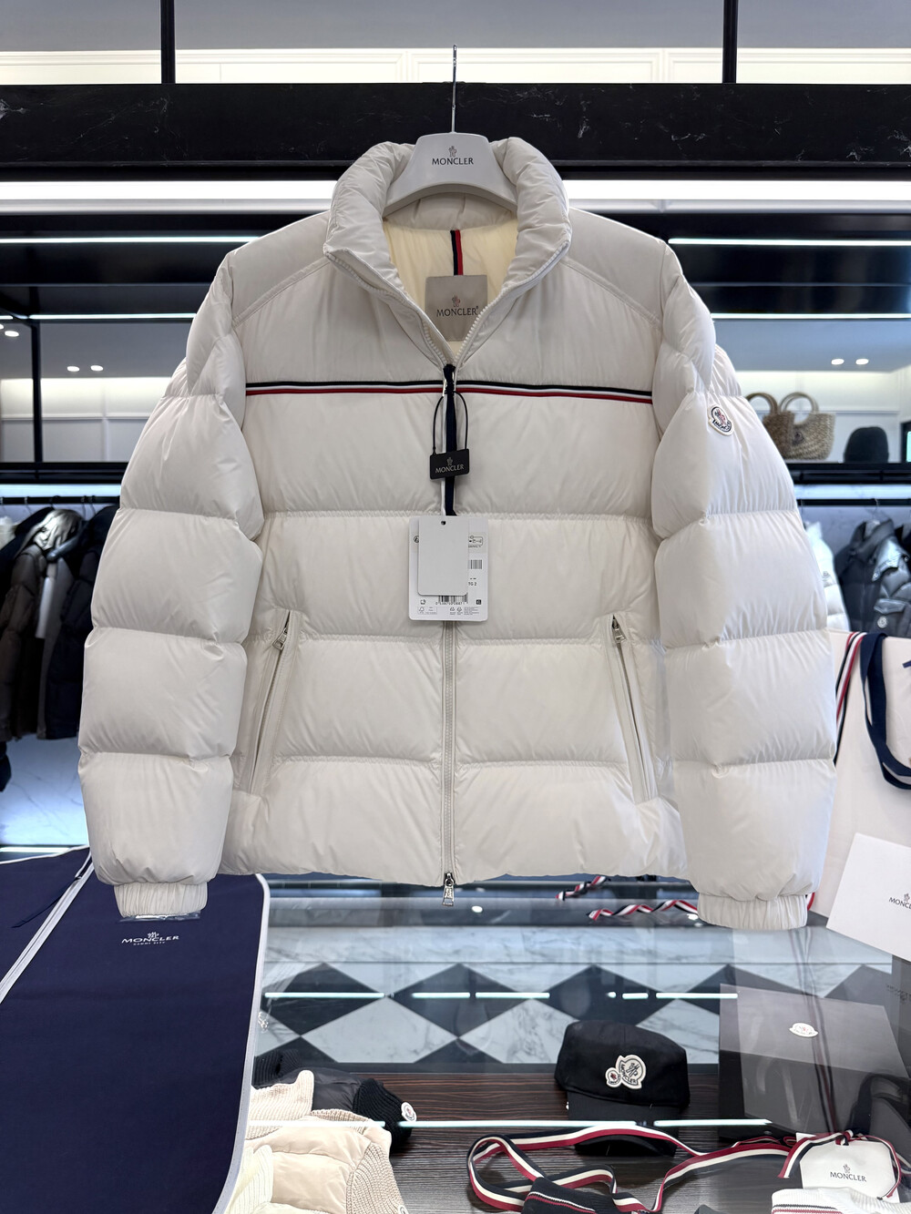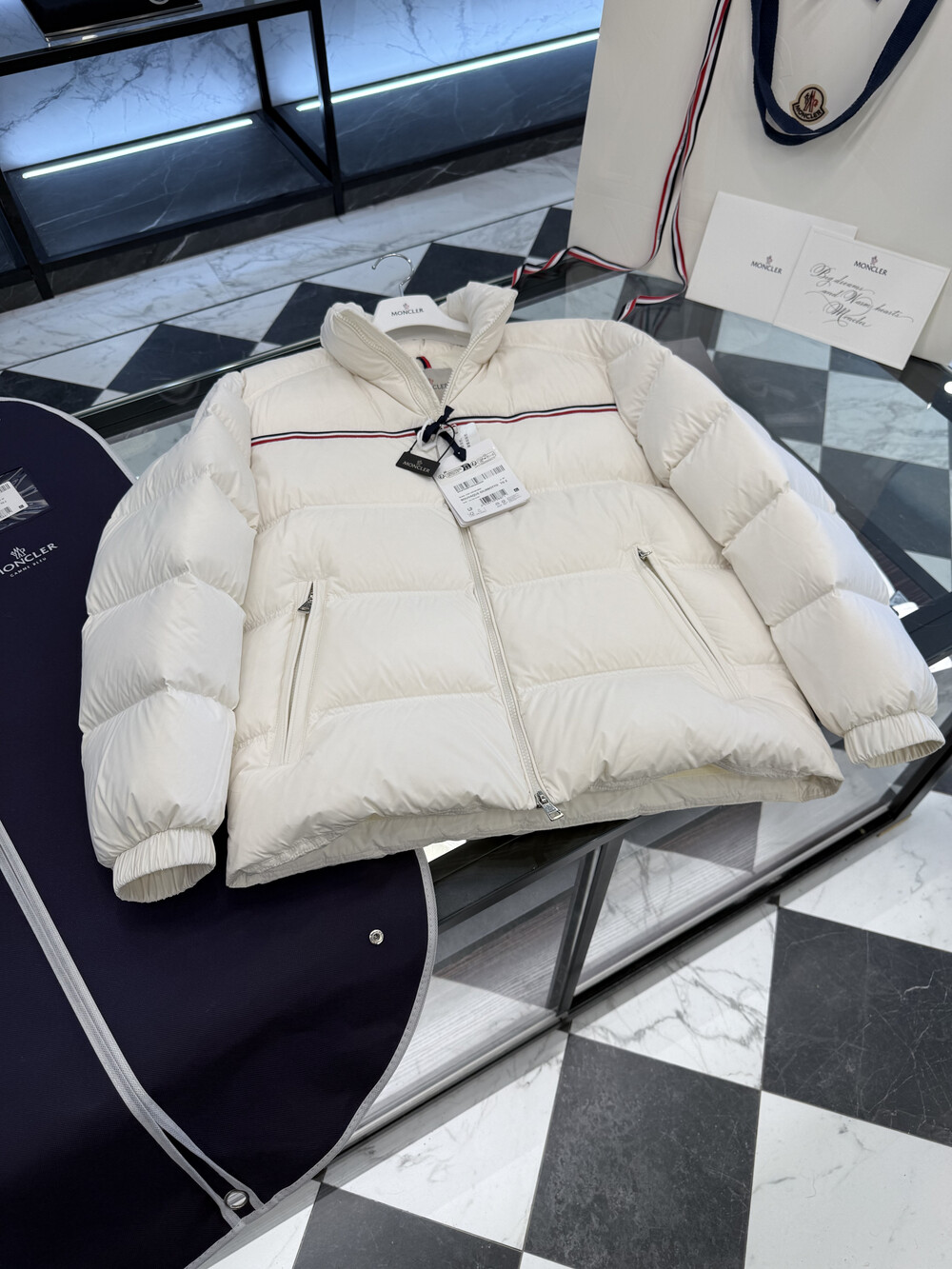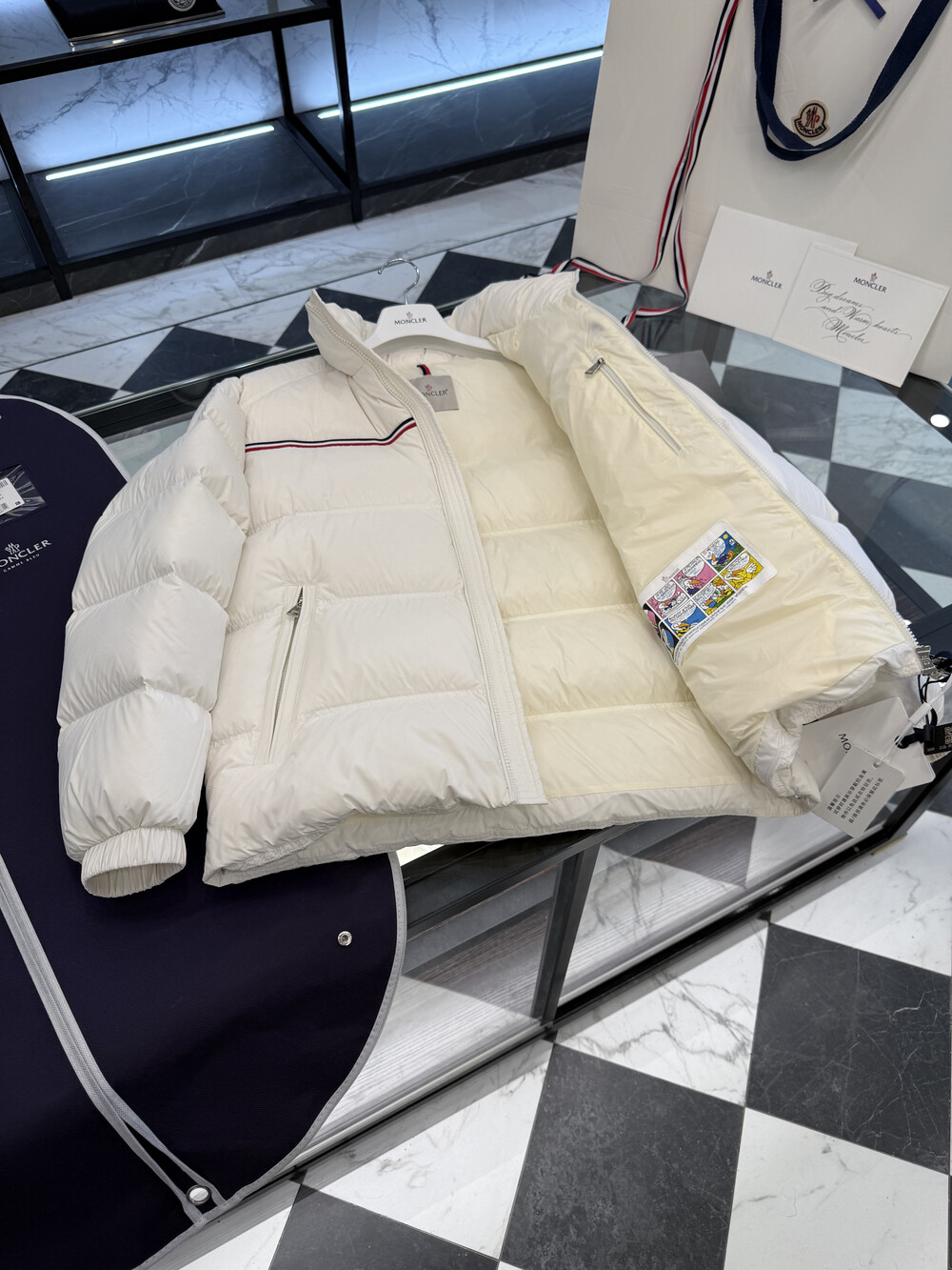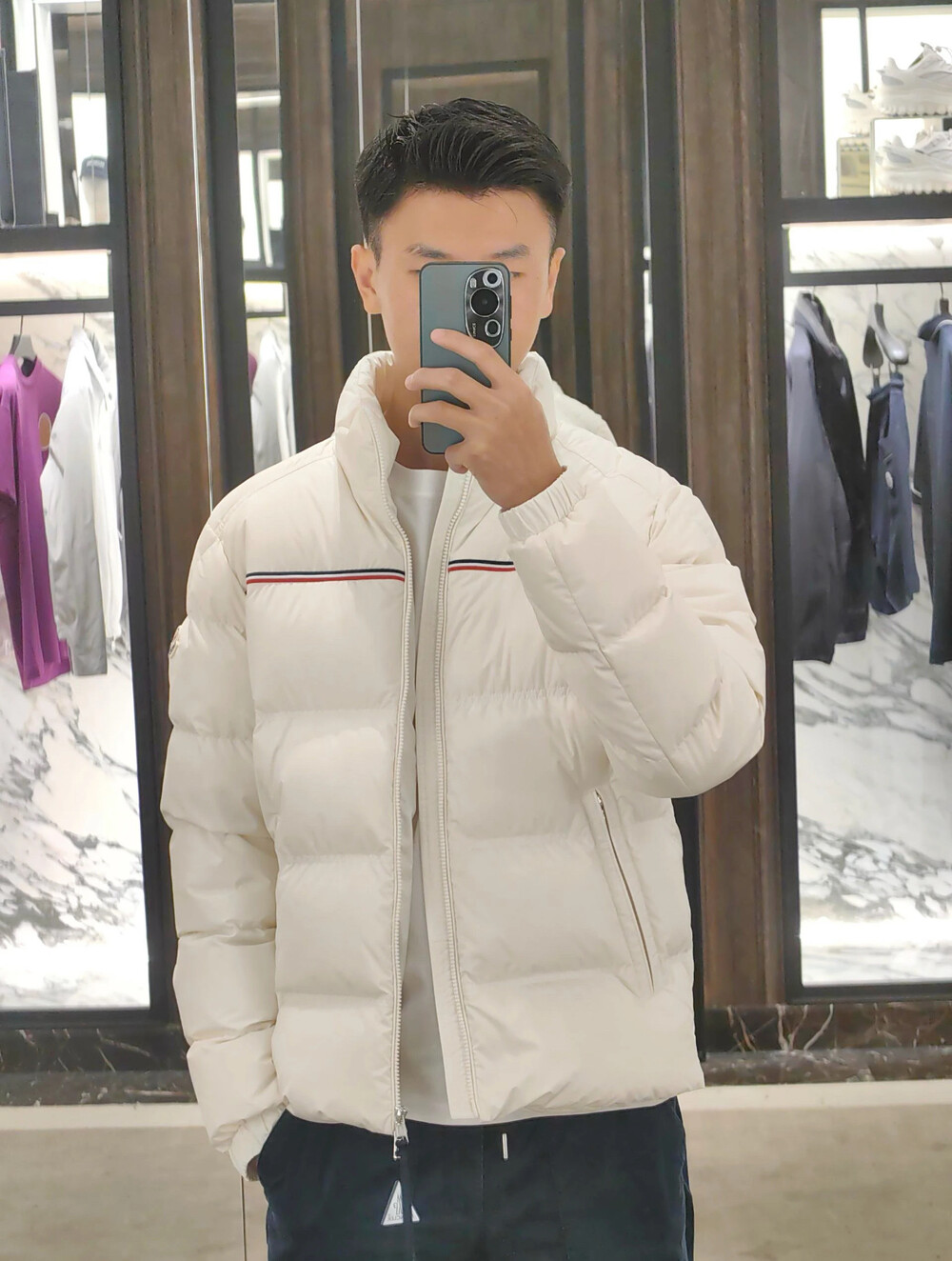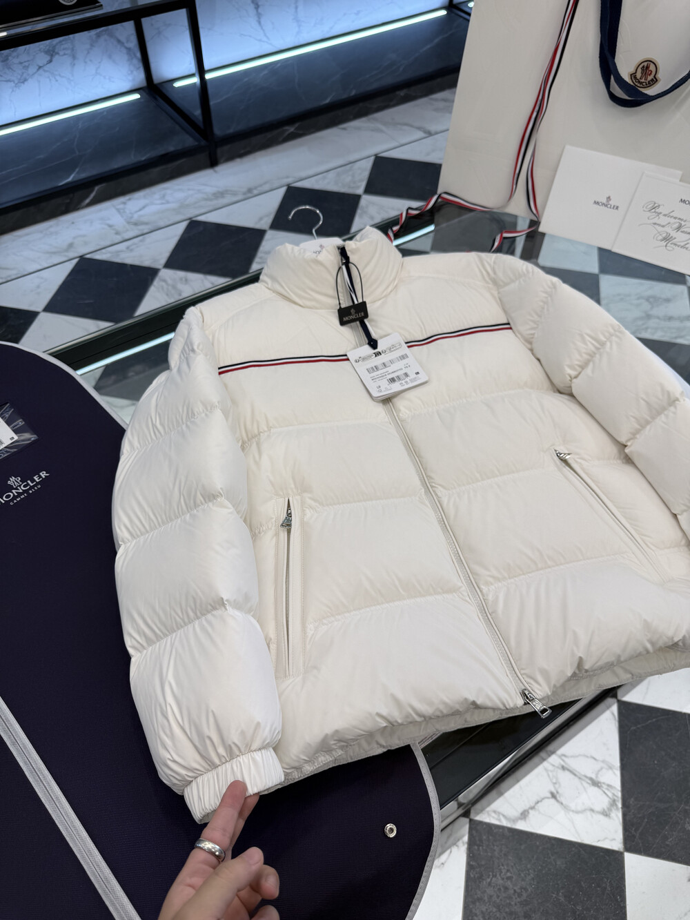 스트라이프 자수 스탠드 칼라 다운 재킷