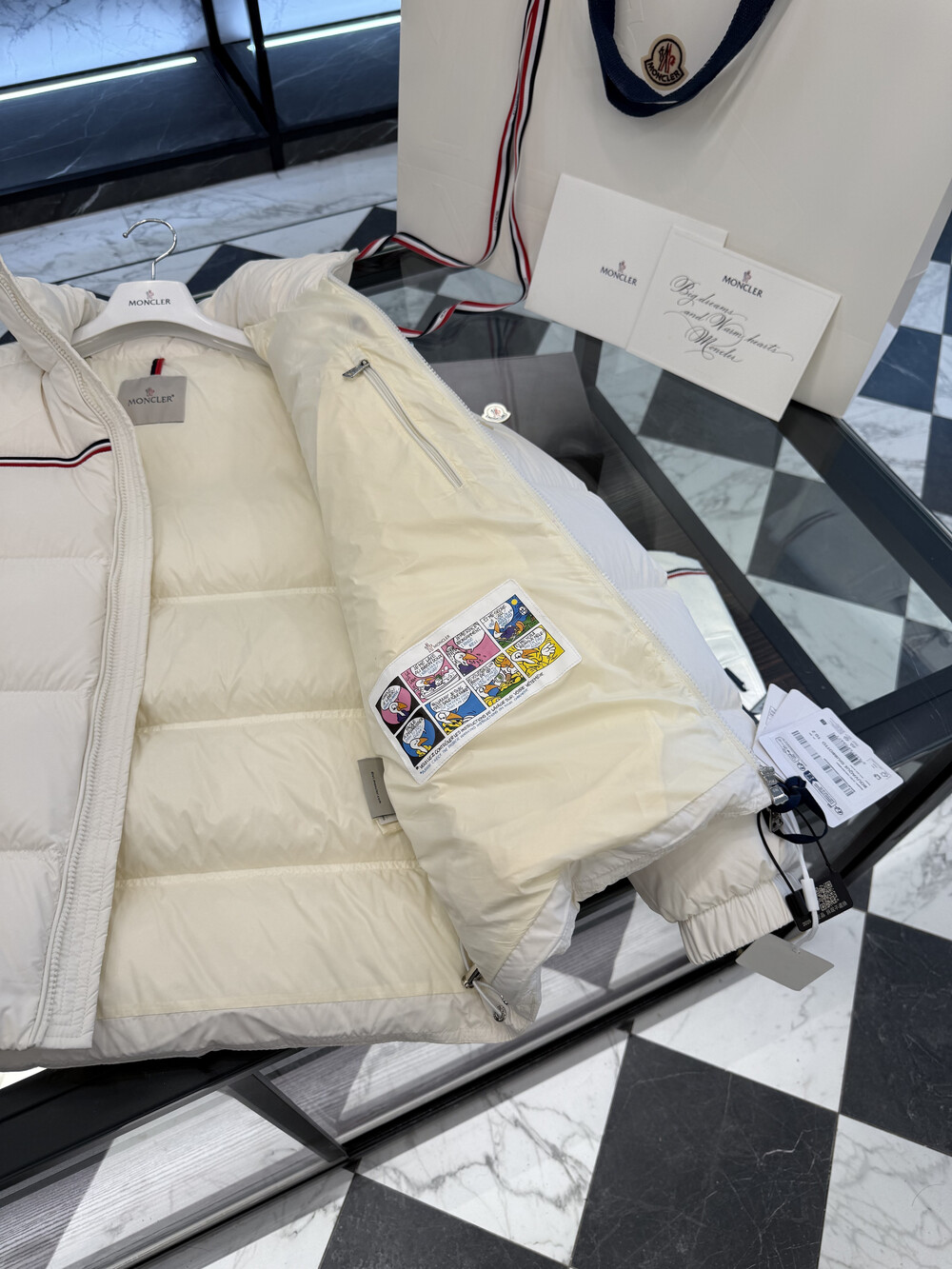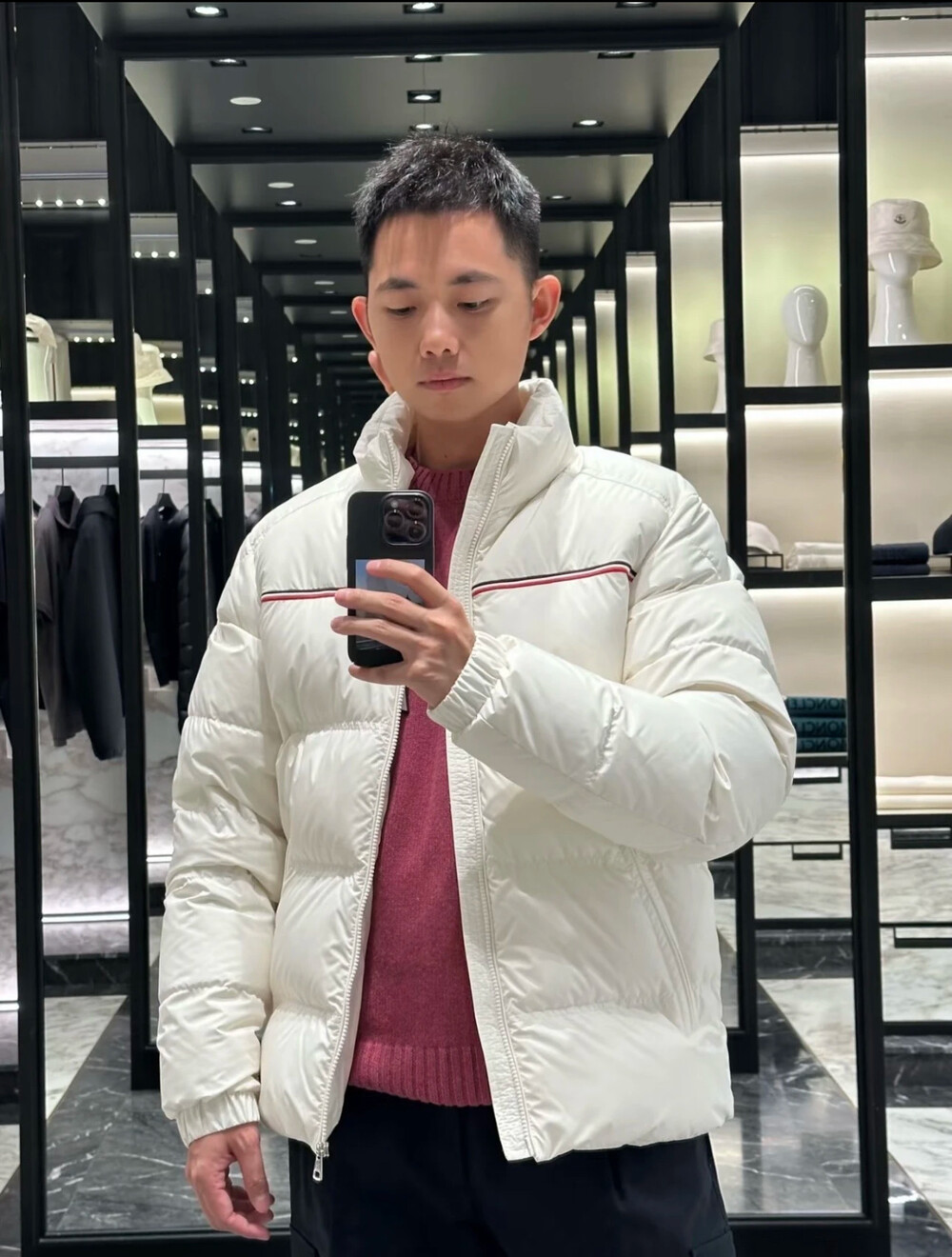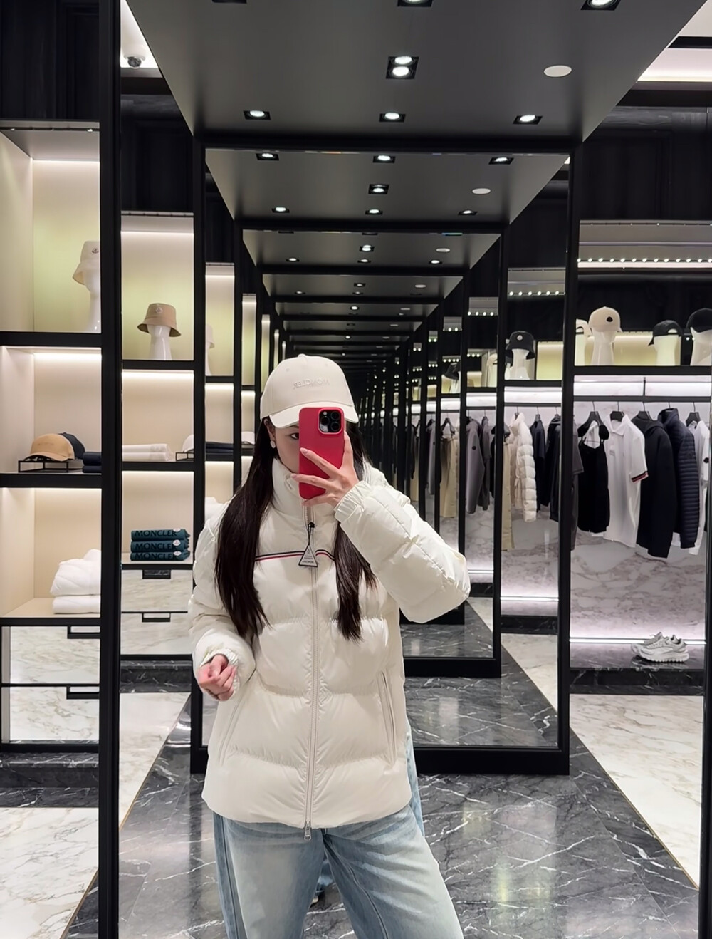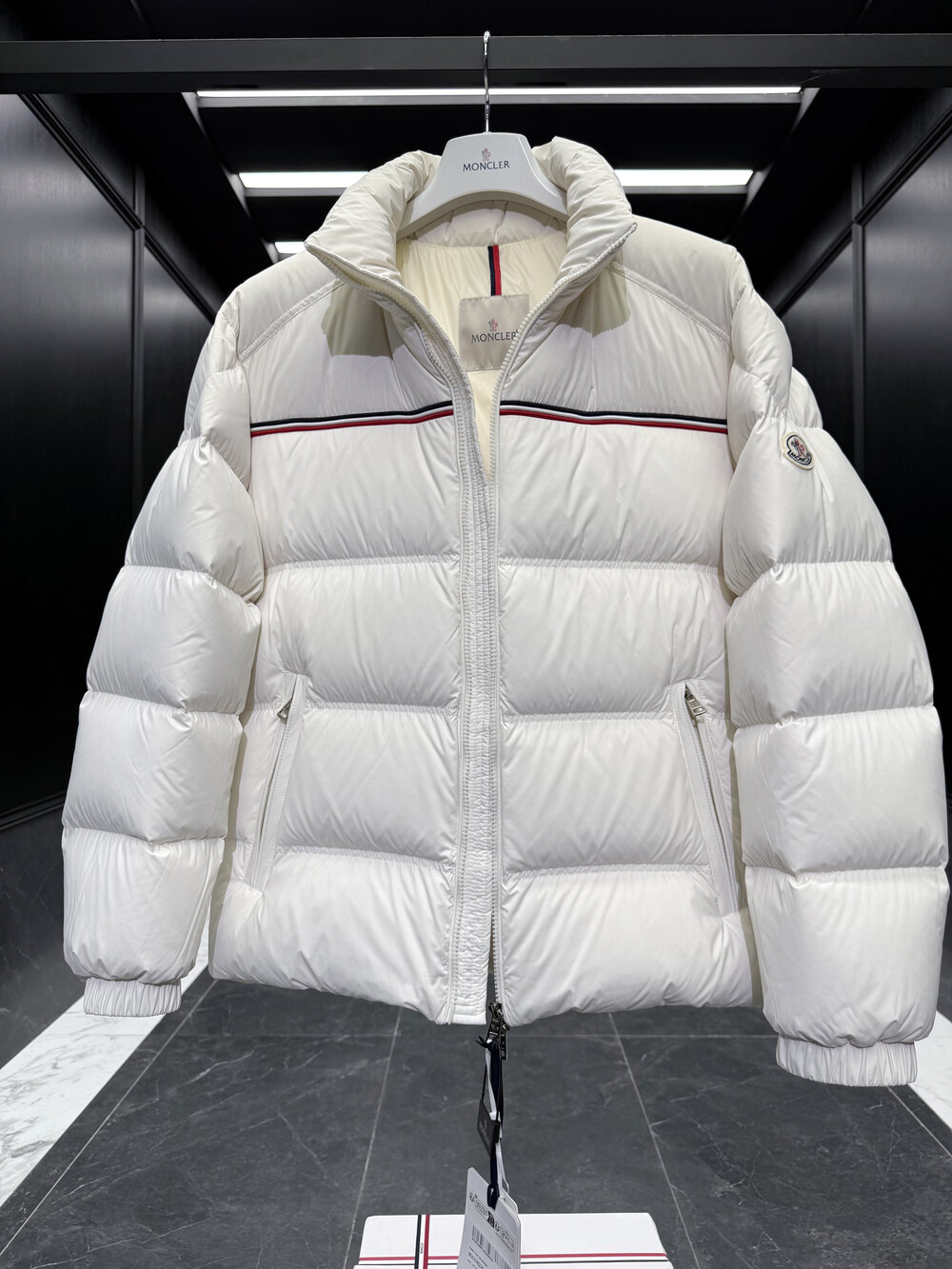 스트라이프 자수 스탠드 칼라 다운 재킷