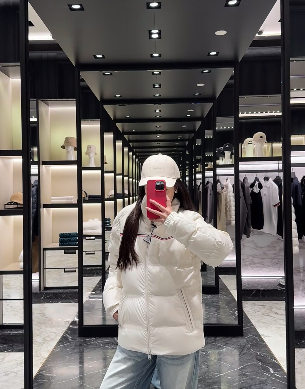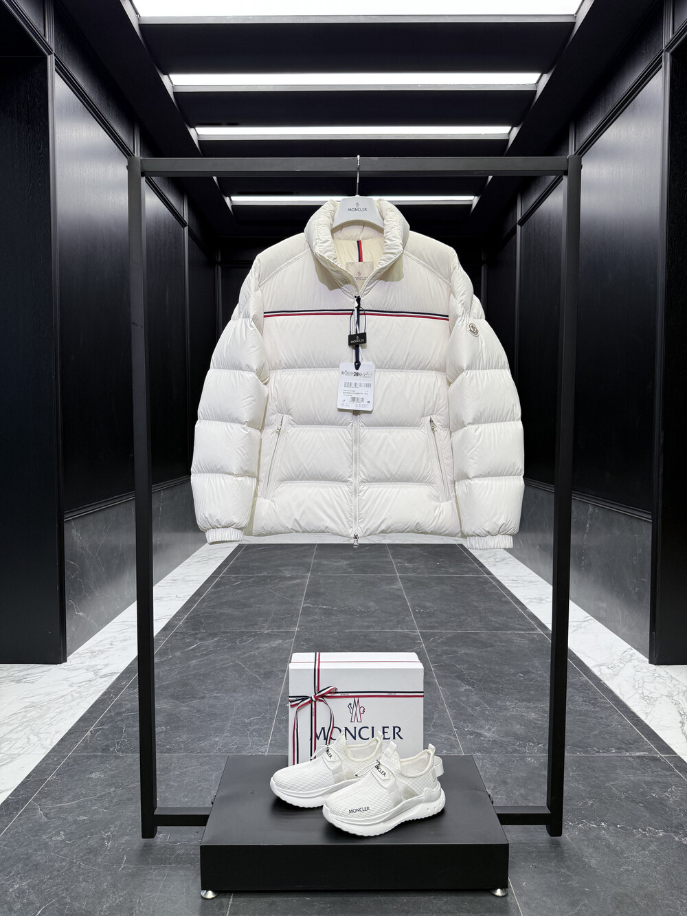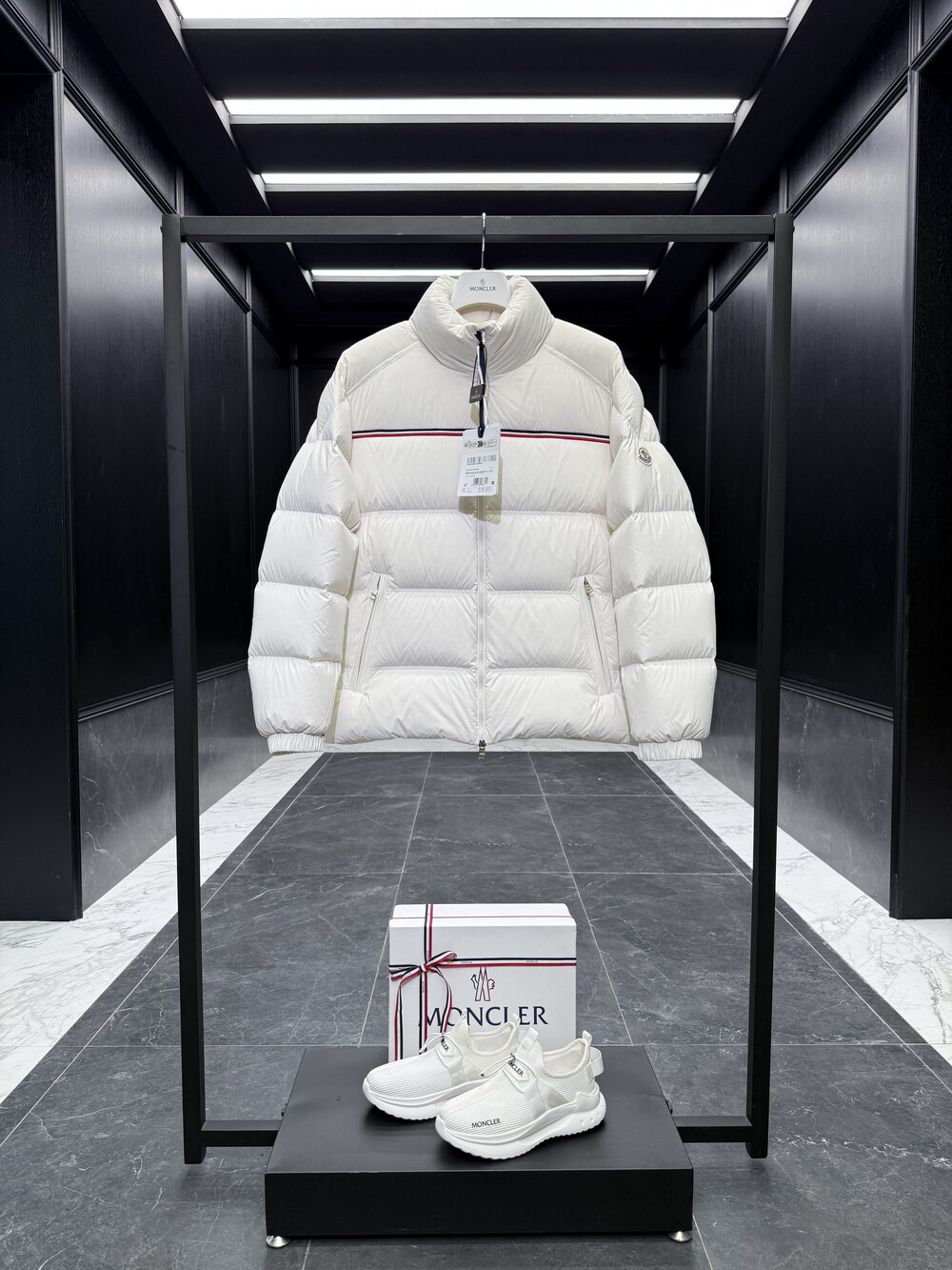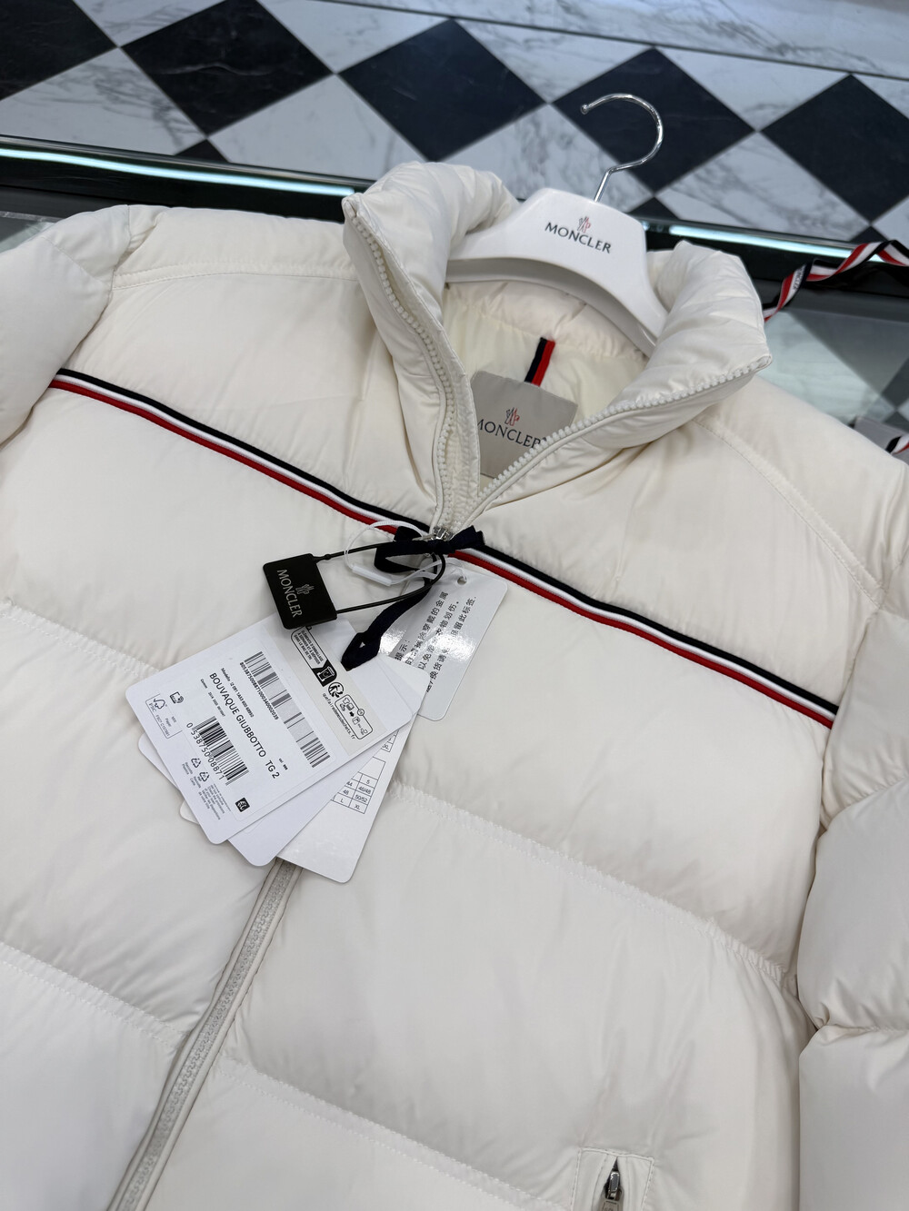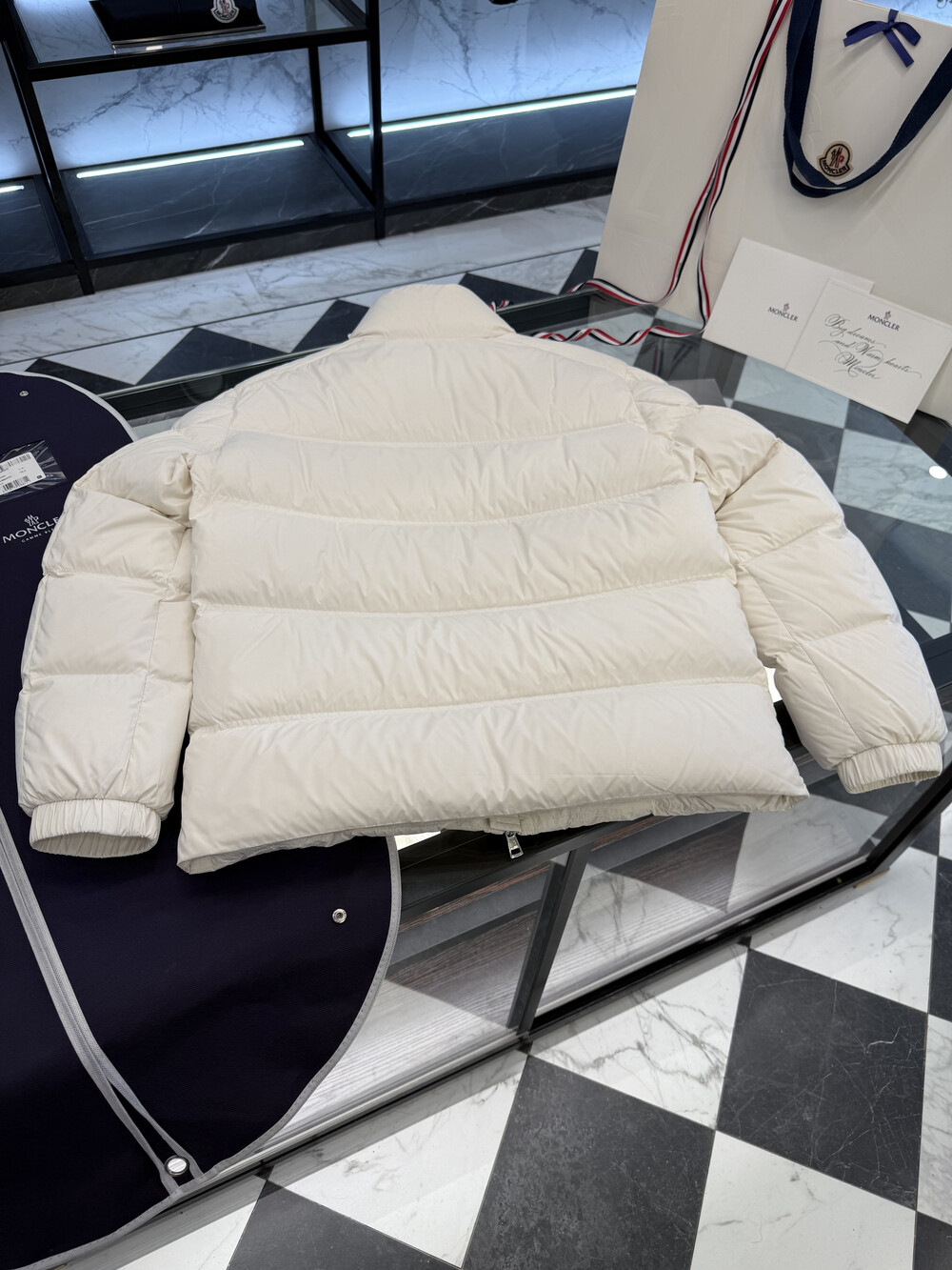 스트라이프 자수 스탠드 칼라 다운 재킷