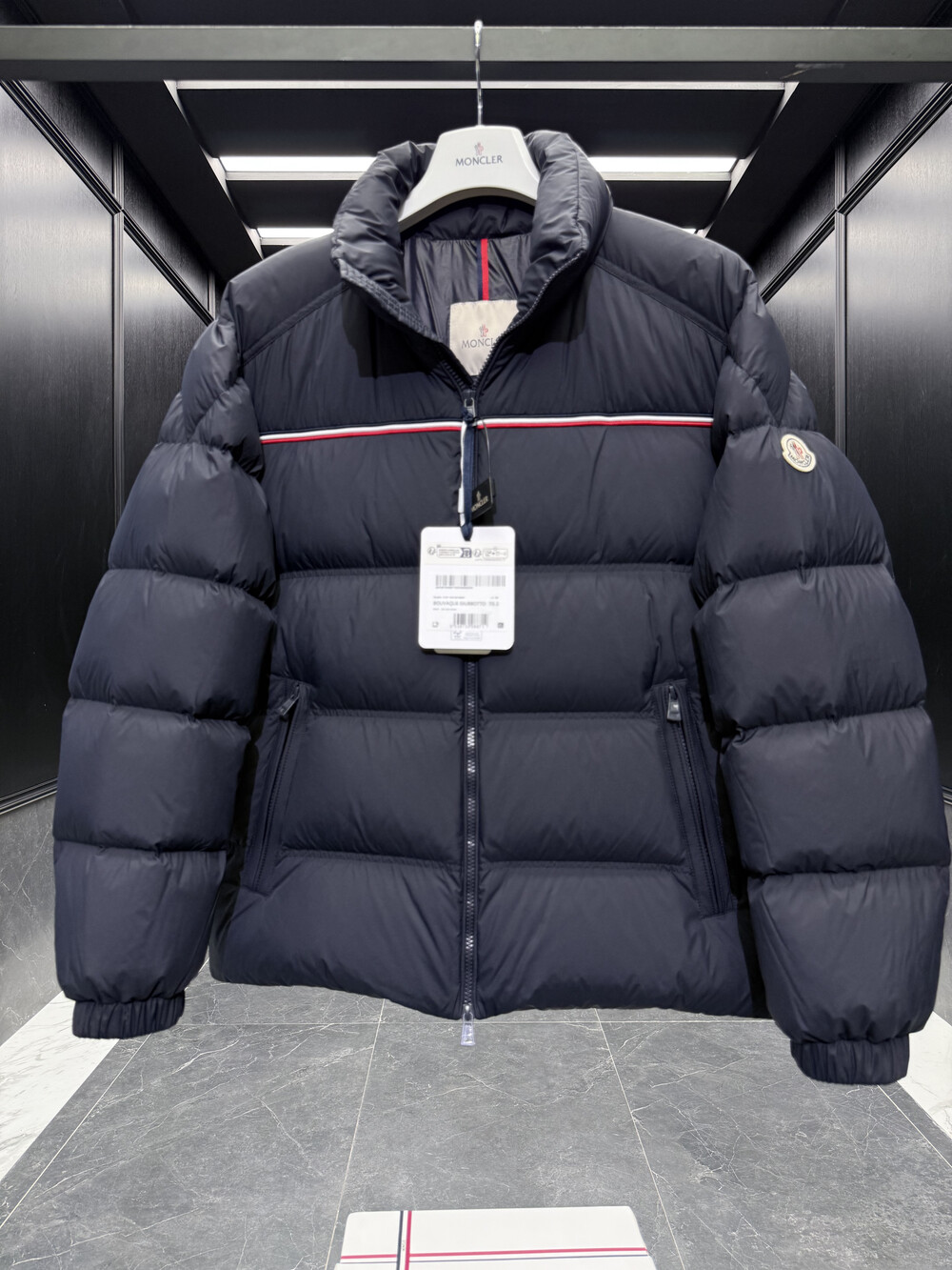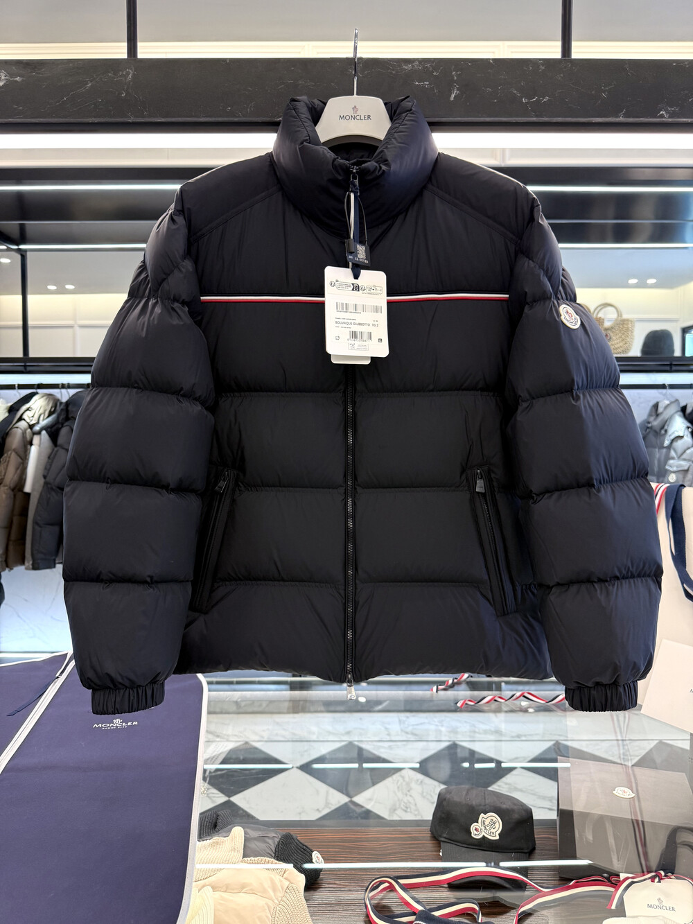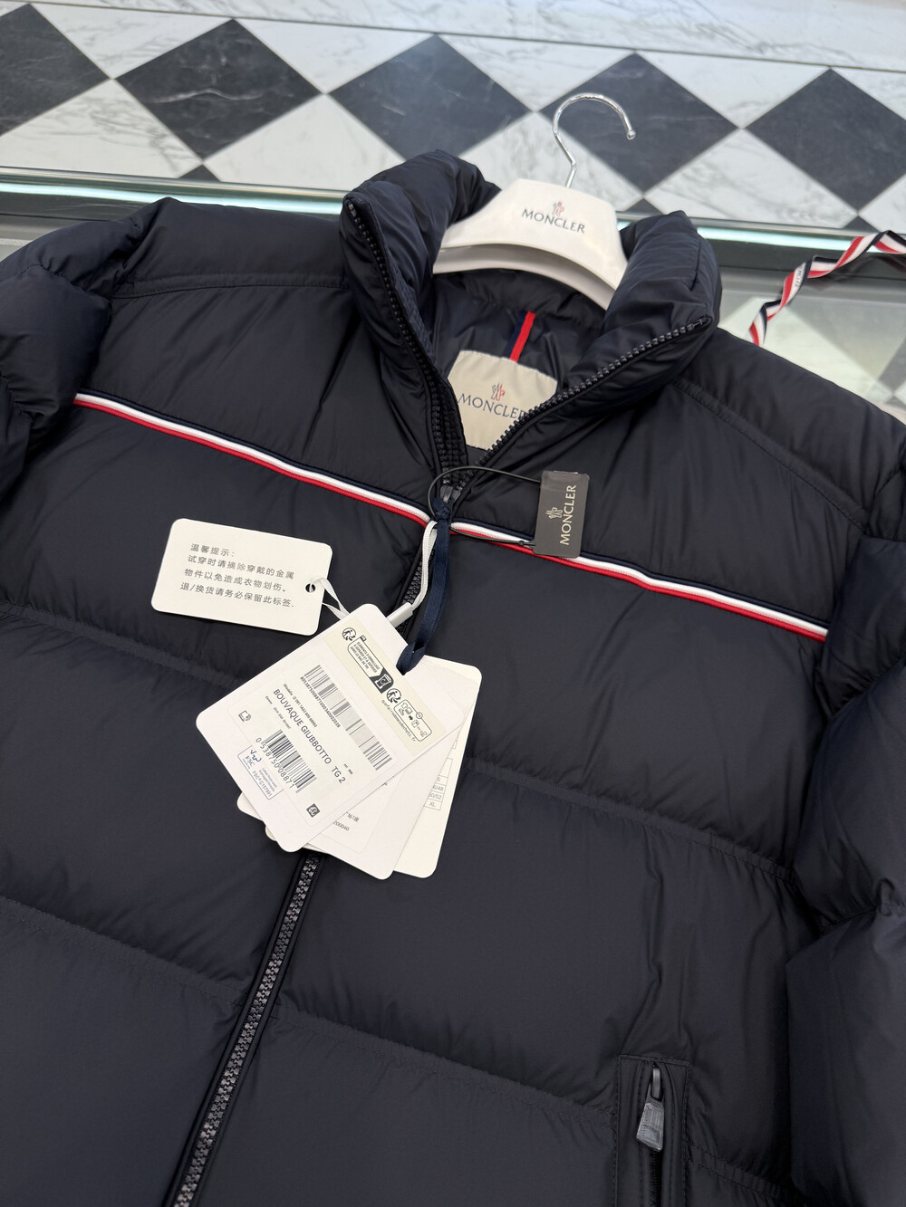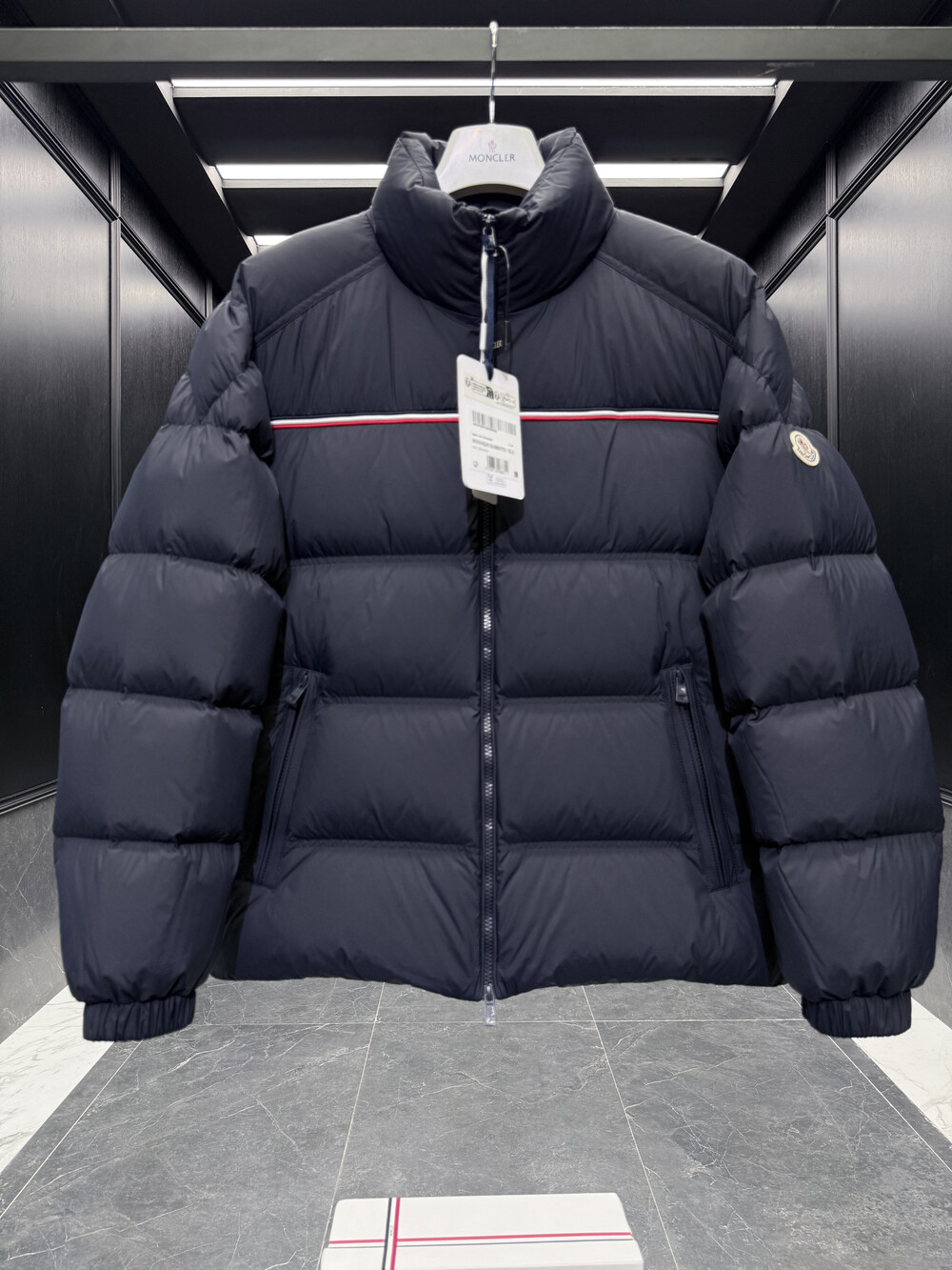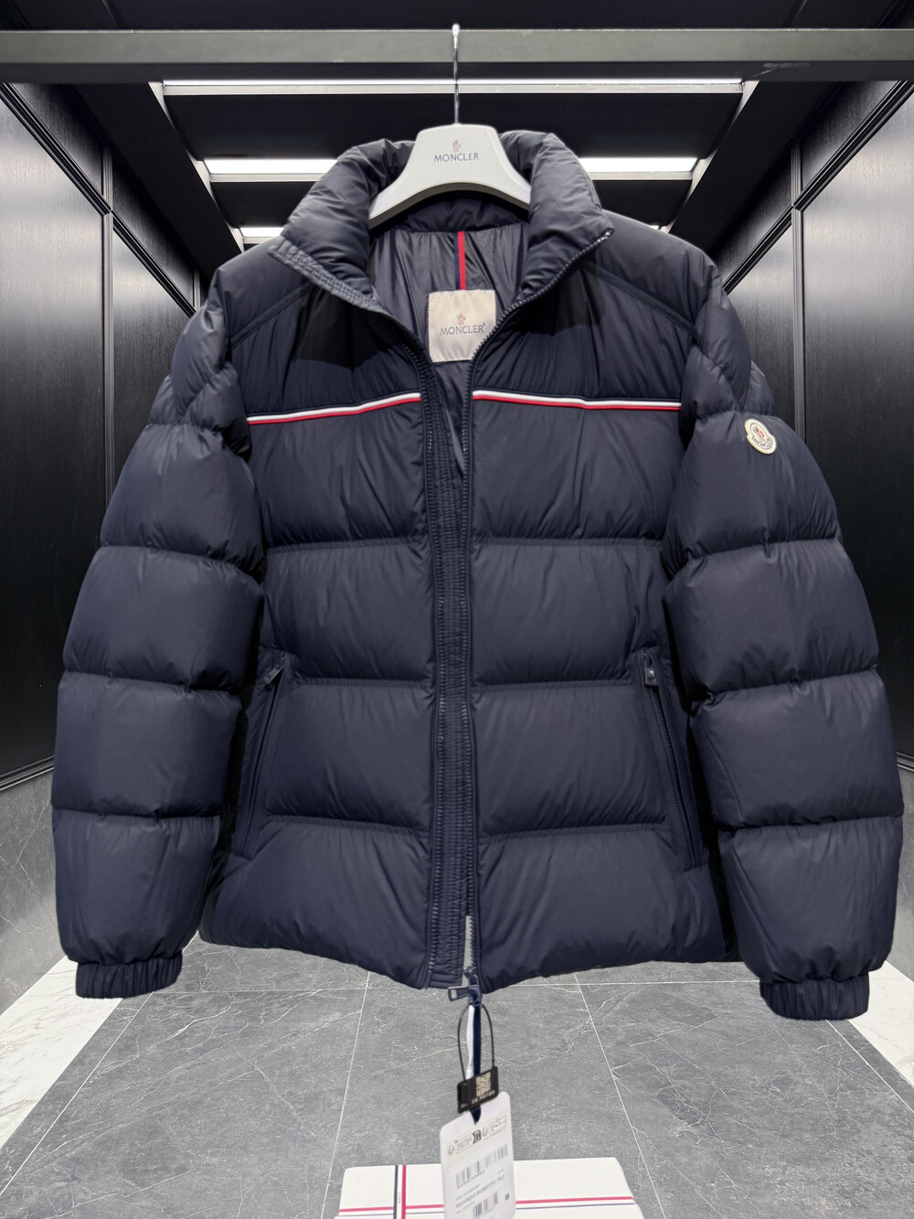 스트라이프 자수 스탠드 칼라 다운 재킷