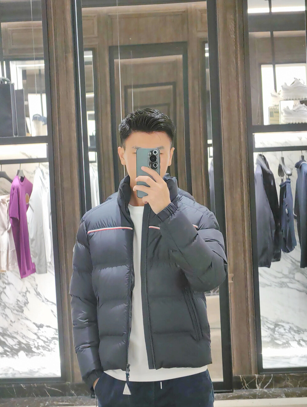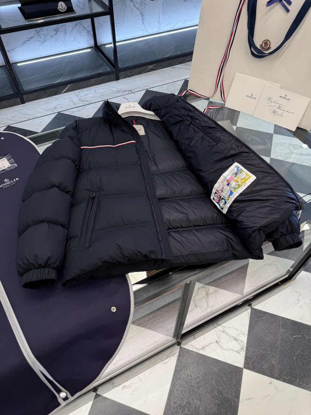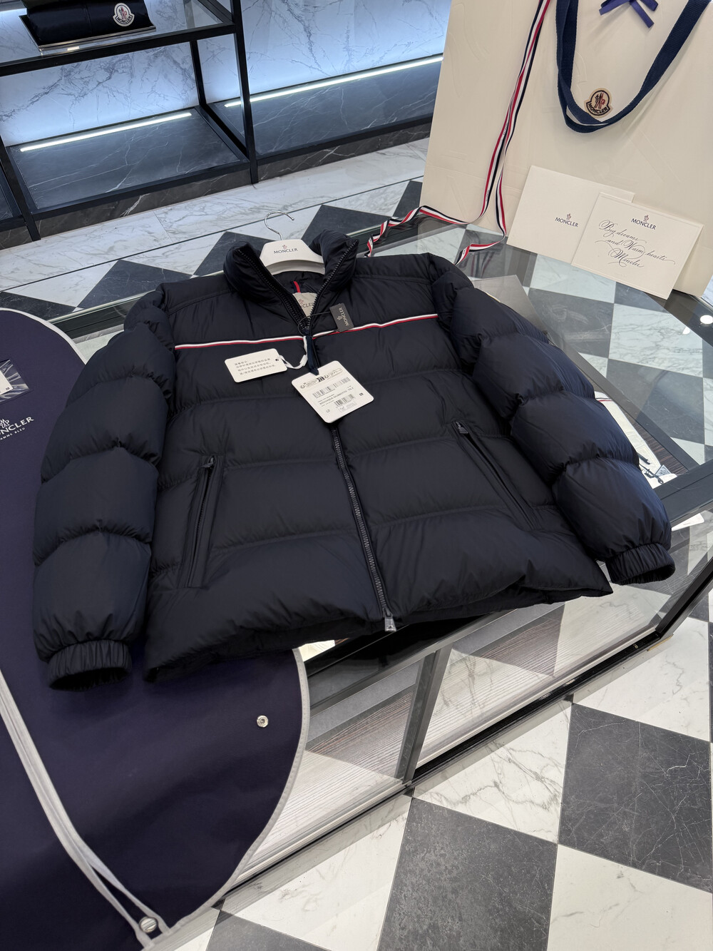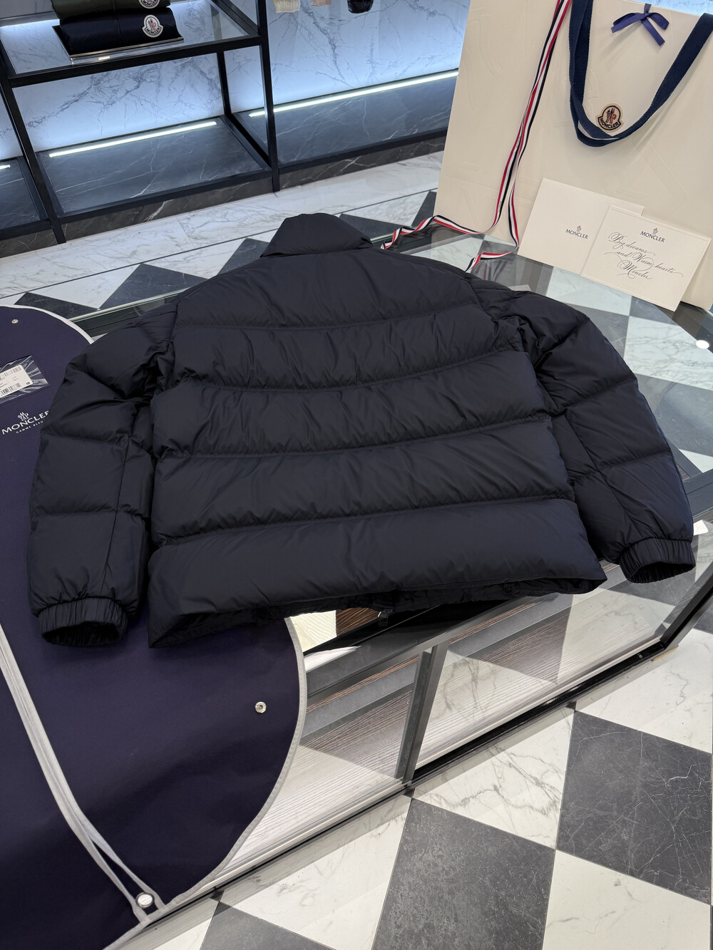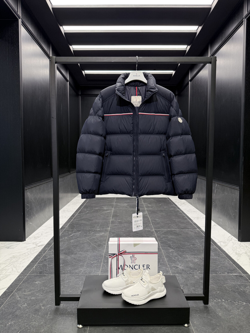 스트라이프 자수 스탠드 칼라 다운 재킷