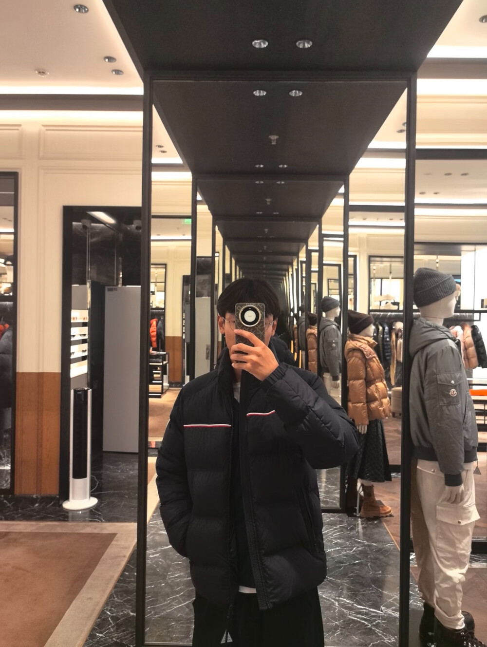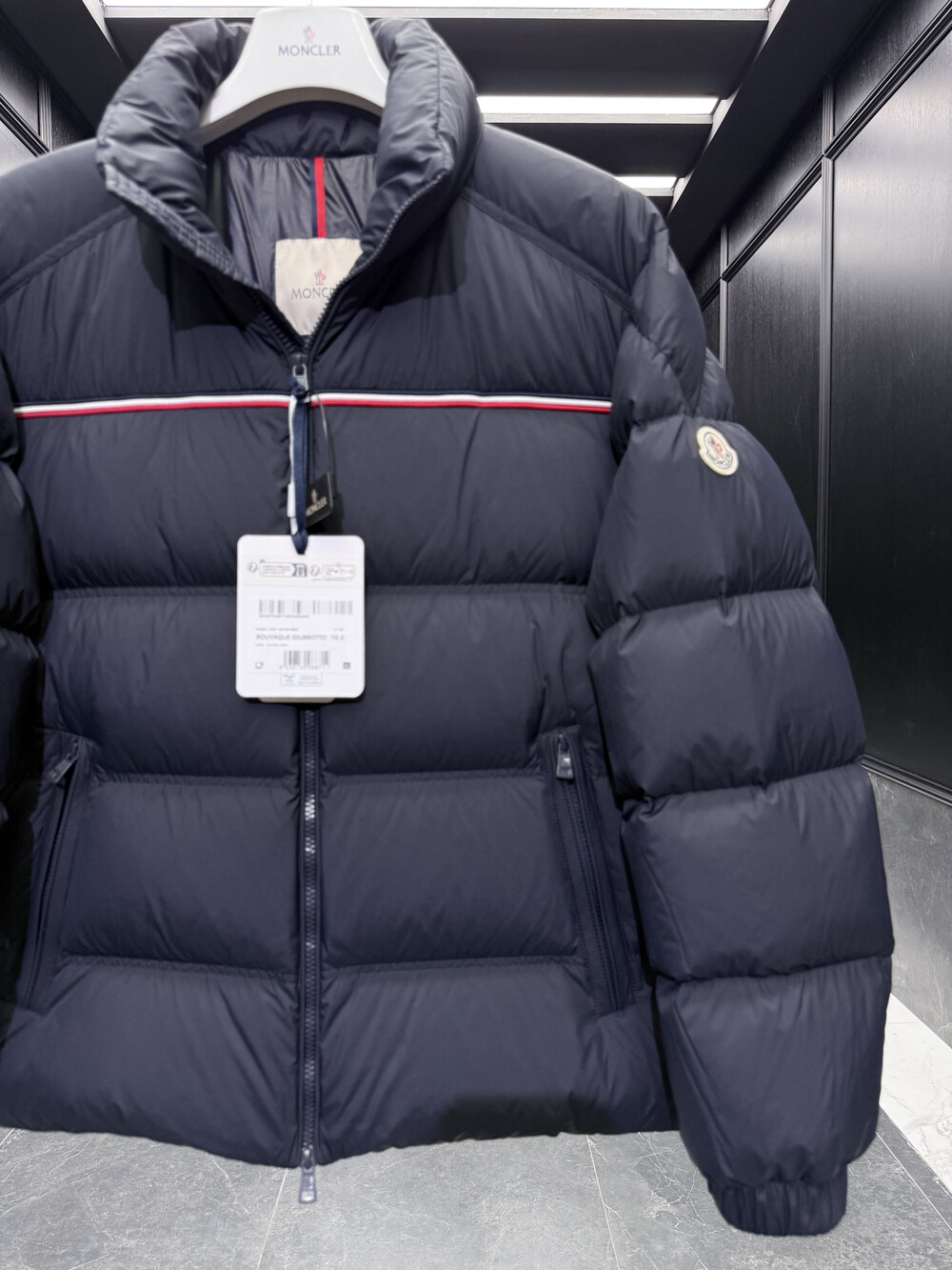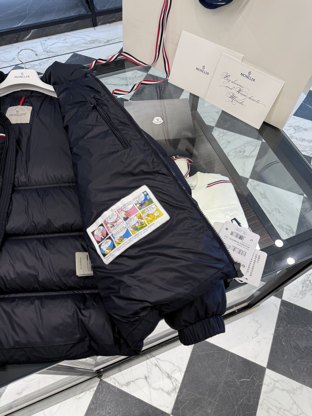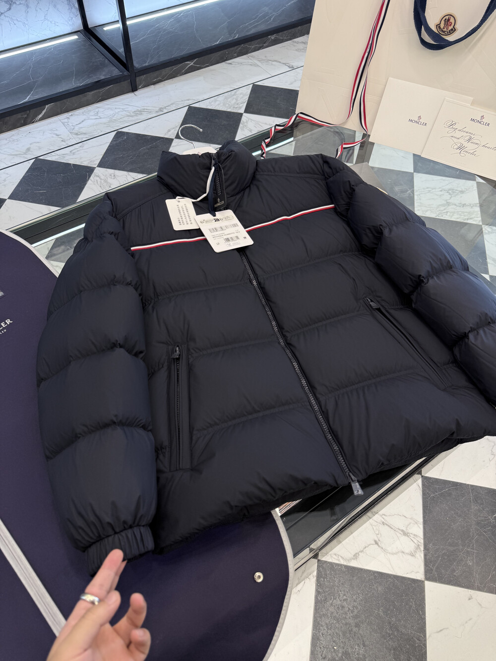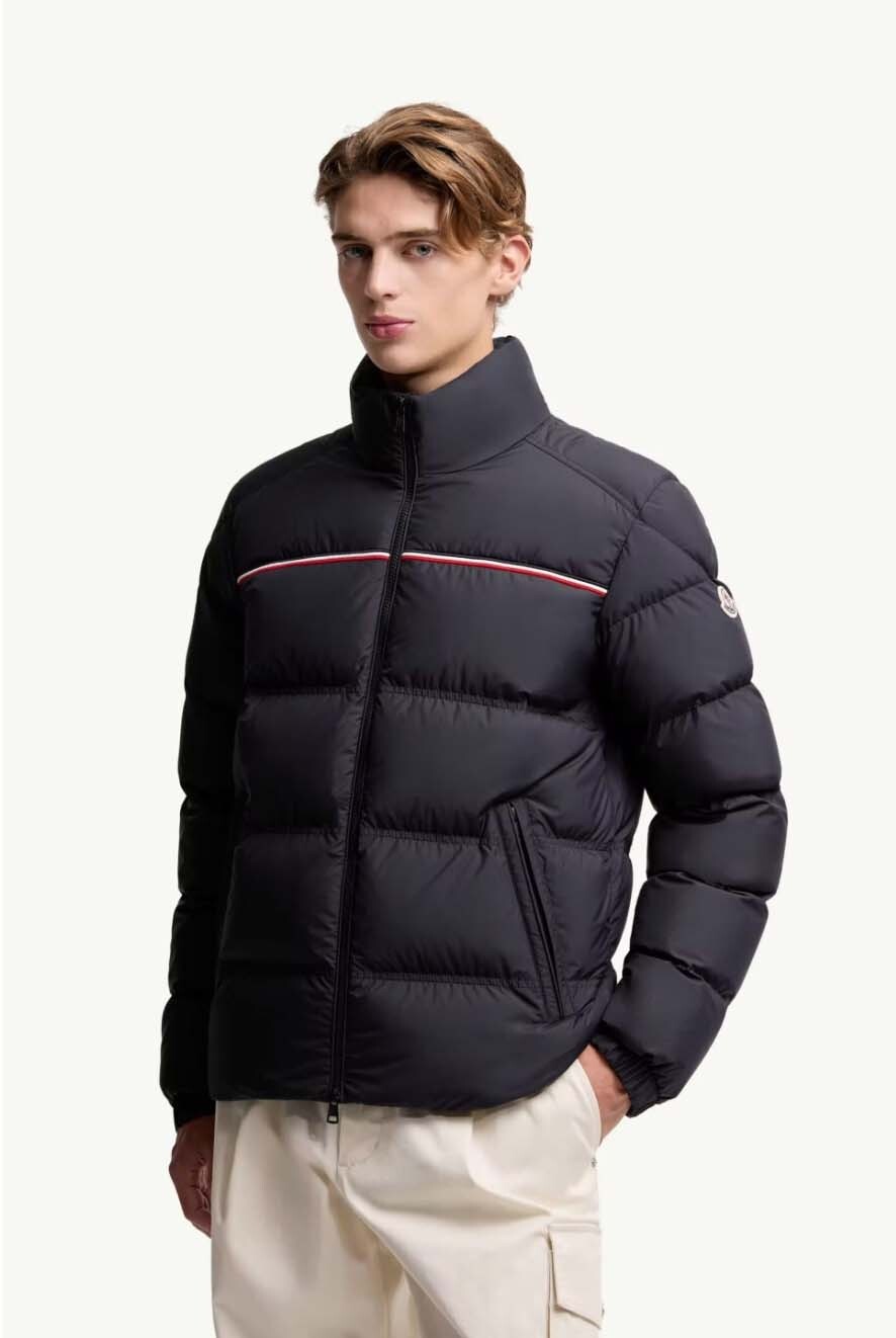 스트라이프 자수 스탠드 칼라 다운 재킷