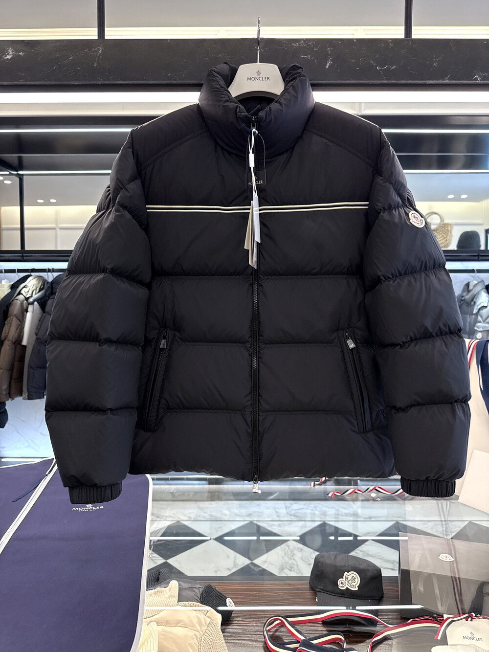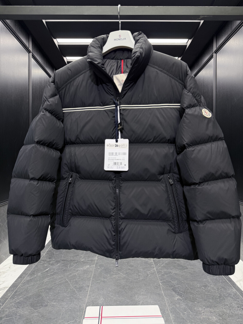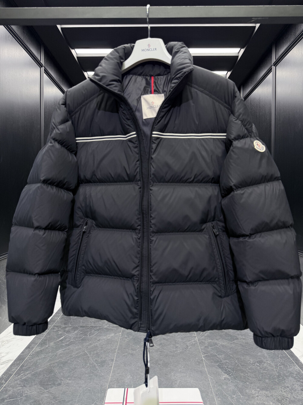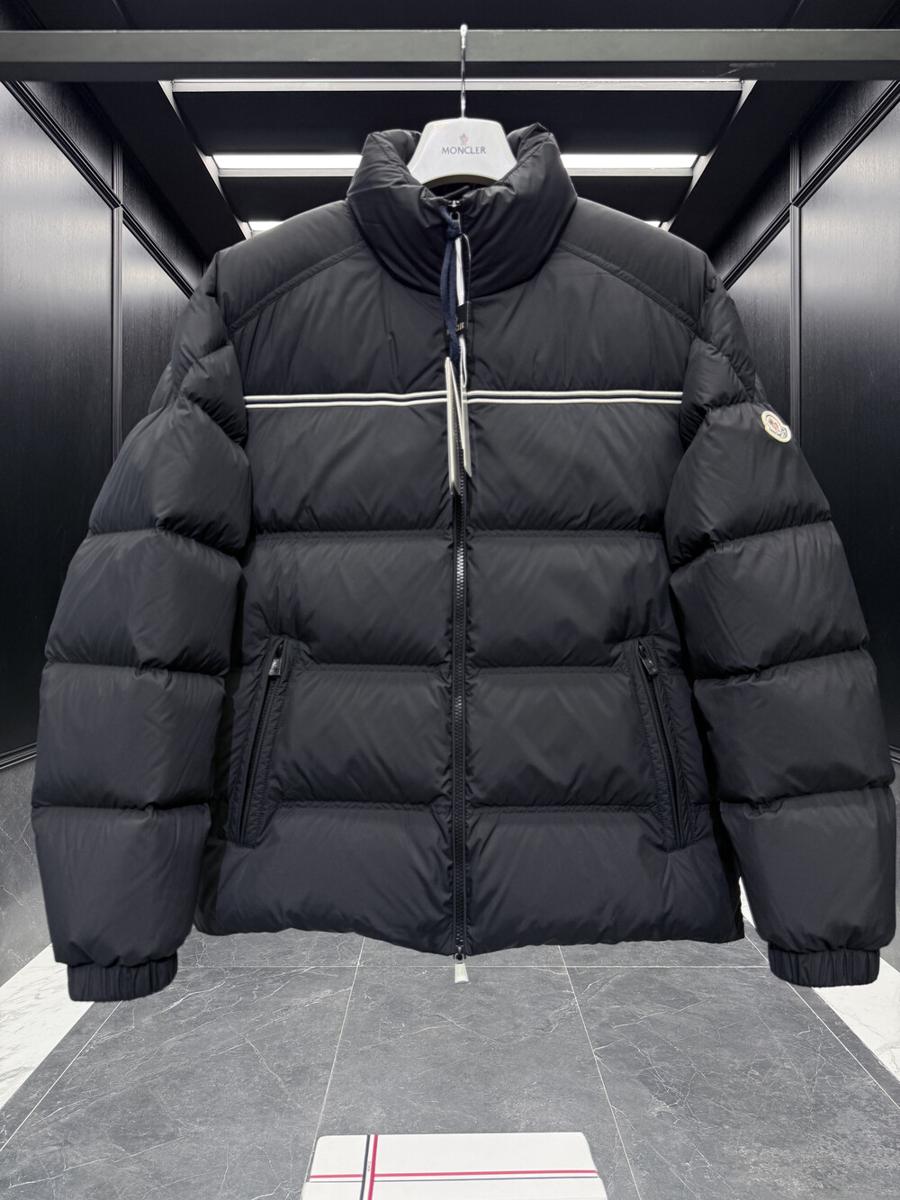 스트라이프 자수 스탠드 칼라 다운 재킷