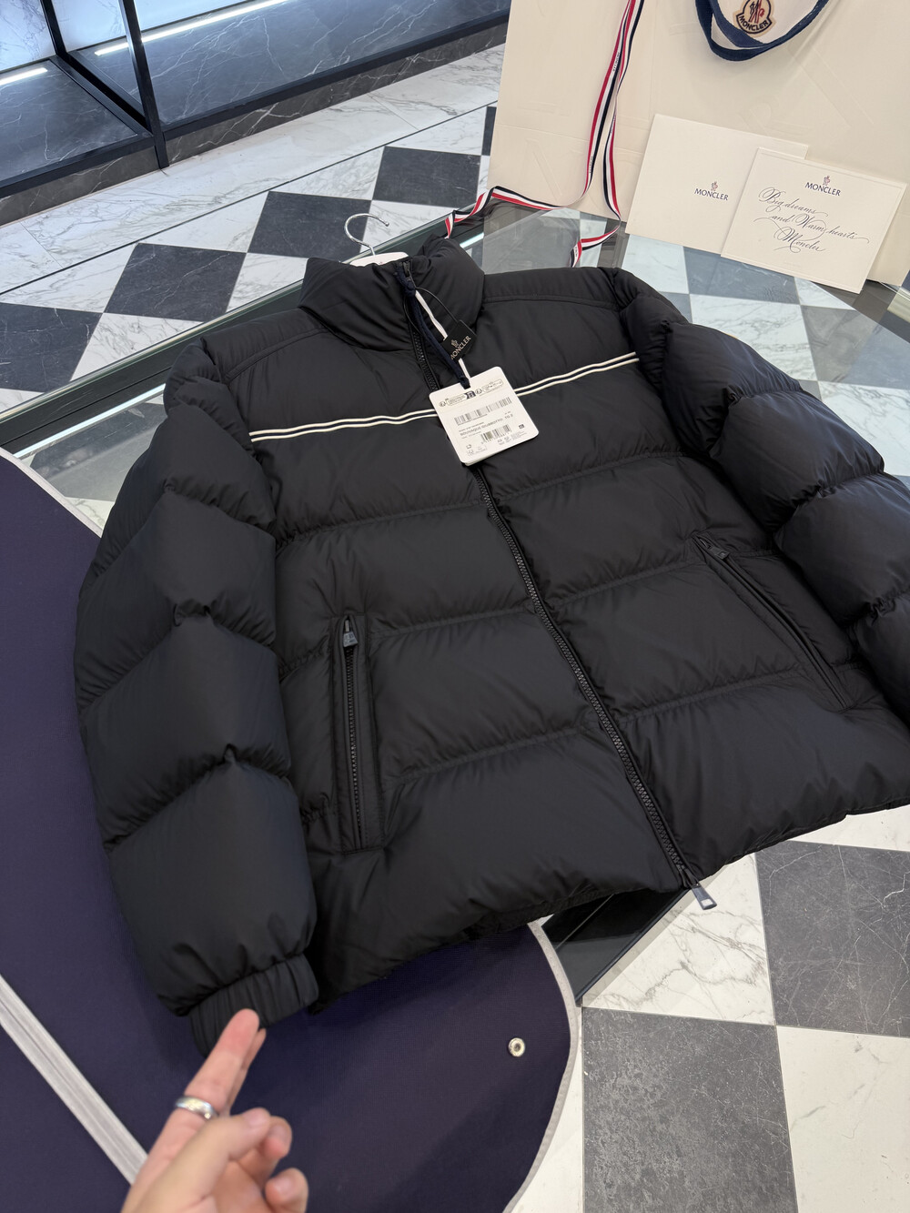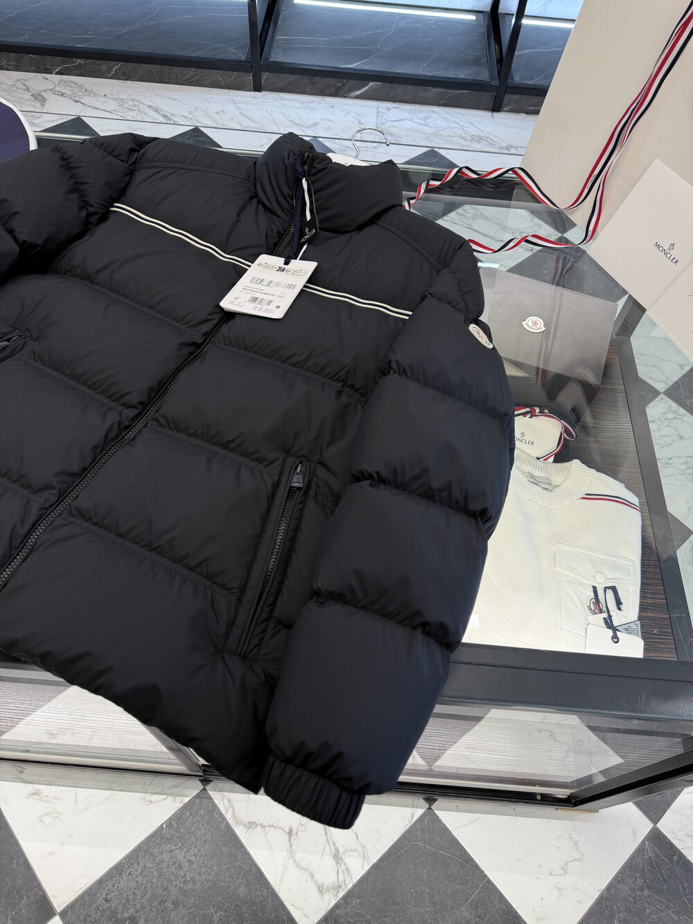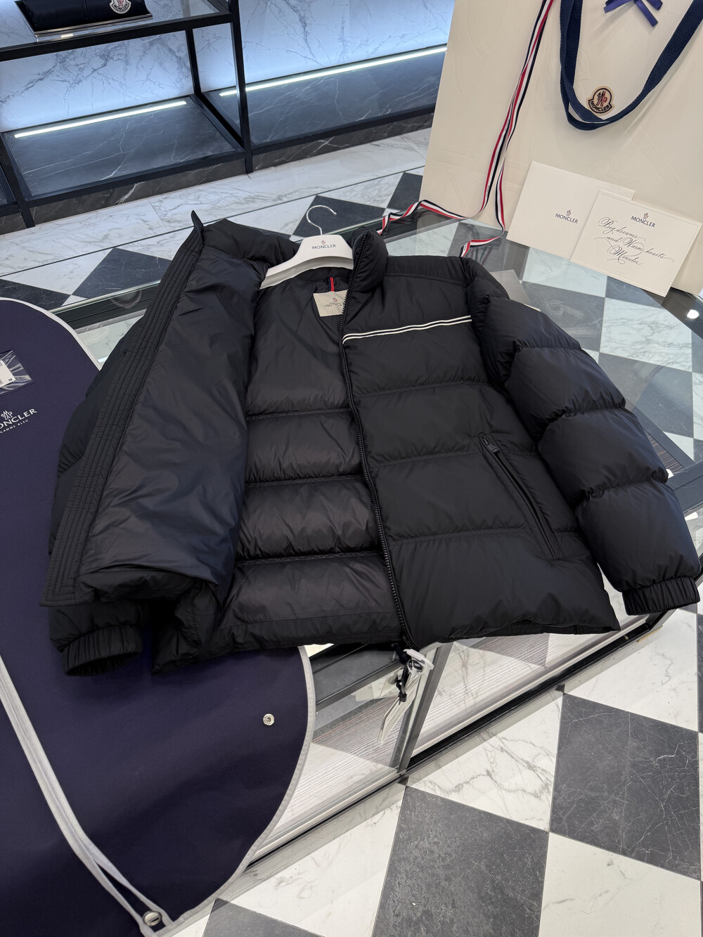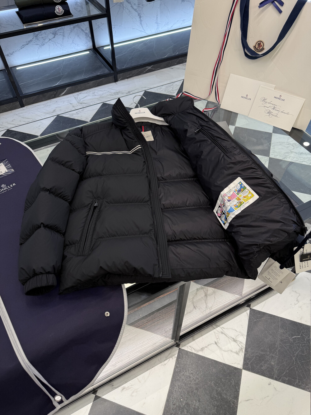 스트라이프 자수 스탠드 칼라 다운 재킷