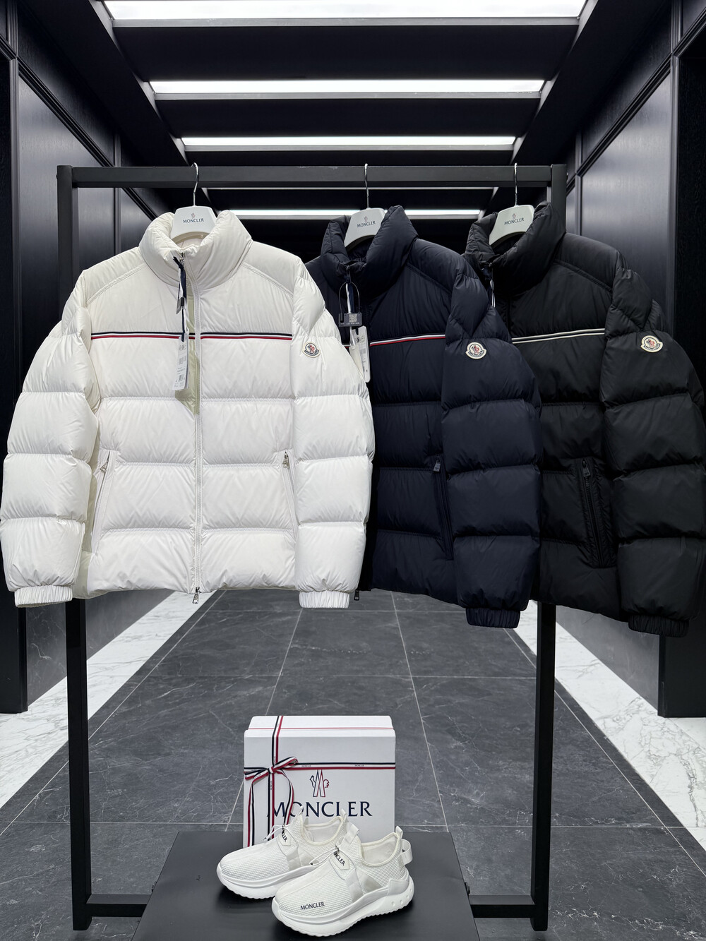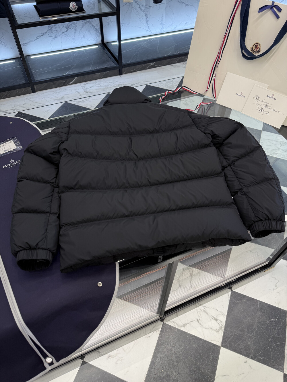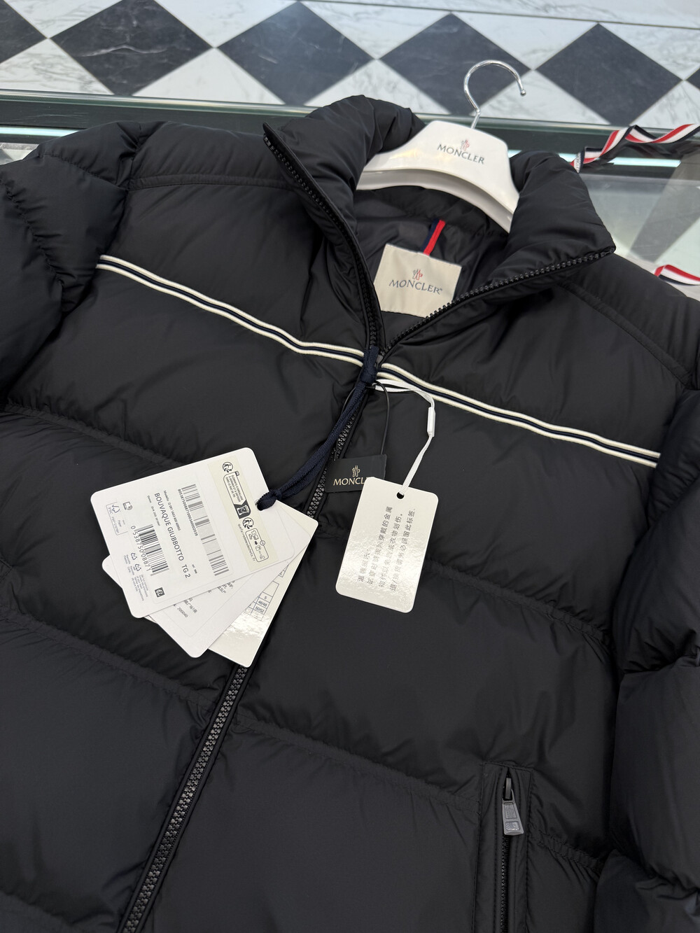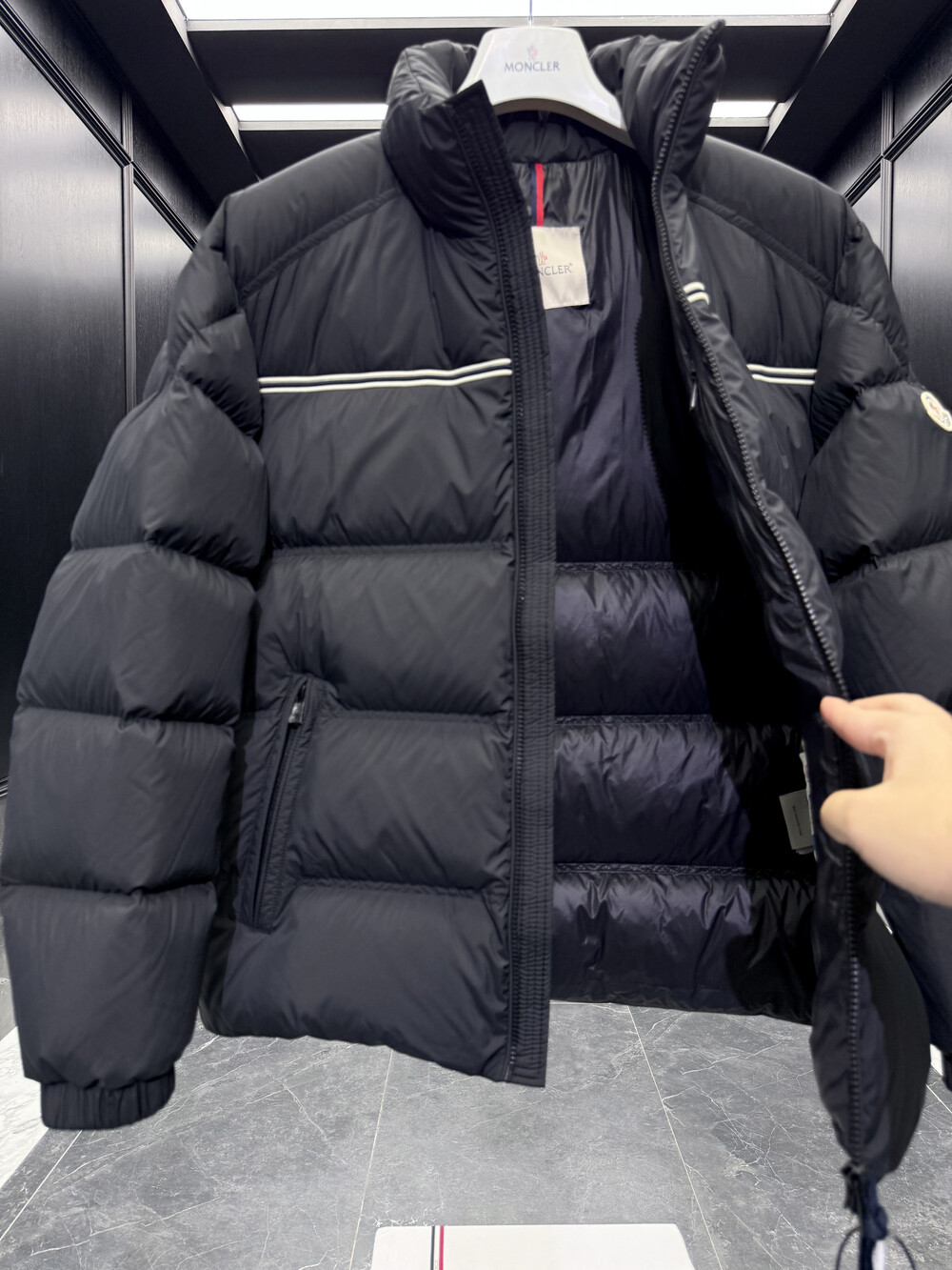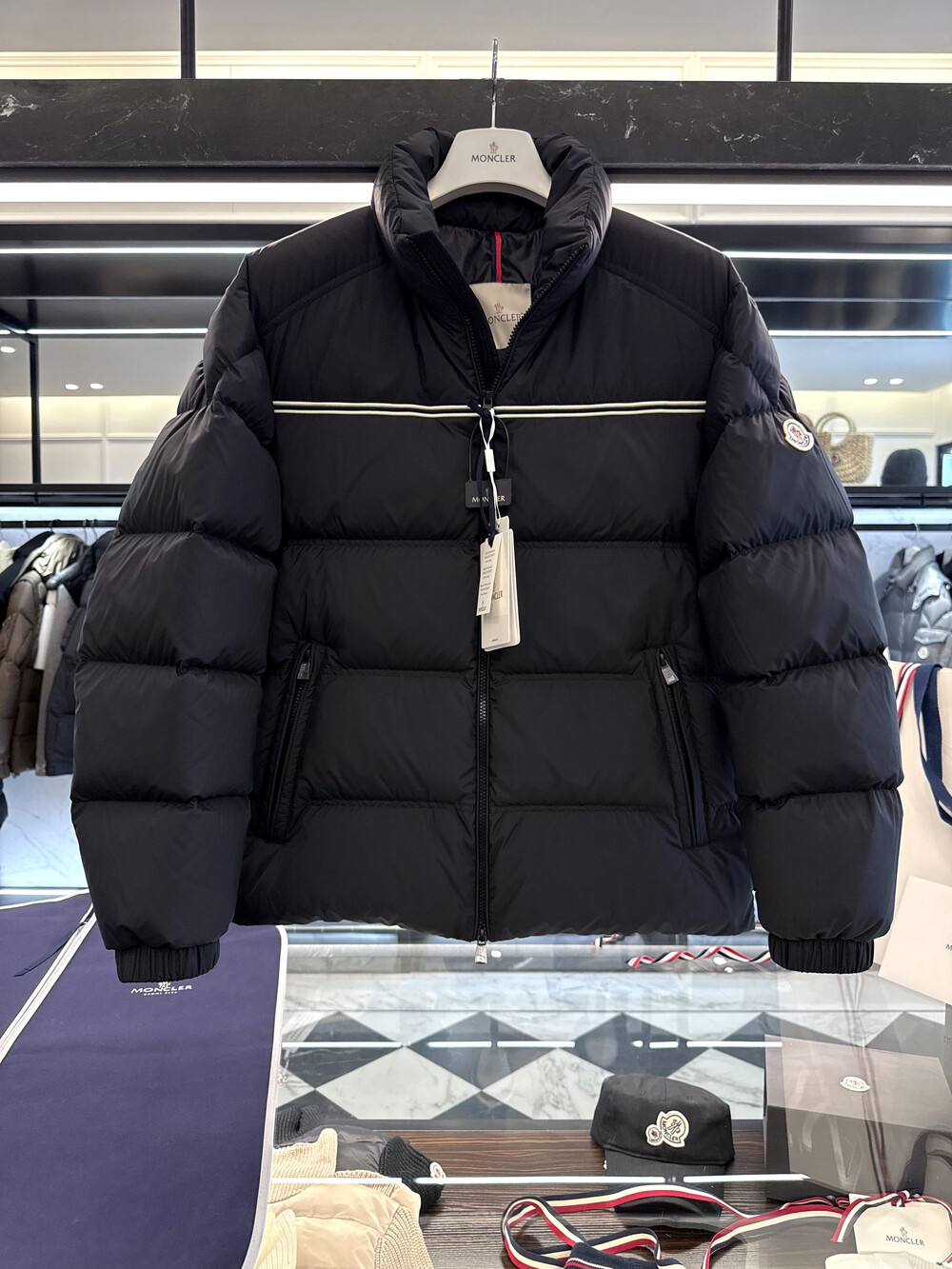 스트라이프 자수 스탠드 칼라 다운 재킷