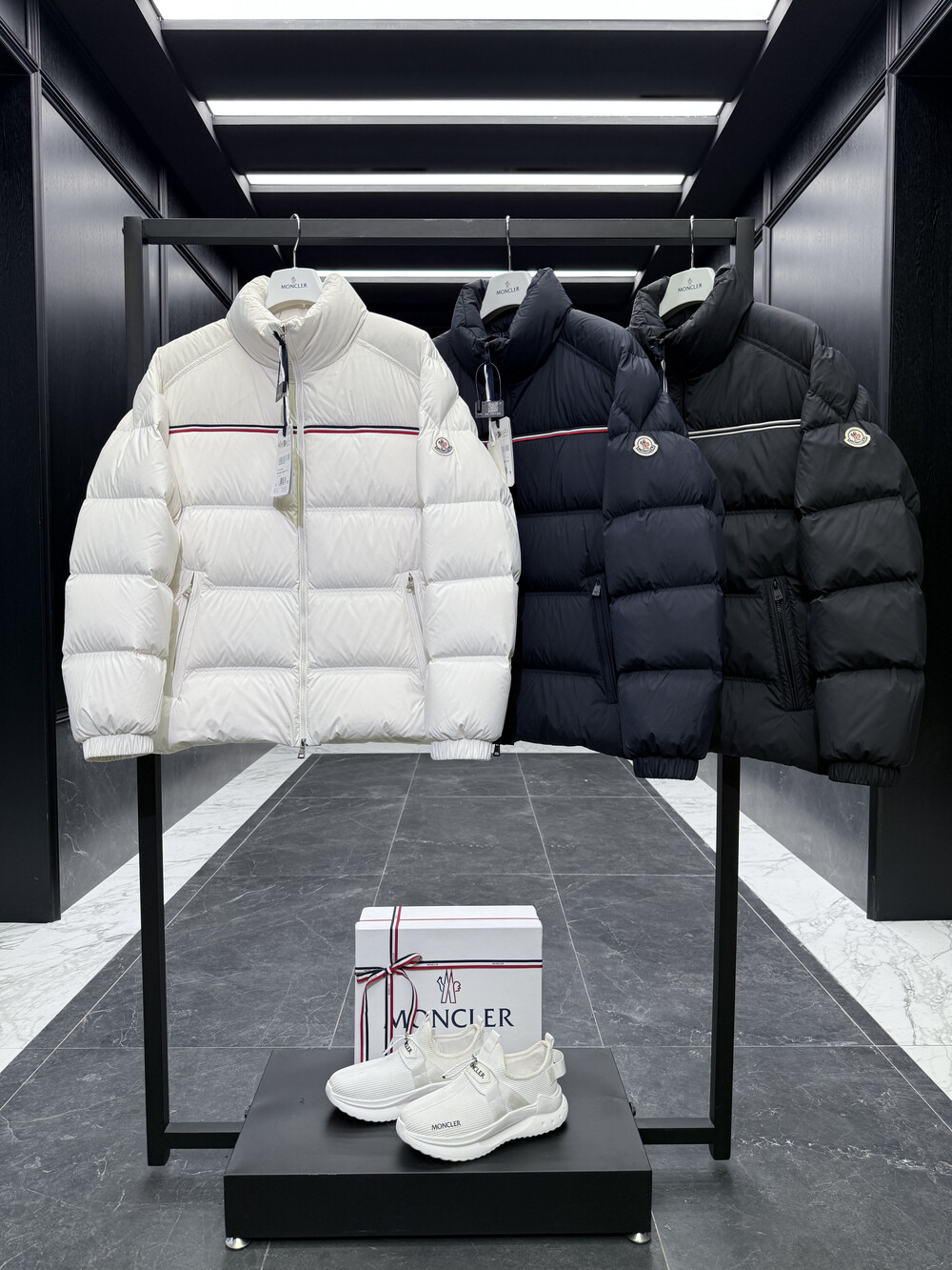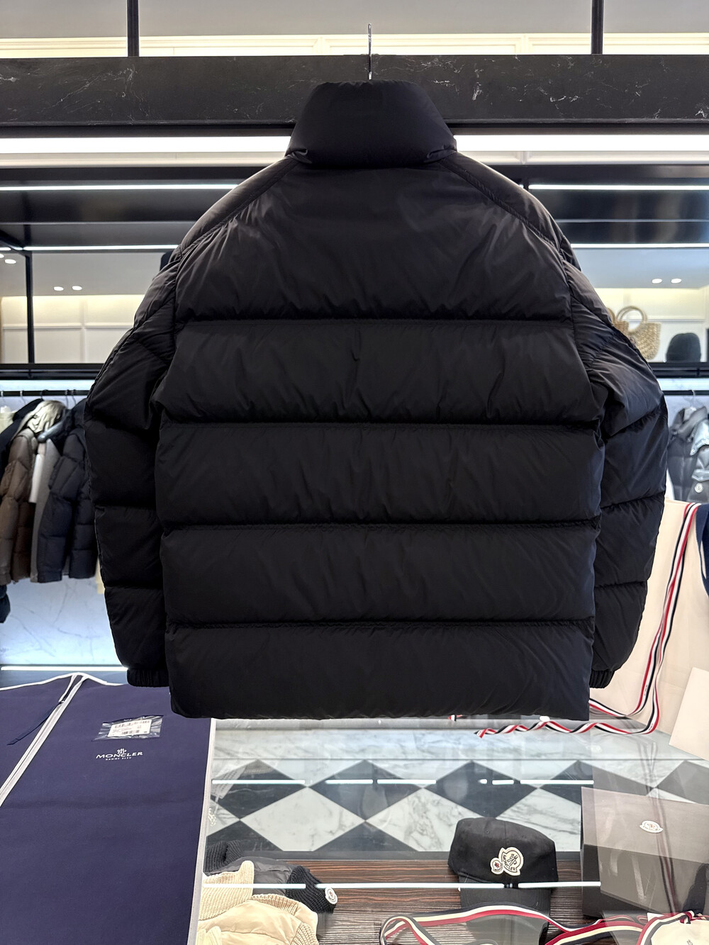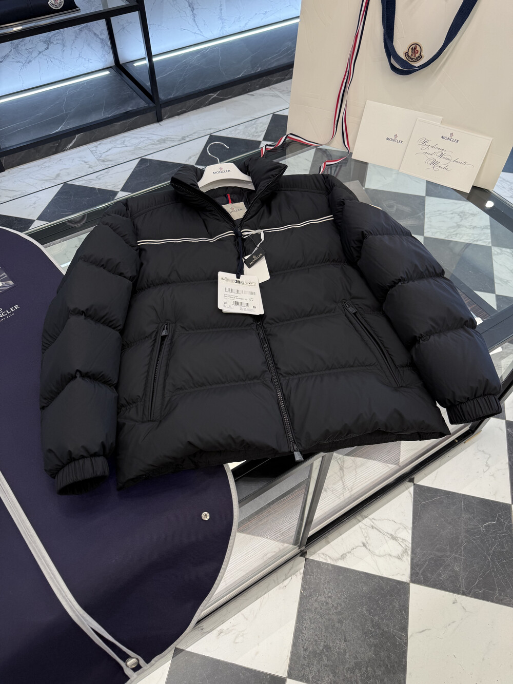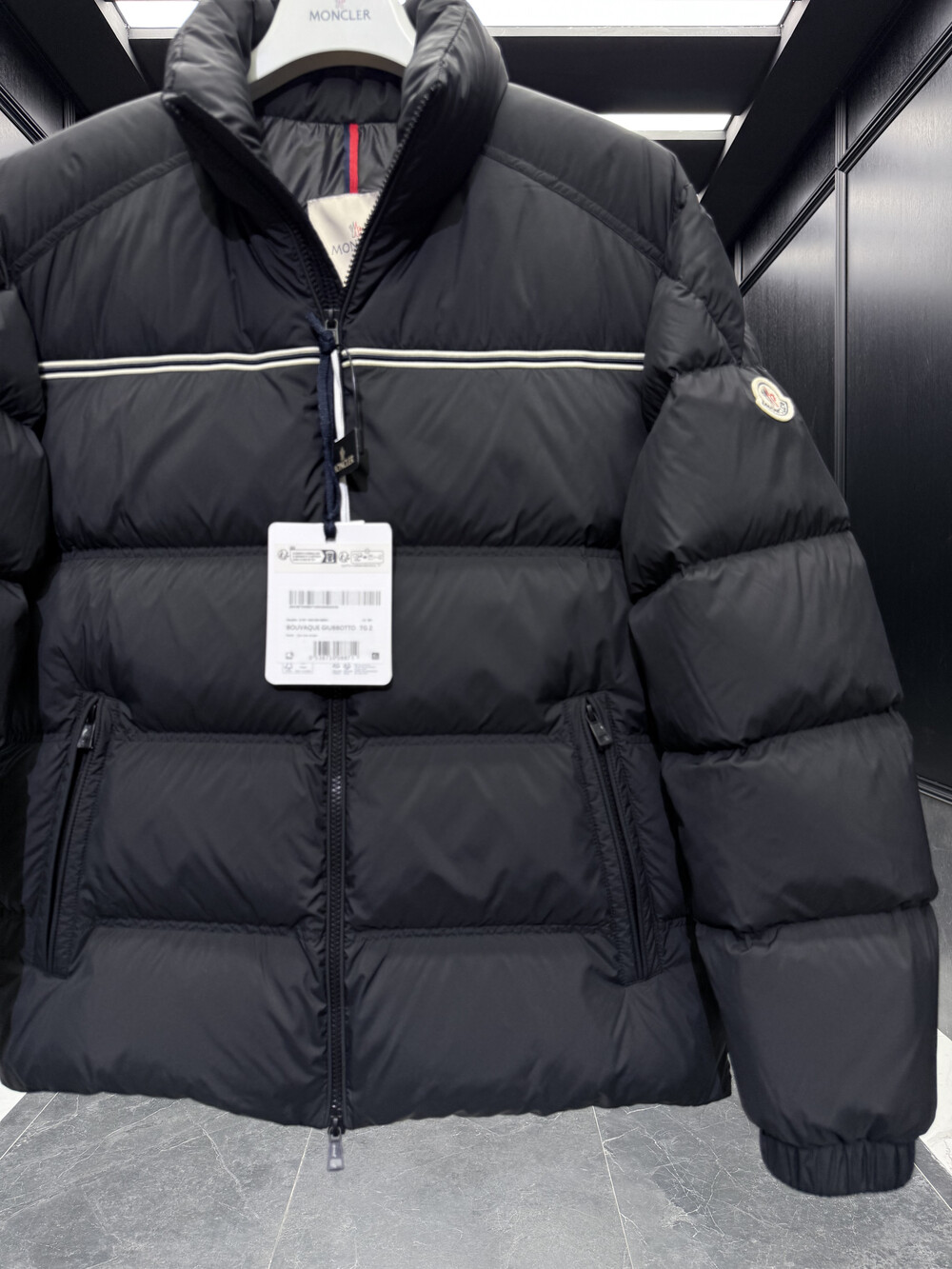 스트라이프 자수 스탠드 칼라 다운 재킷