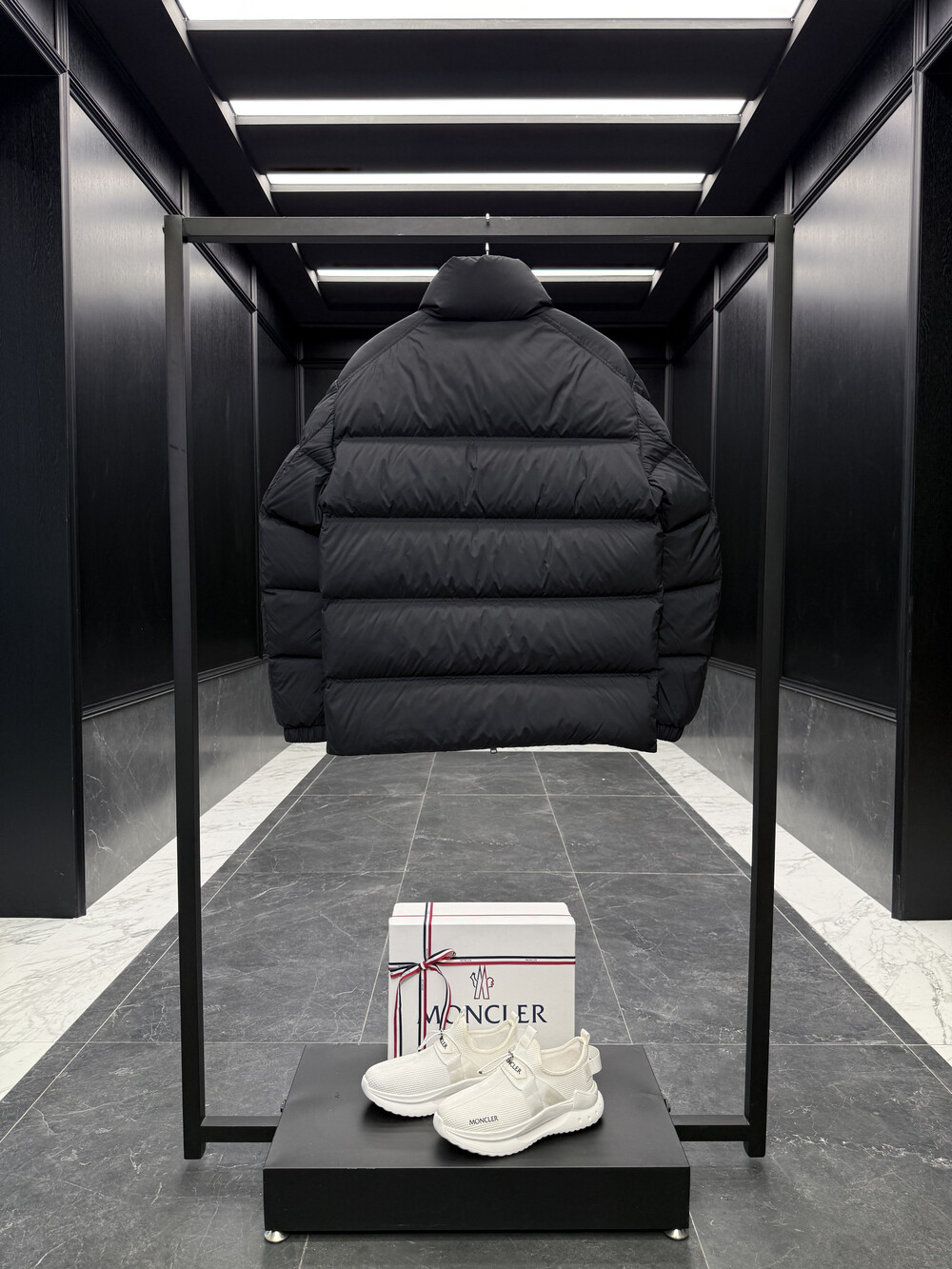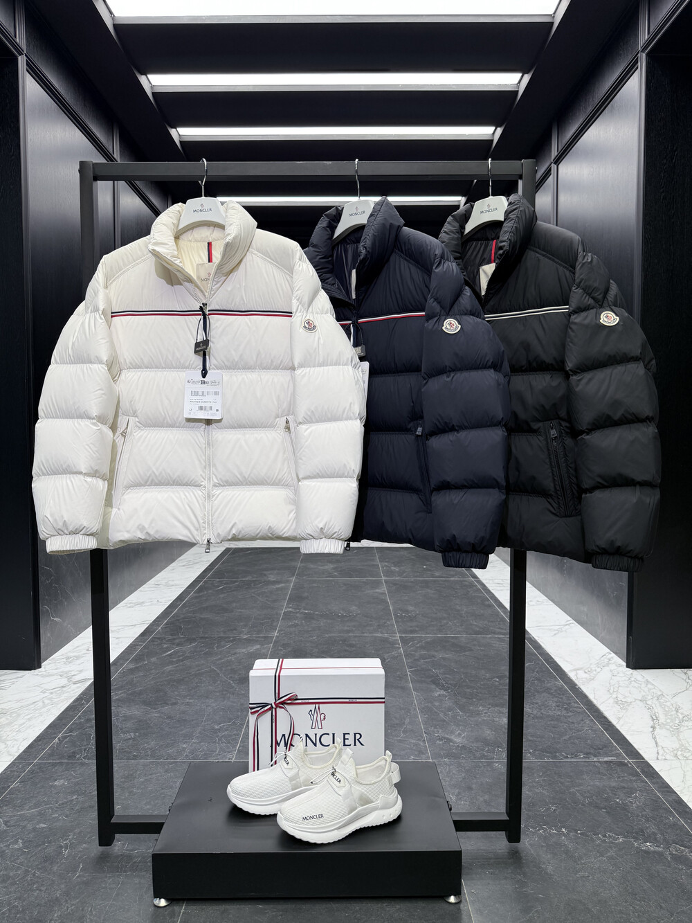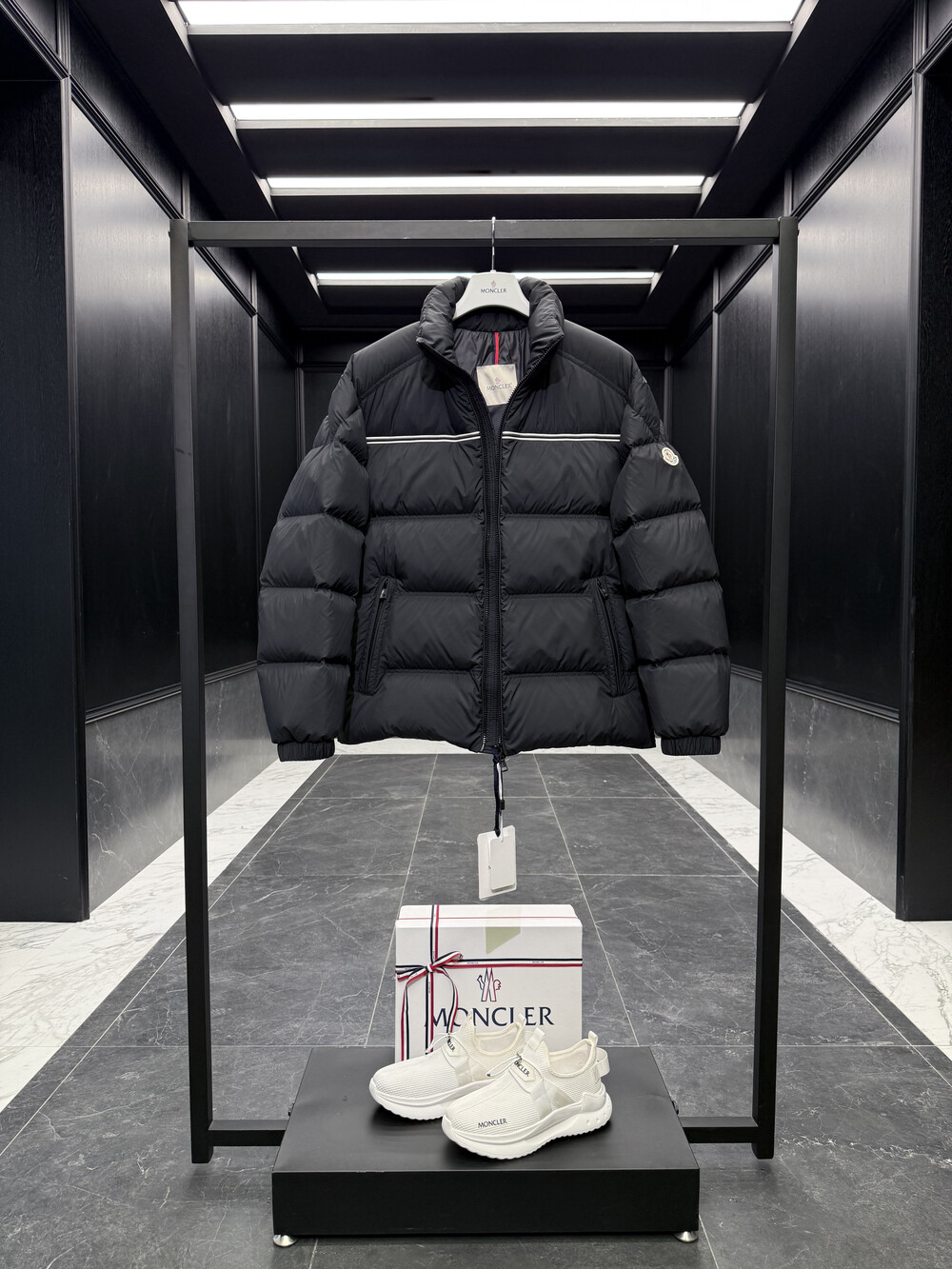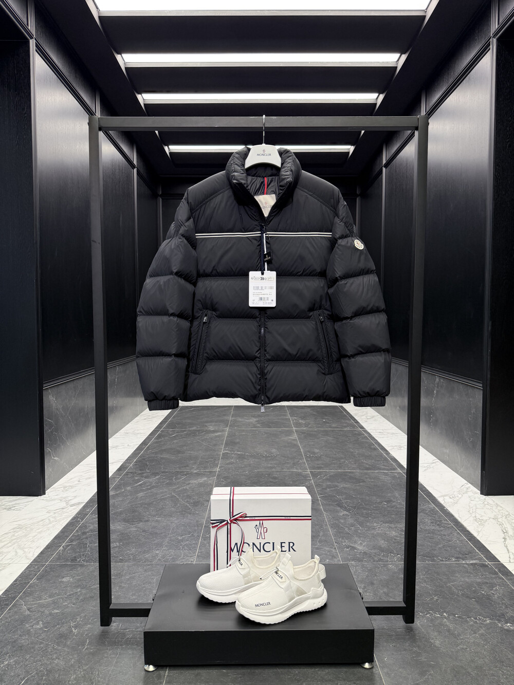 스트라이프 자수 스탠드 칼라 다운 재킷