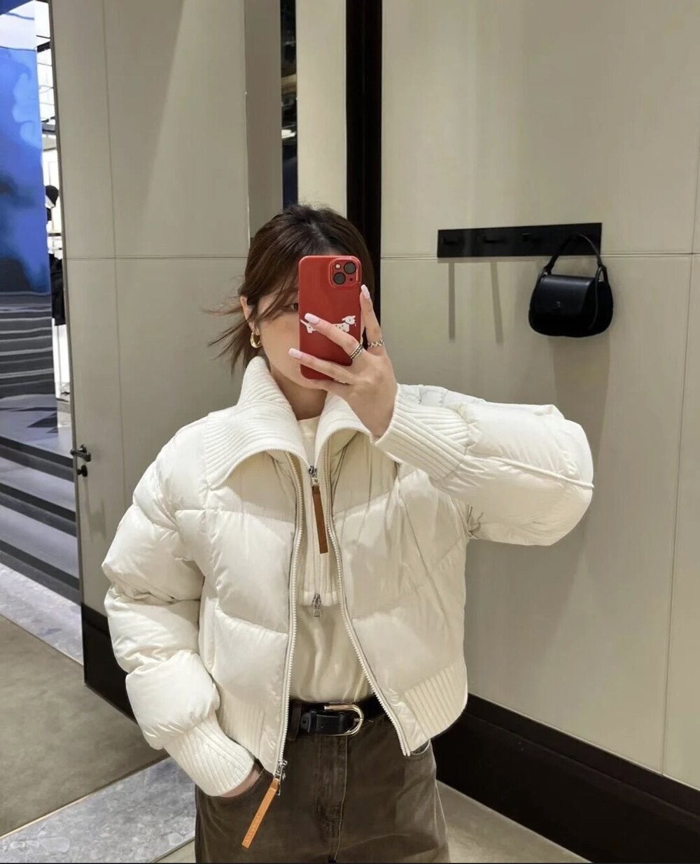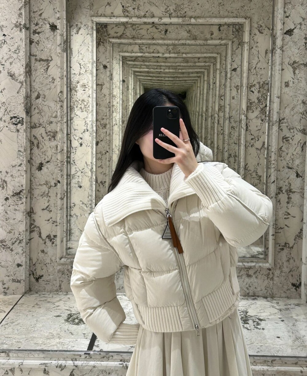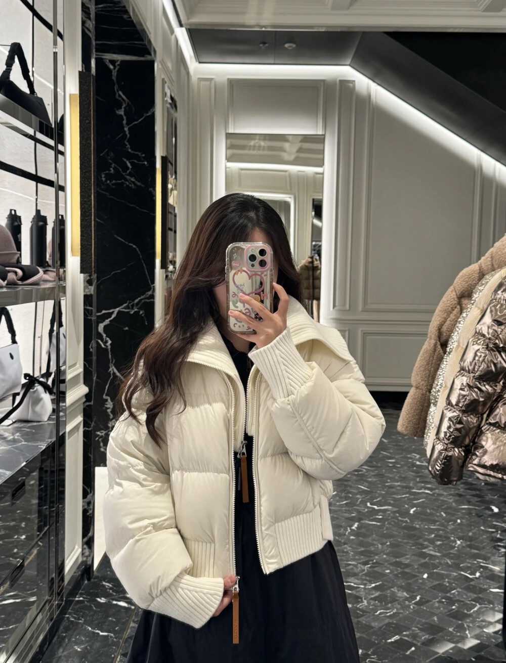 고급스러운 울 혼방 칼라와 이중 여밈으로
