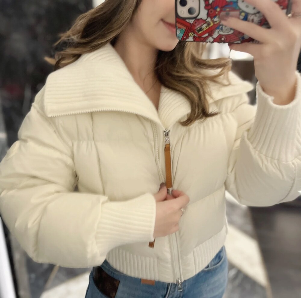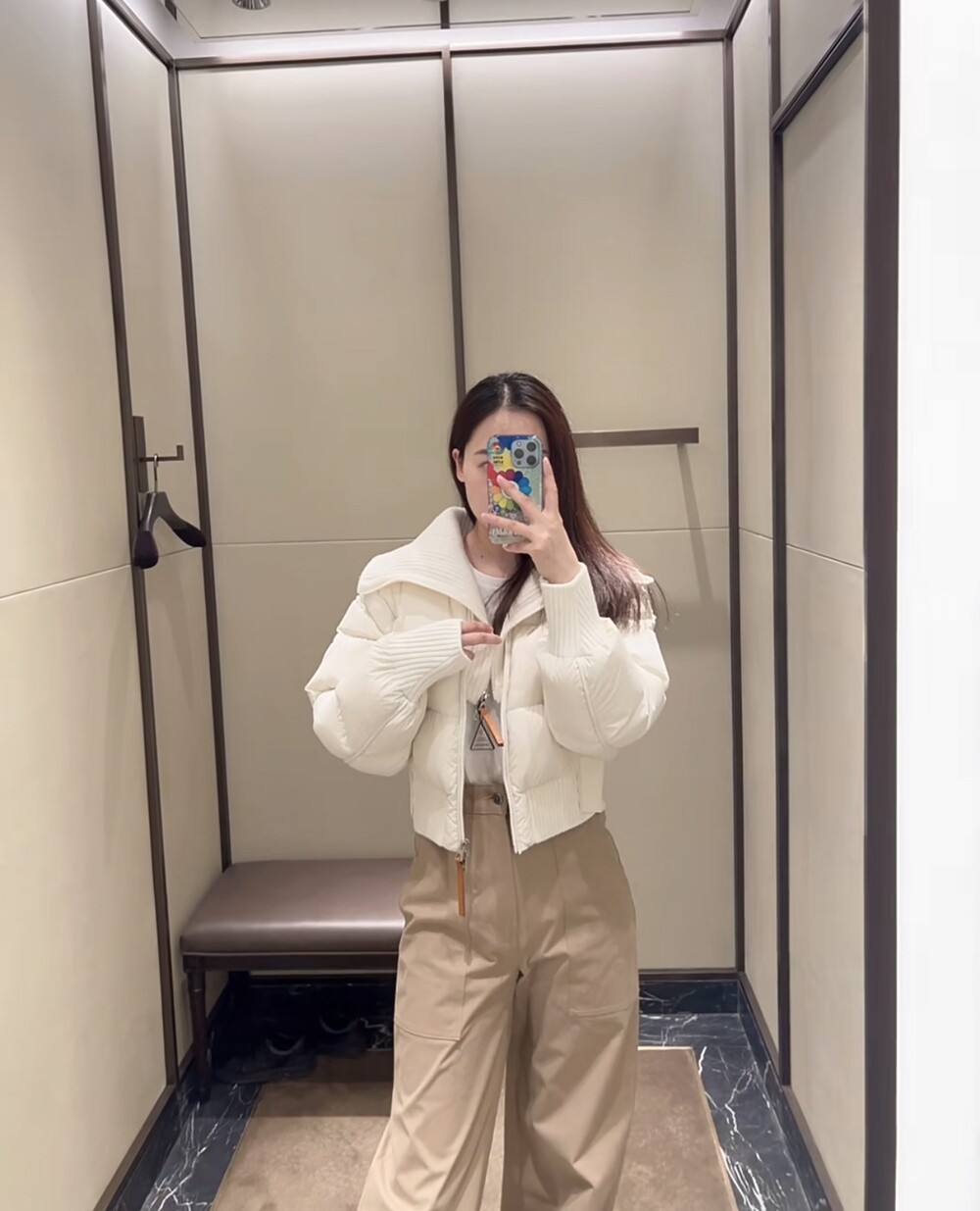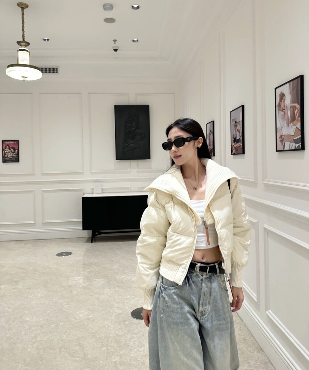 고급스러운 울 혼방 칼라와 이중 여밈으로