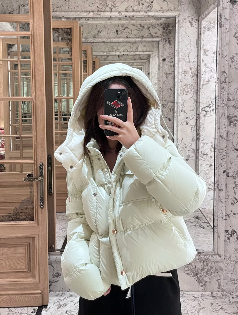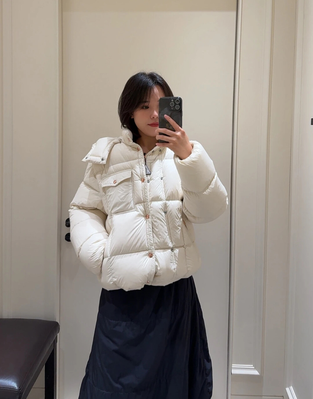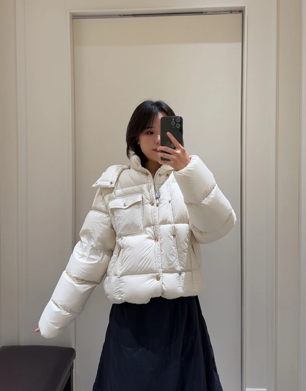여성용 스퀘어 퀼팅 후드 숏 다운 재킷