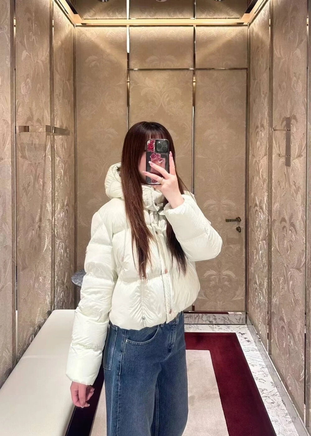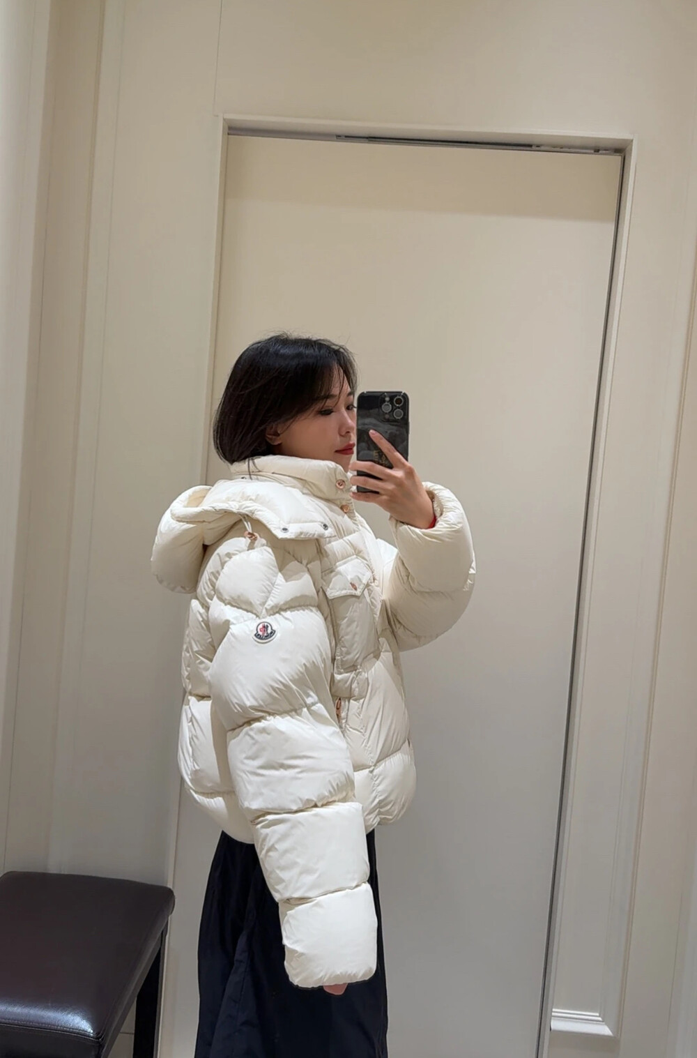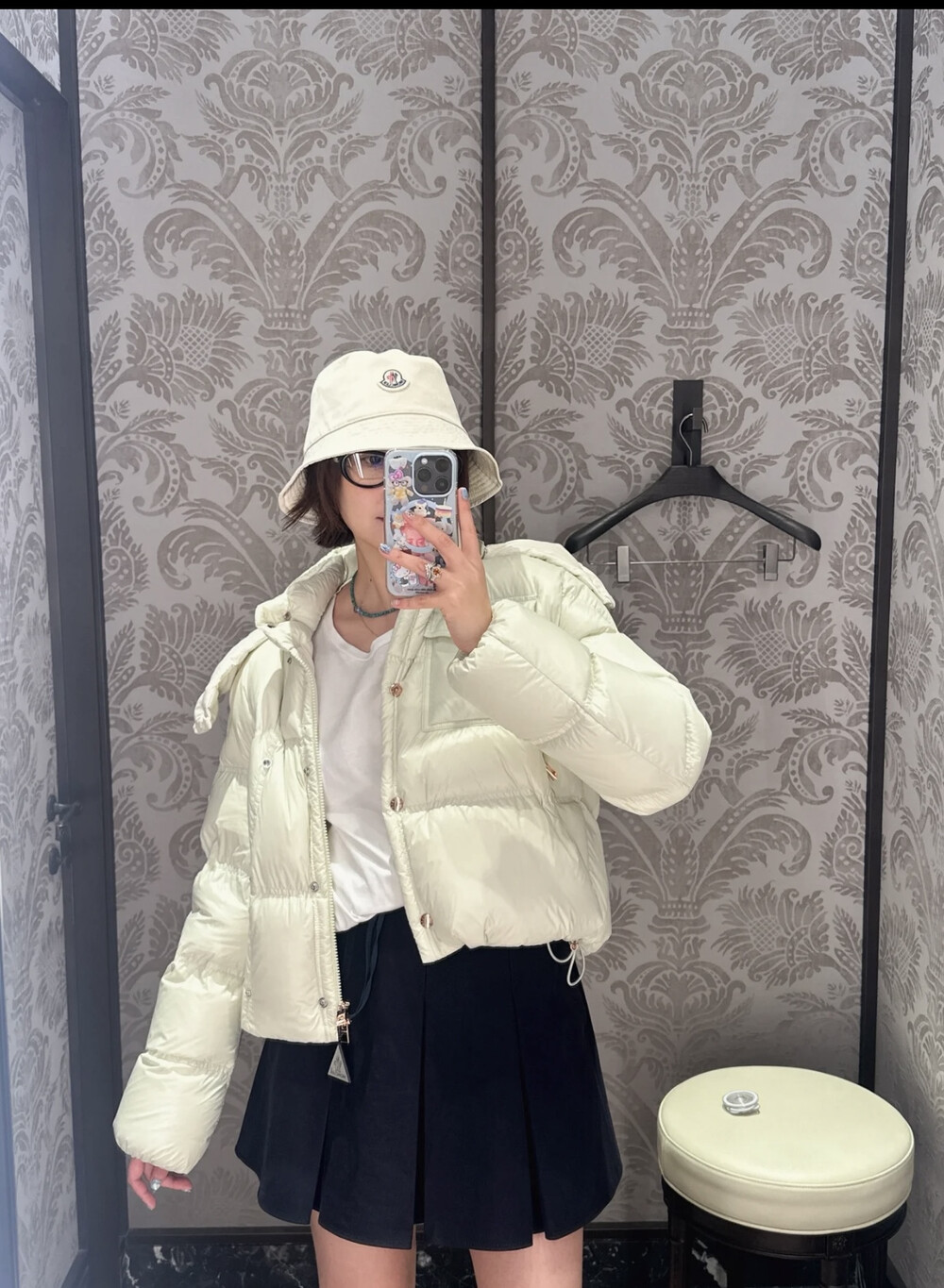 여성용 스퀘어 퀼팅 후드 숏 다운 재킷