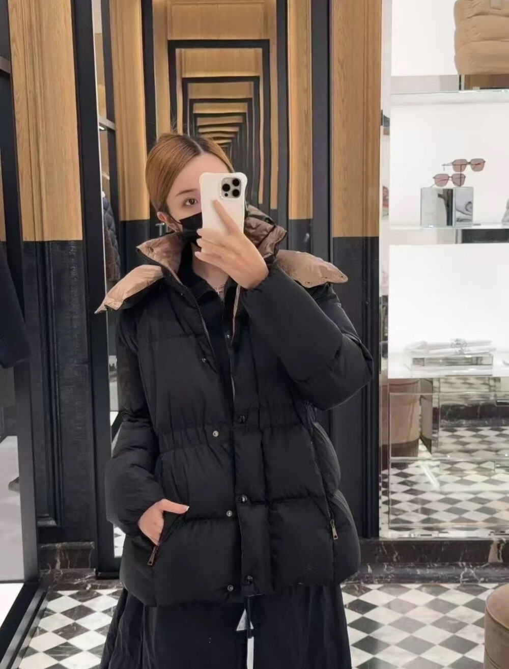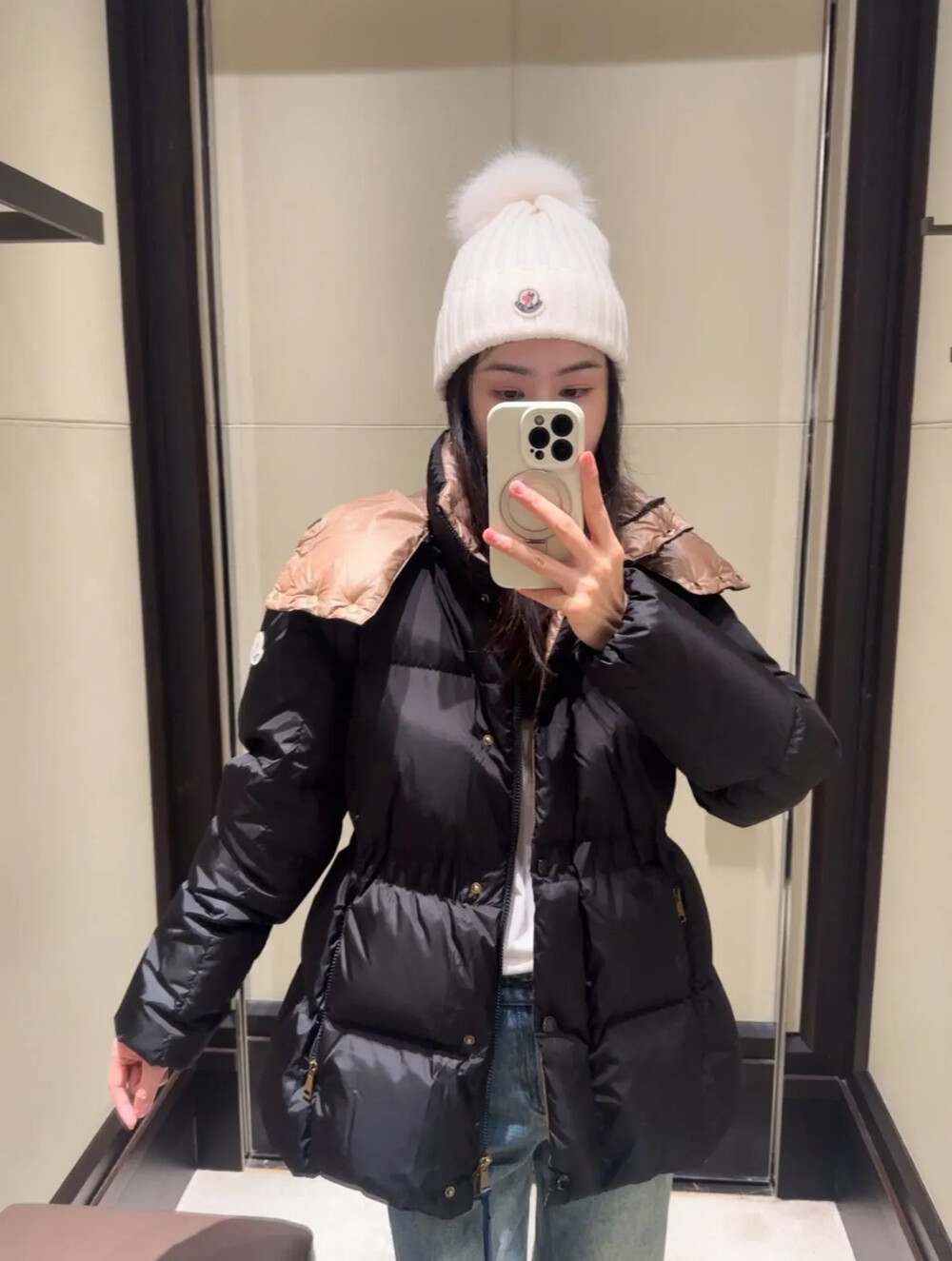 여성용 스퀘어 퀼팅 후드 숏 다운 재킷