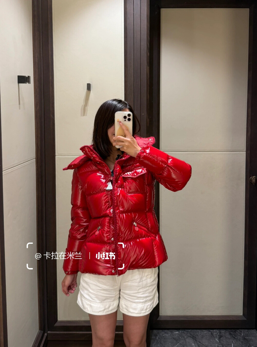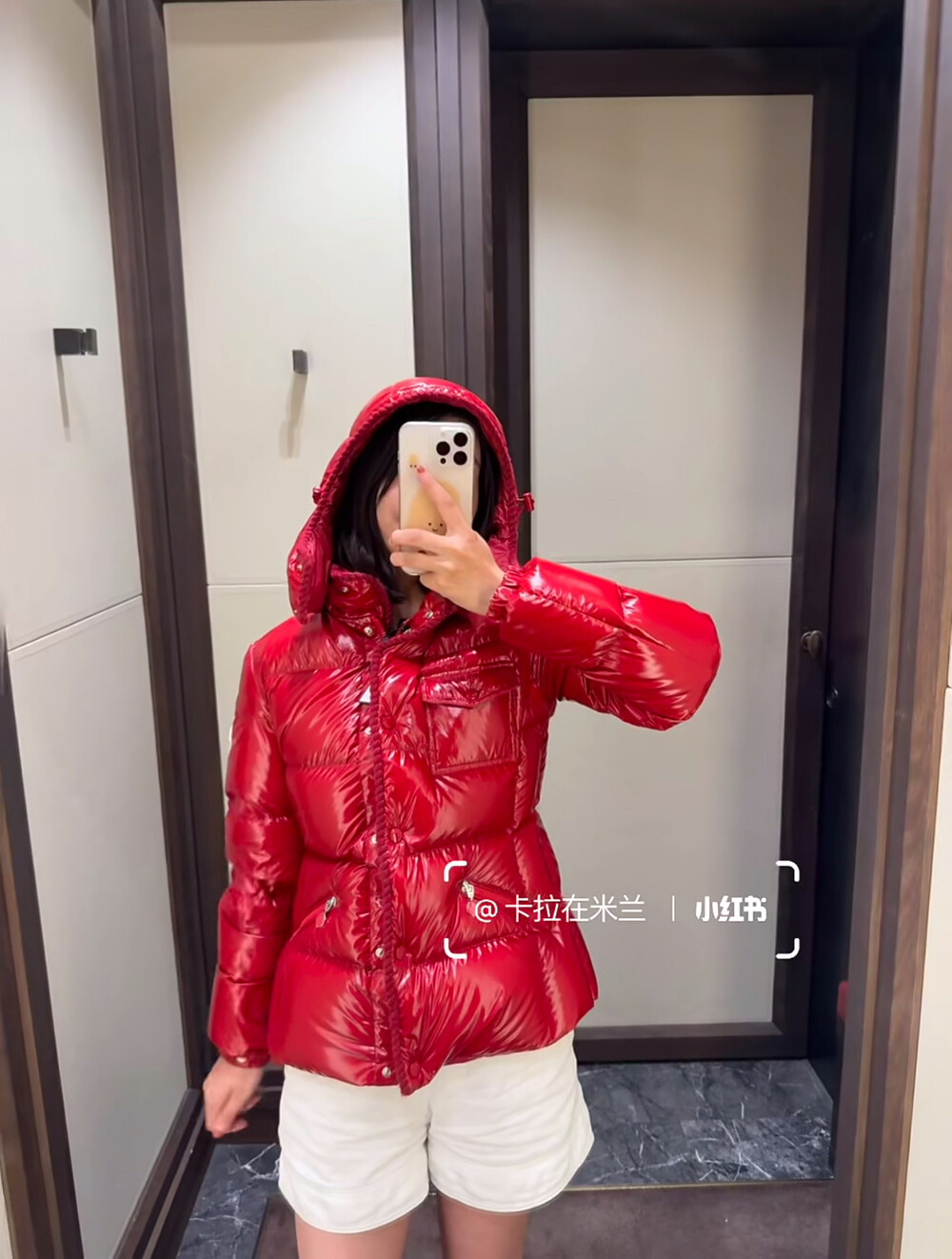 Glareins 여성용 우븐 트리밍 후드 숏 다운 재킷