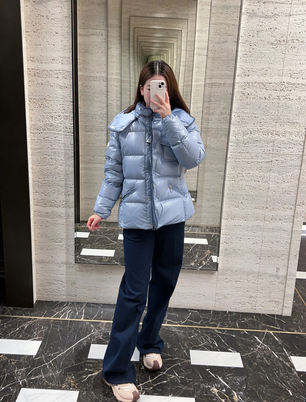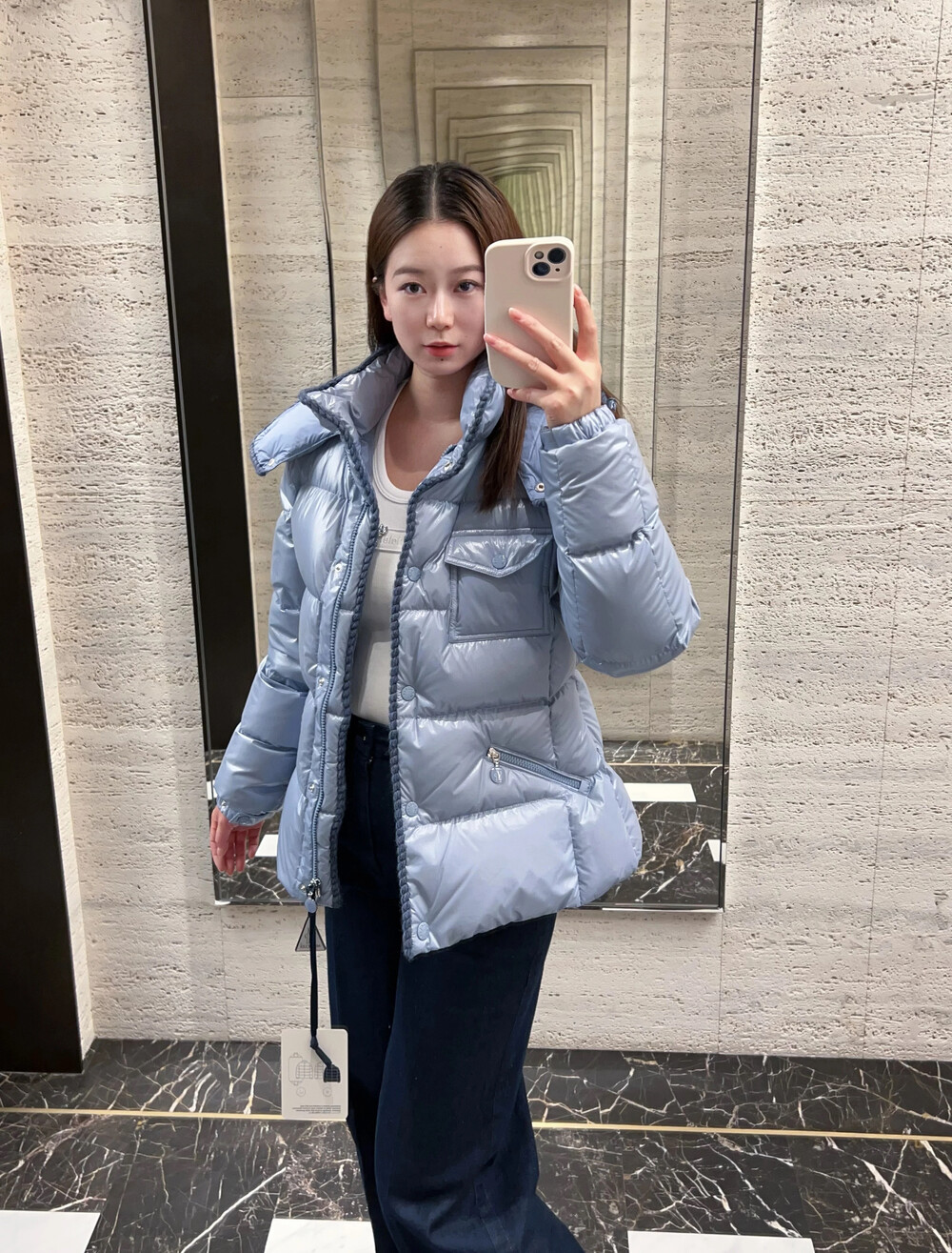 Glareins 여성용 우븐 트리밍 후드 숏 다운 재킷