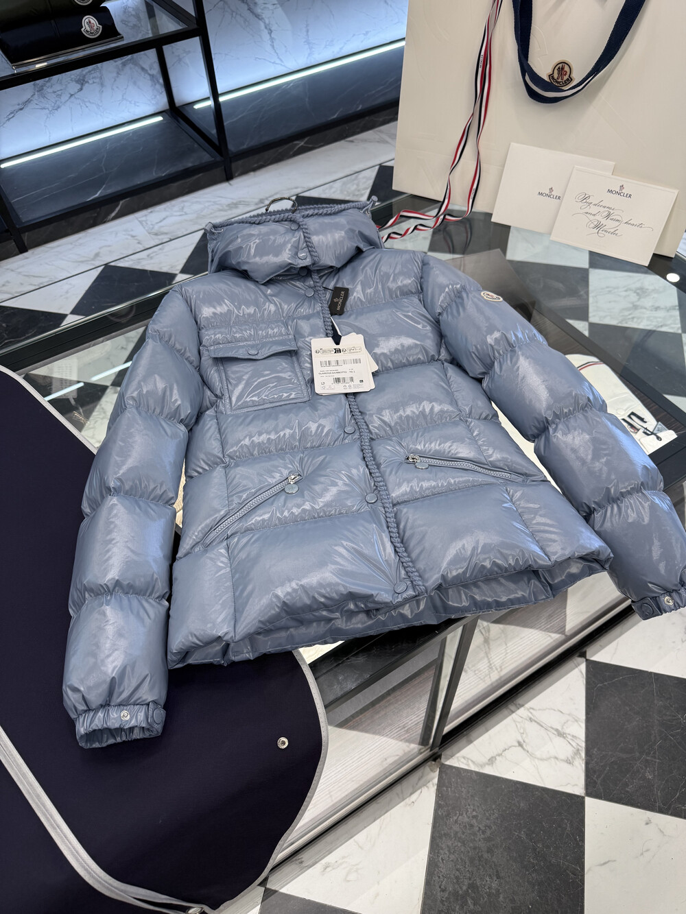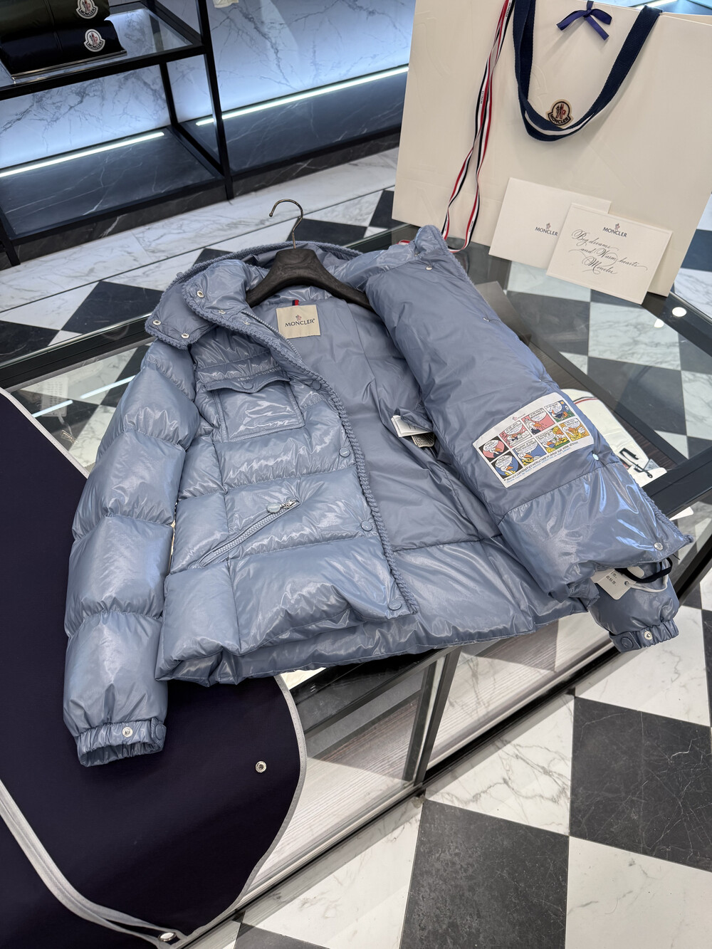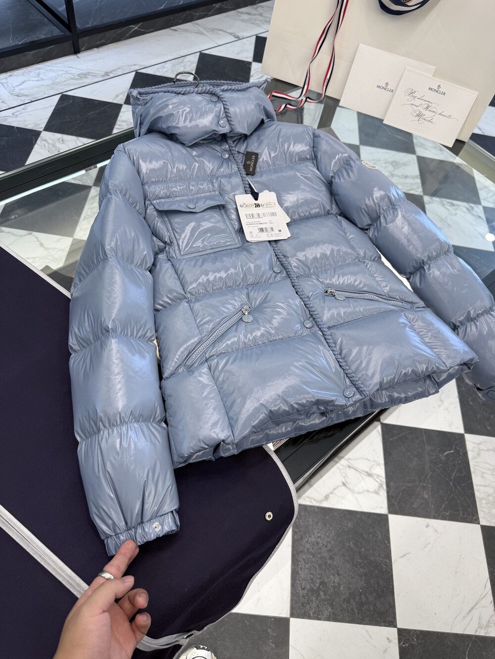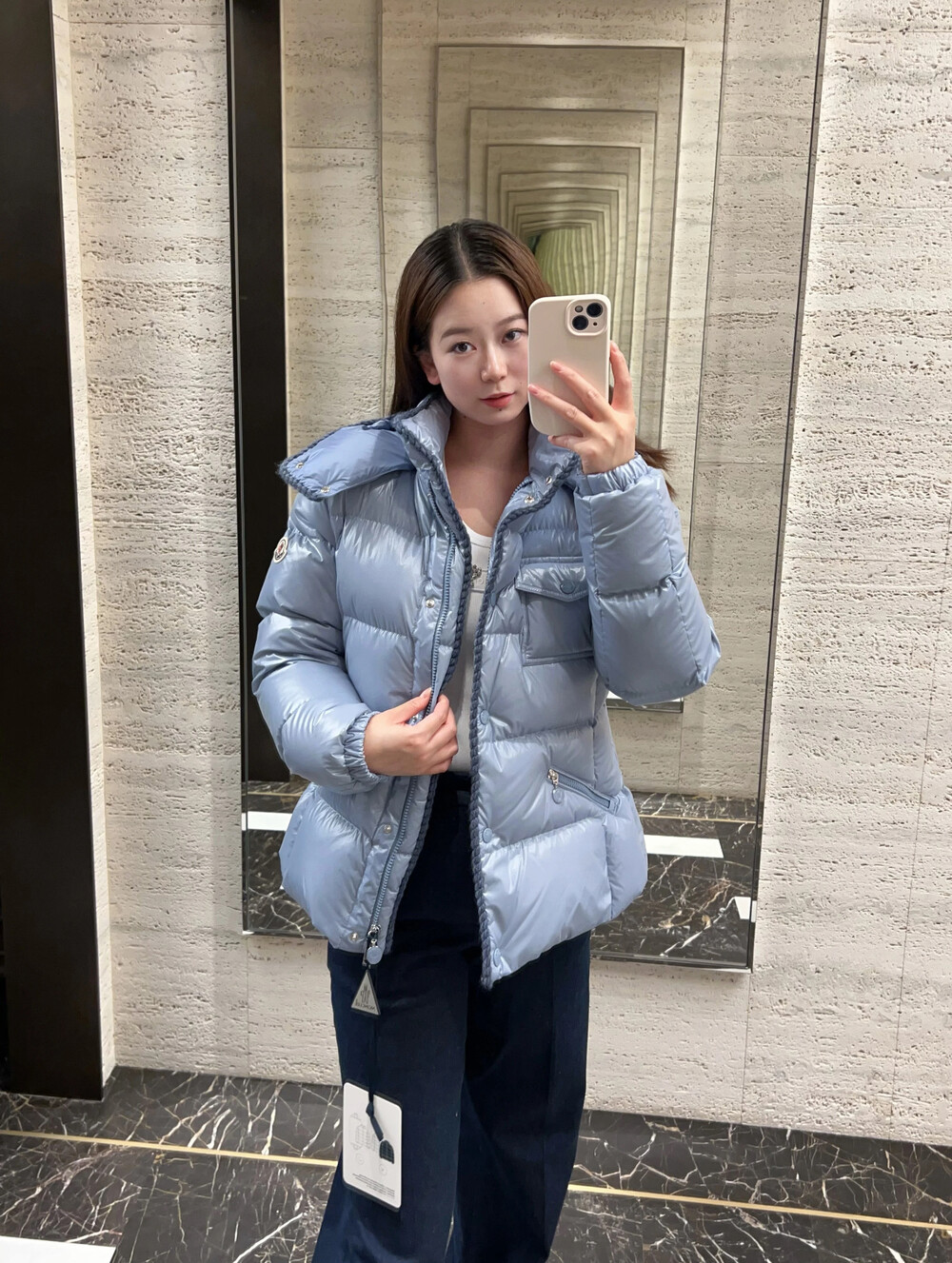 클래식 다운 재킷을 정교한 우븐 트리밍으로