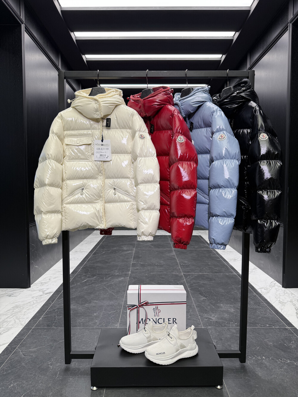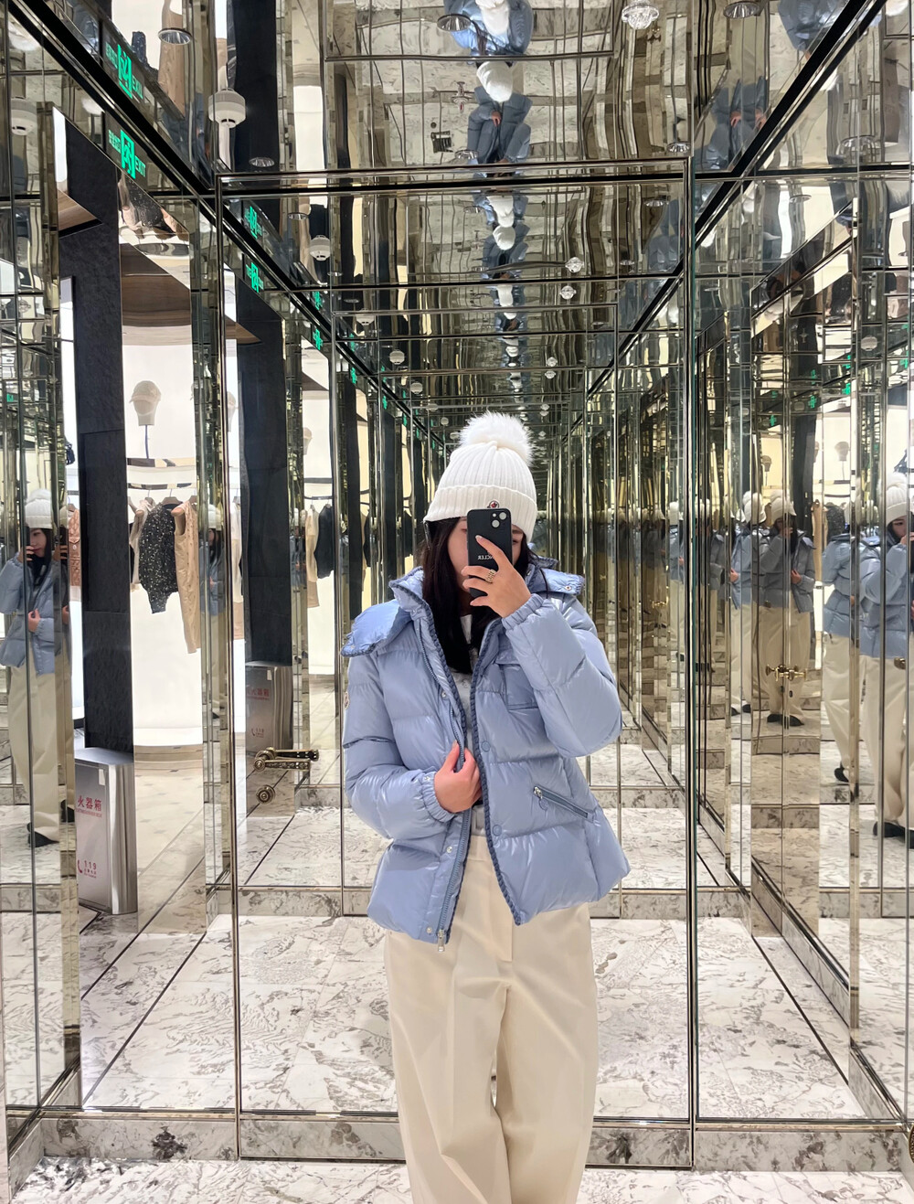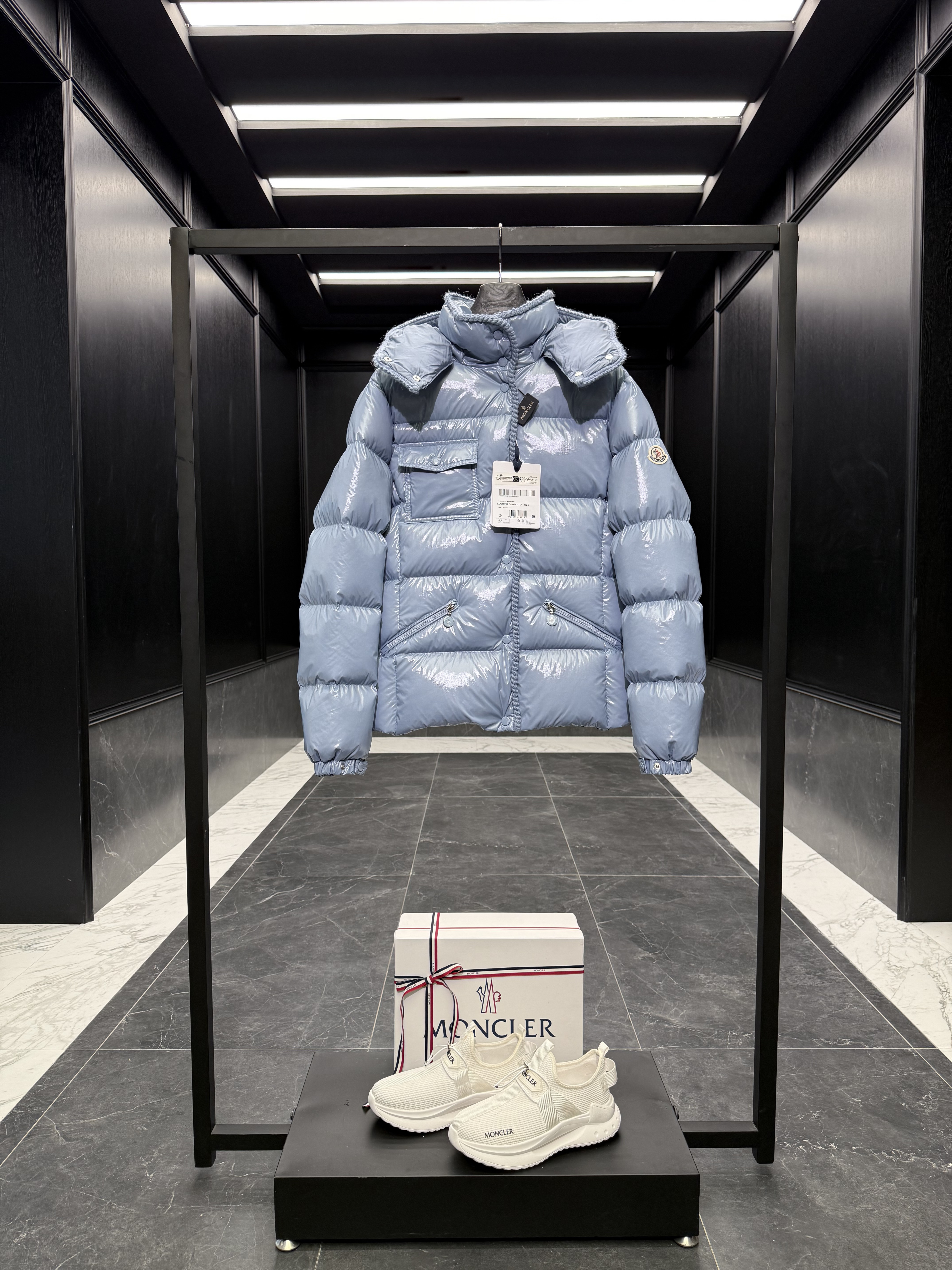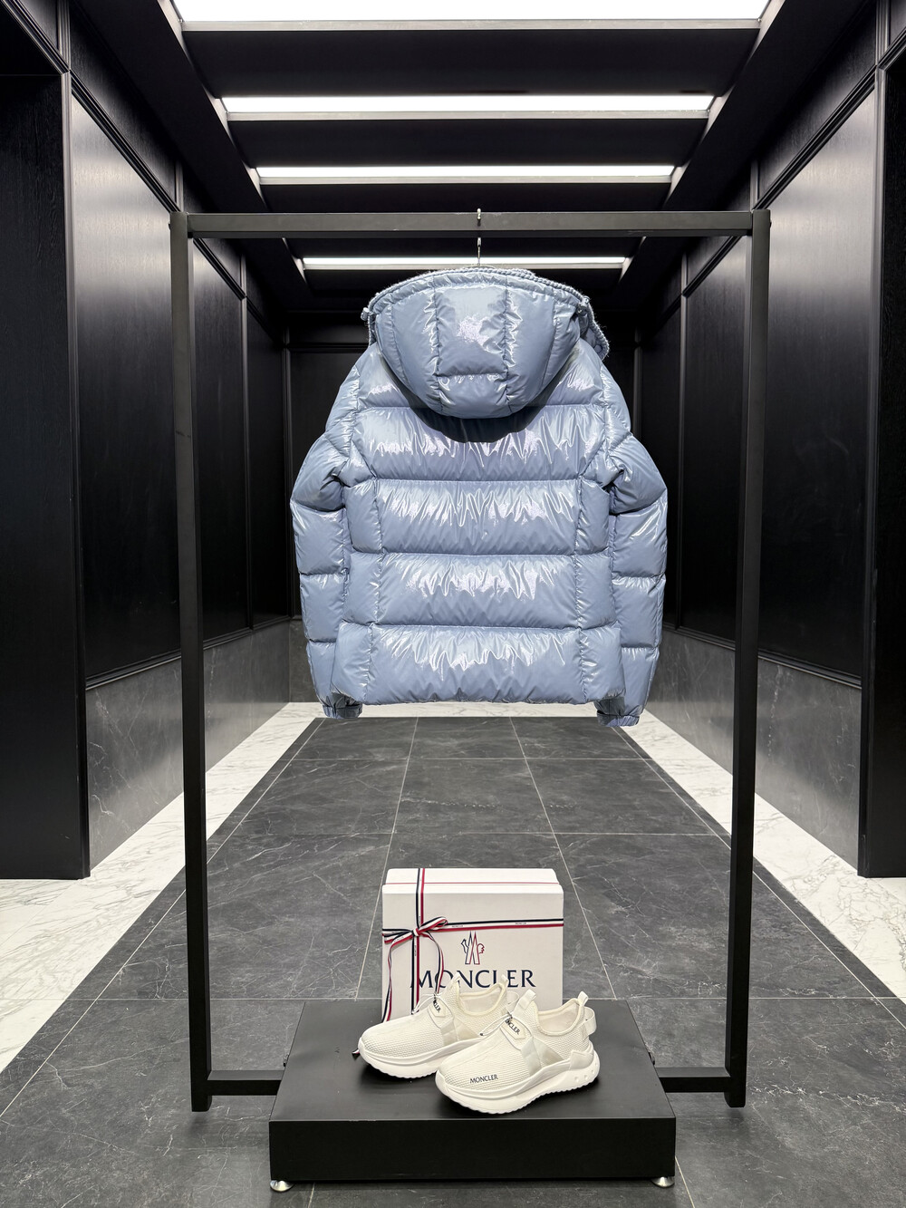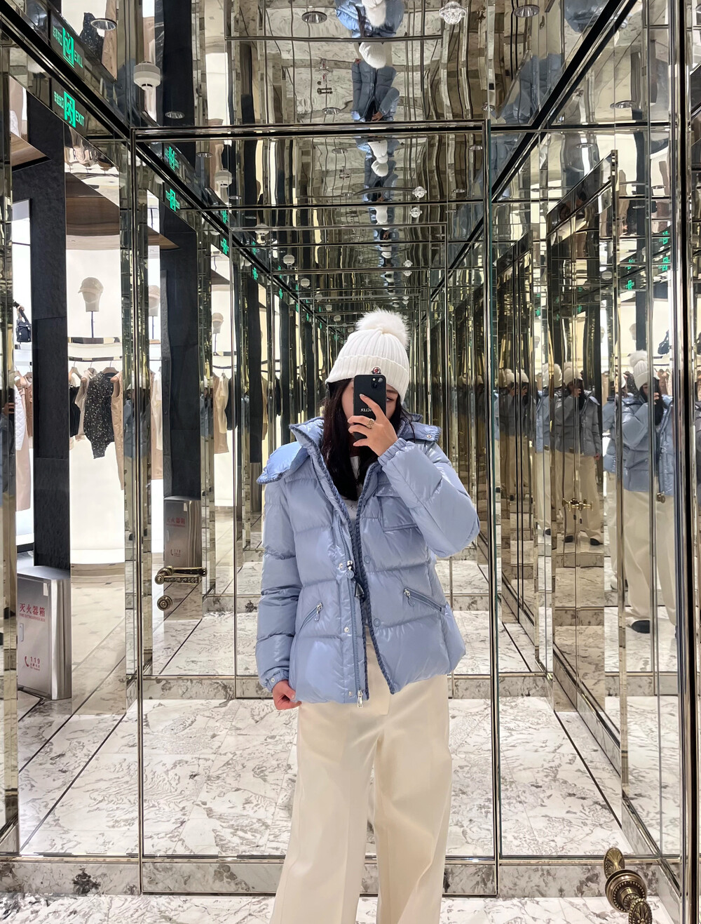 클래식 다운 재킷을 정교한 우븐 트리밍으로