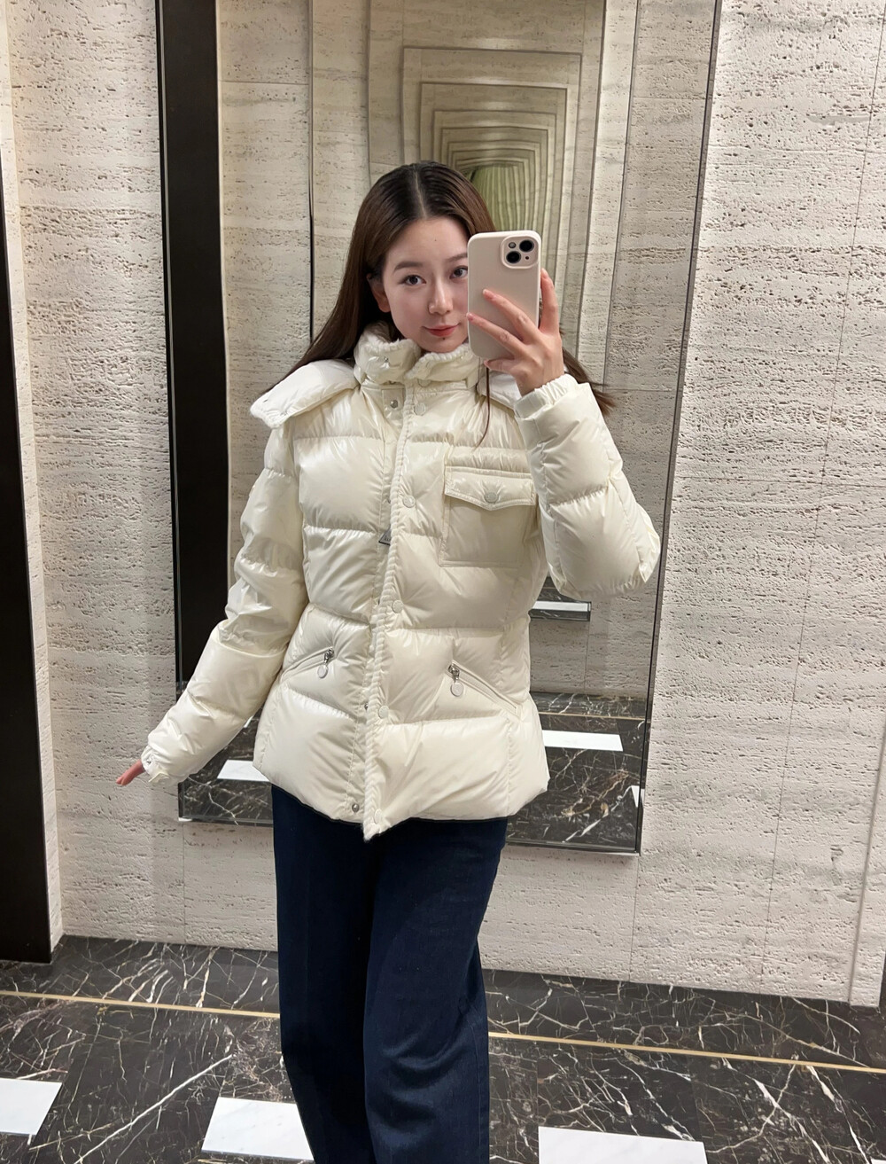 □Glareins 트림 후드 다운 자켓□