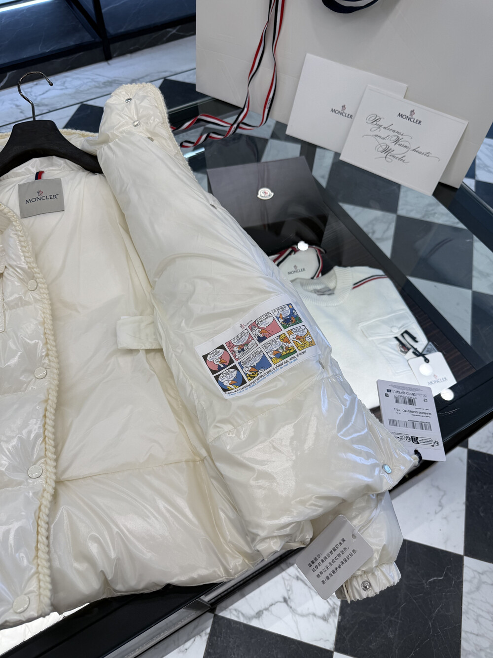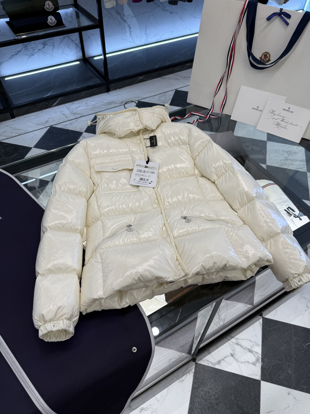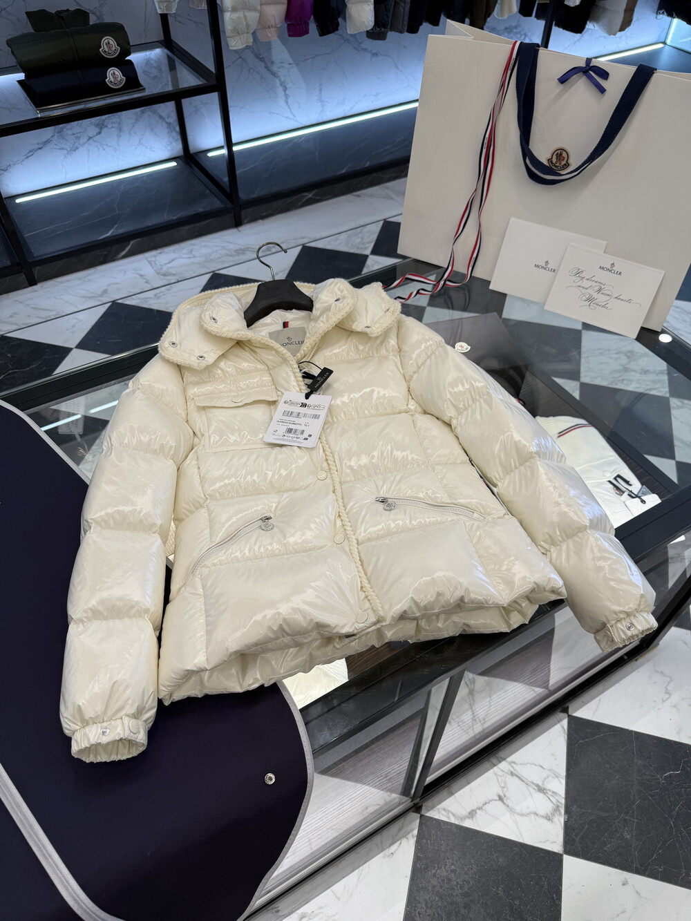 클래식 다운 재킷을 정교한 우븐 트리밍으로