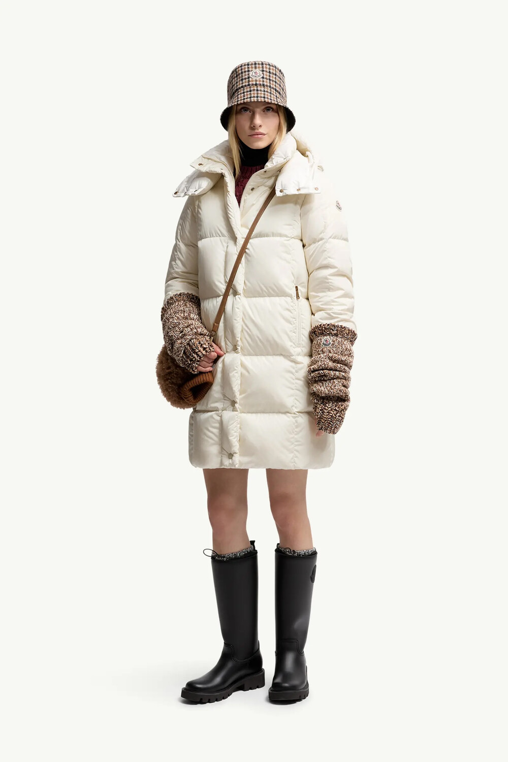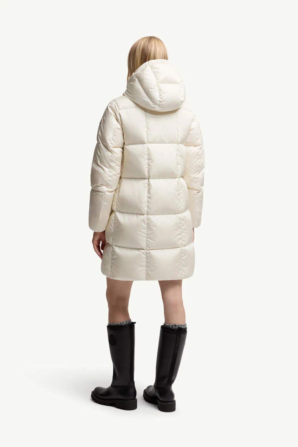 Litte 여성용 스퀘어 퀼팅 후드 롱 다운 재킷