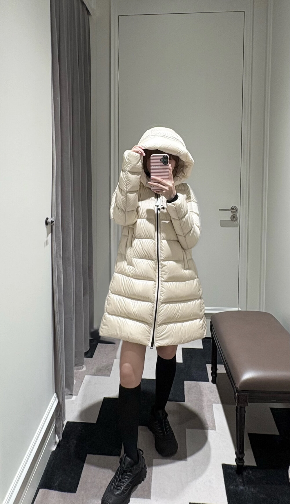 제품 상세 정보: Suyenne 미드 기장 다운 재킷은