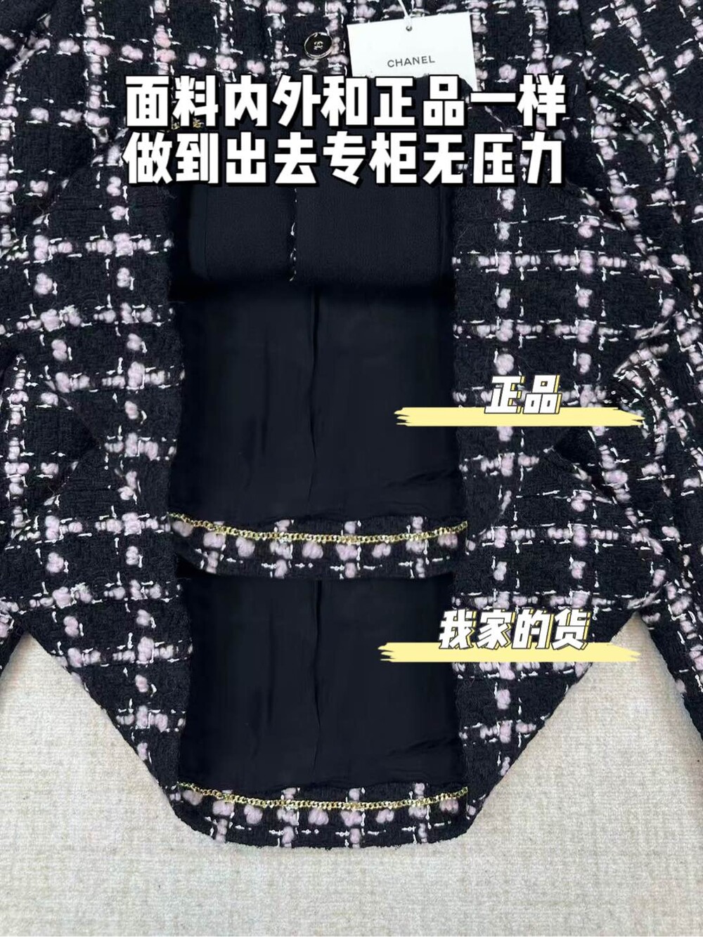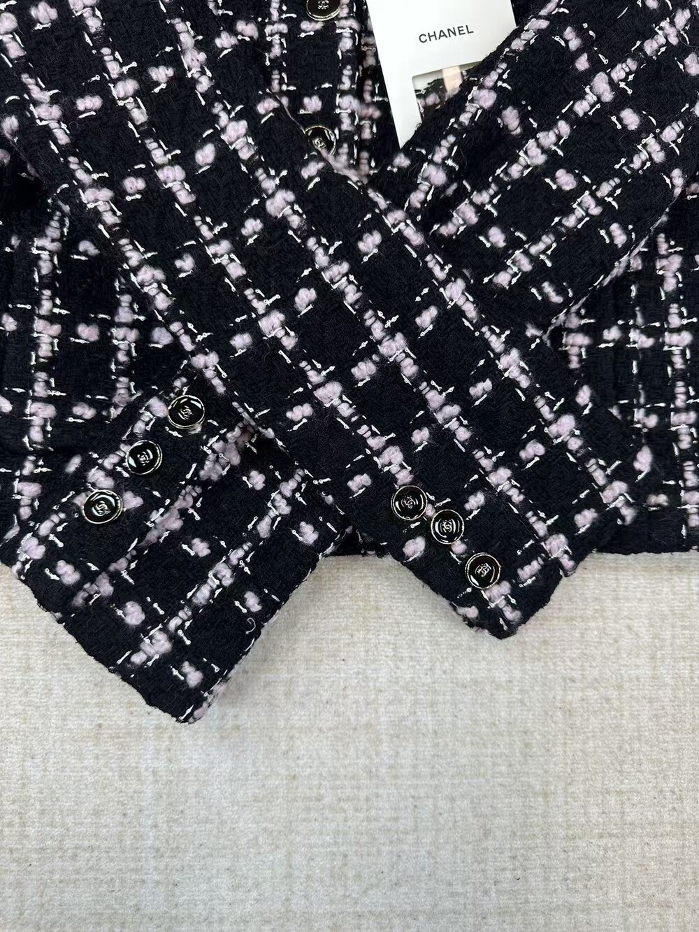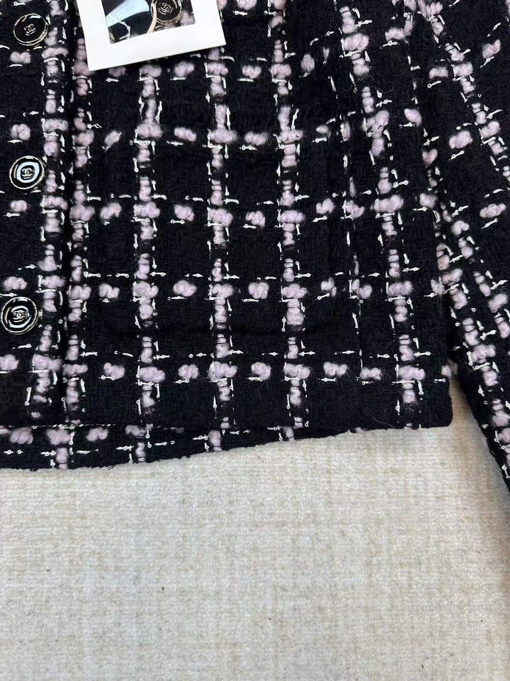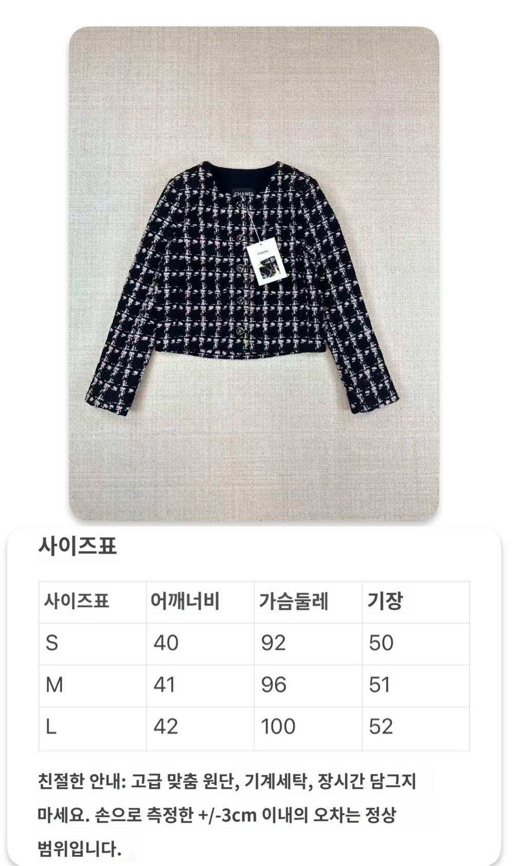 섬세한 핑크와 블랙 색상의 트위드 소재가