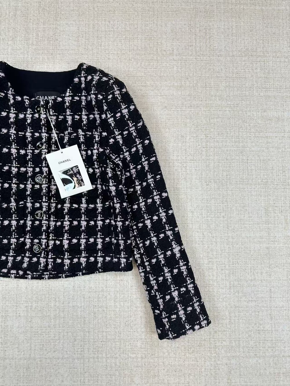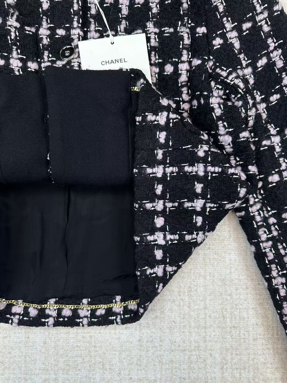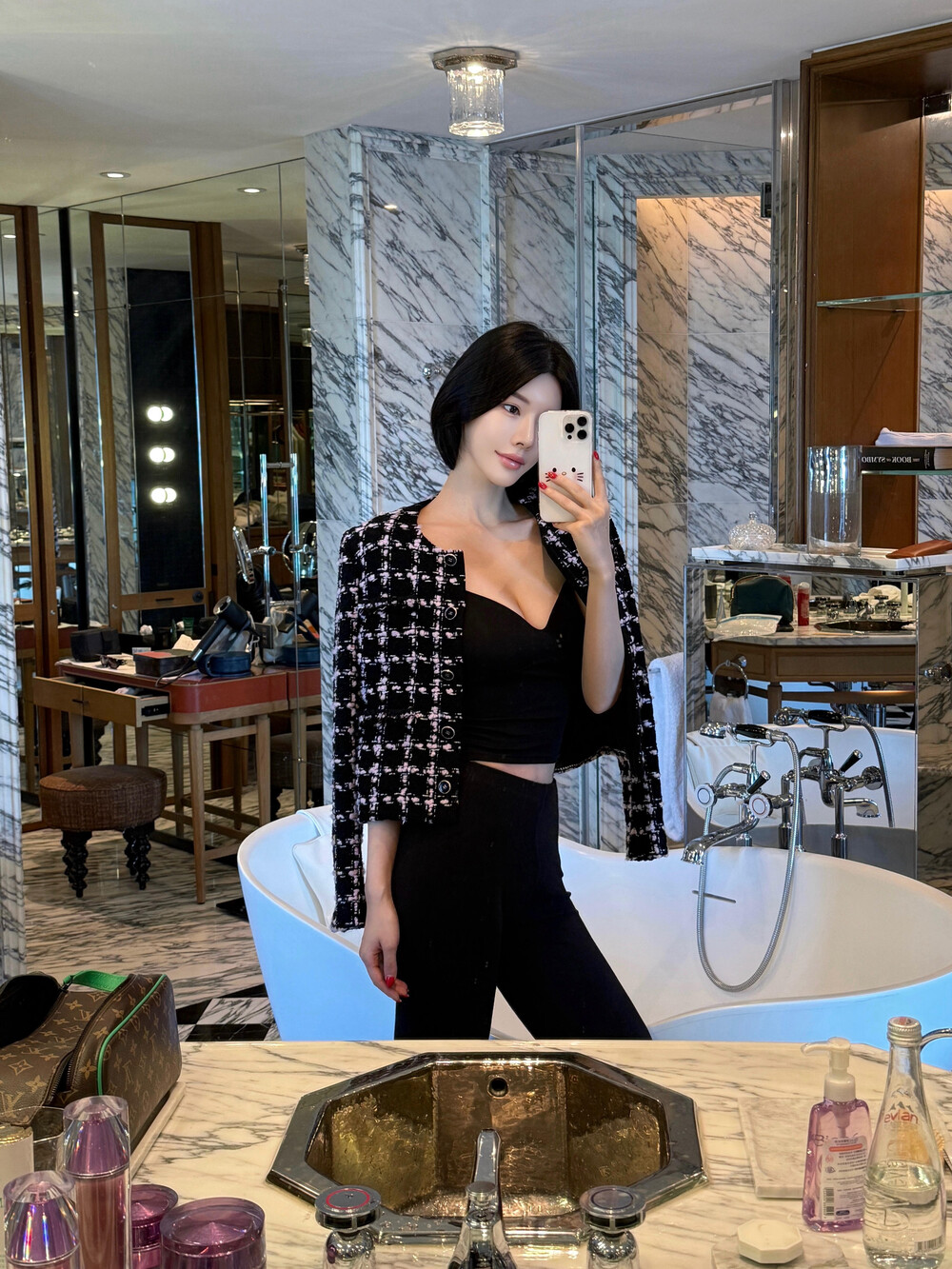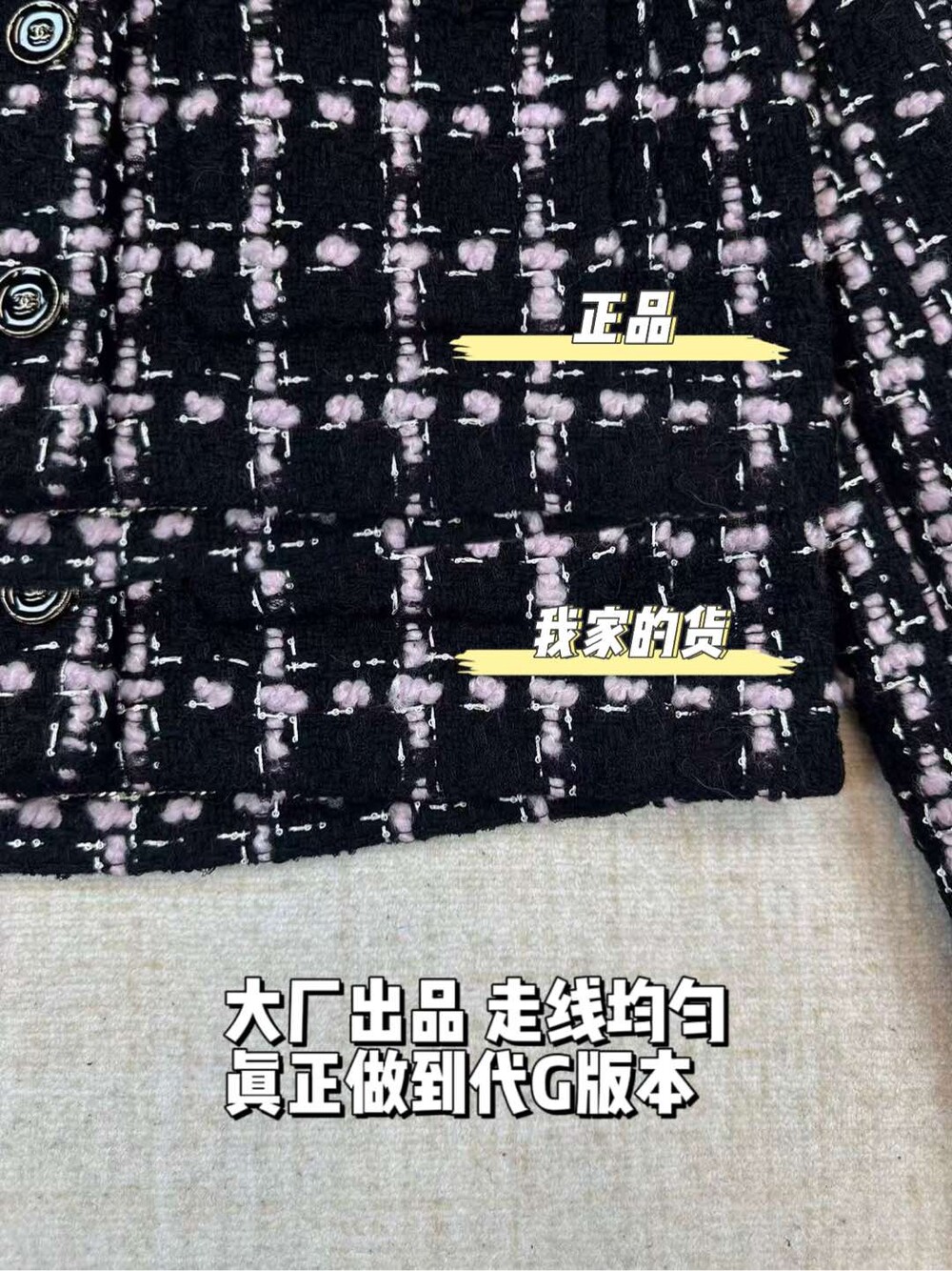 섬세한 핑크와 블랙 색상의 트위드 소재가