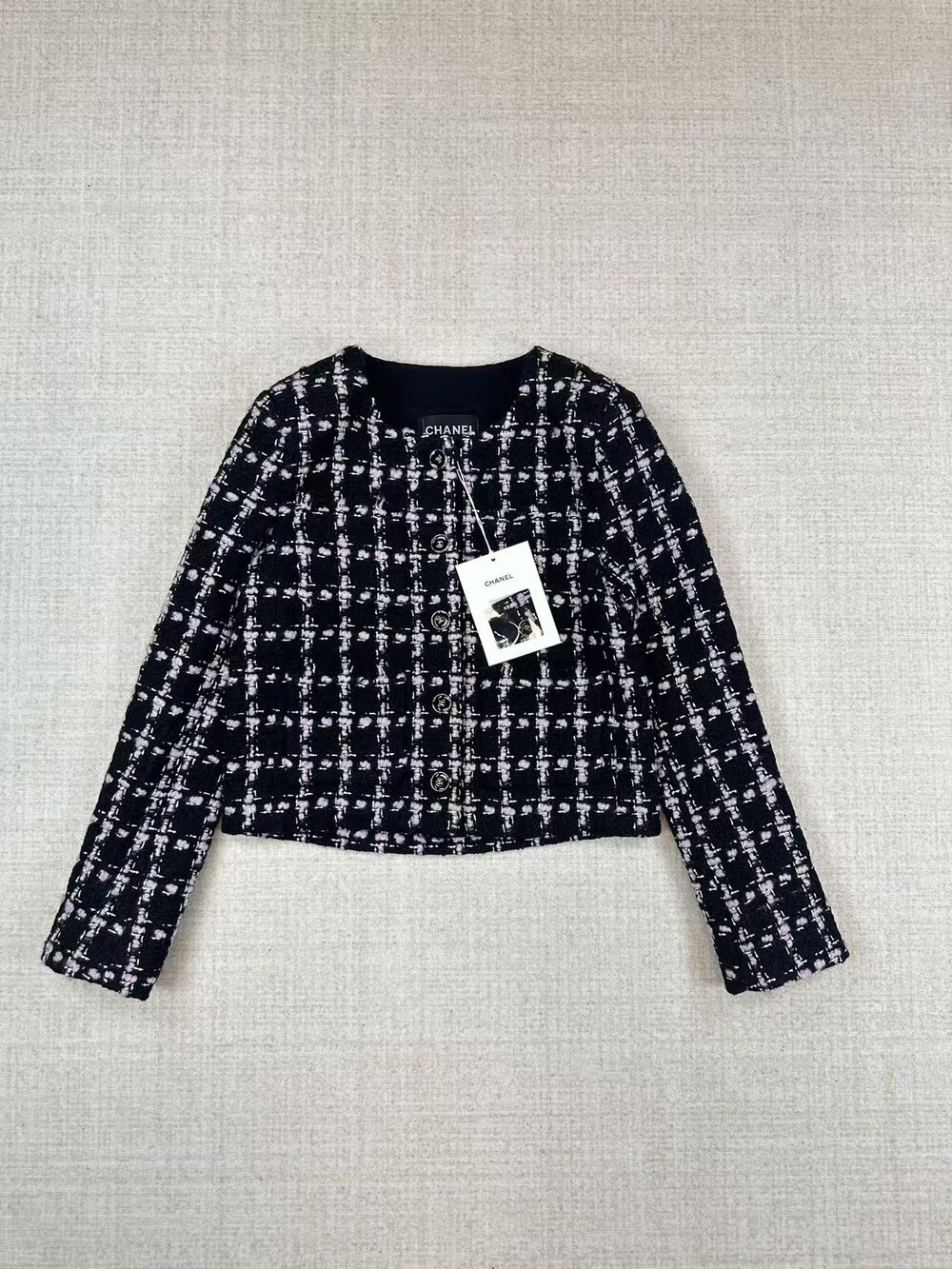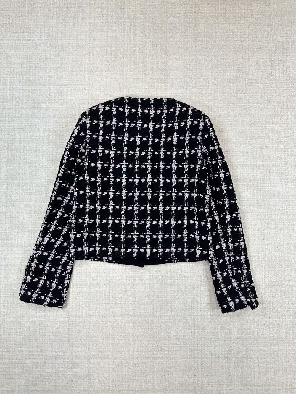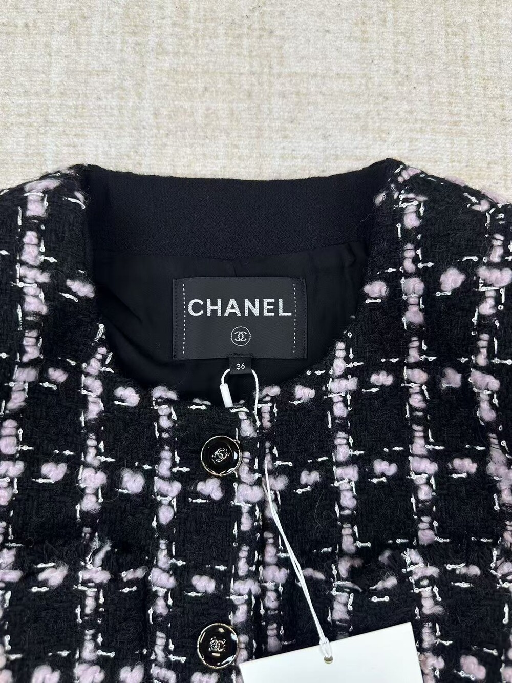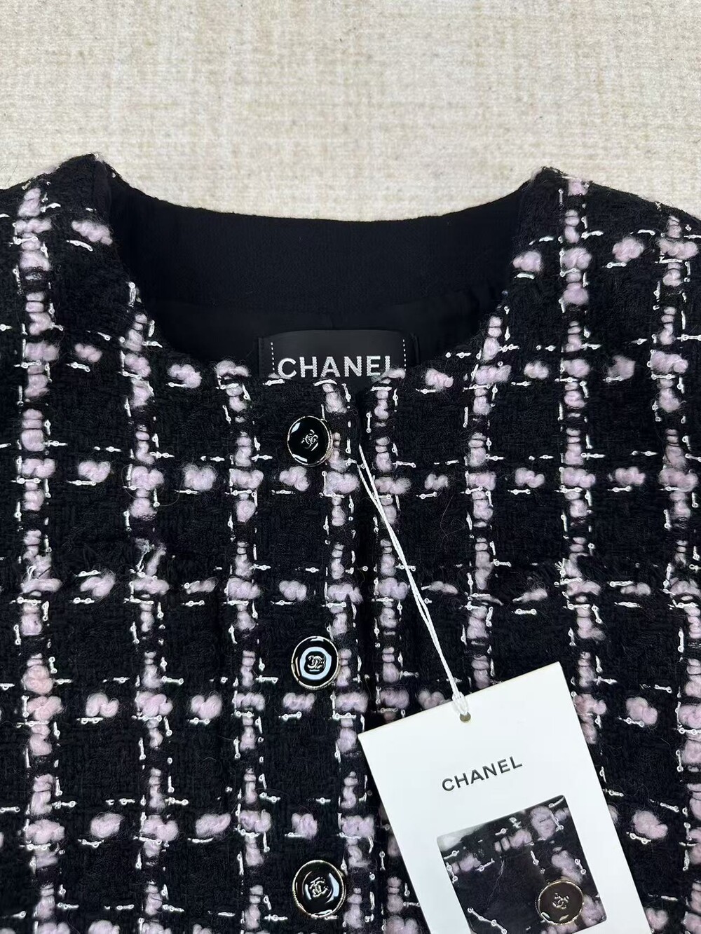 섬세한 핑크와 블랙 색상의 트위드 소재가