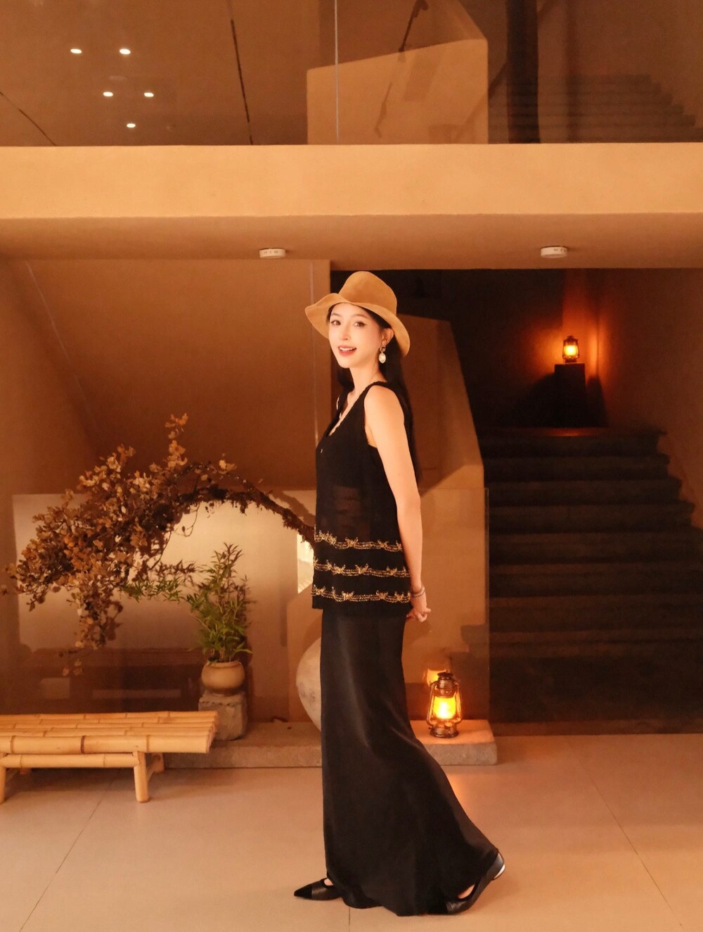 자수 밑단 패턴이 레이어드 디테일을 더합니다