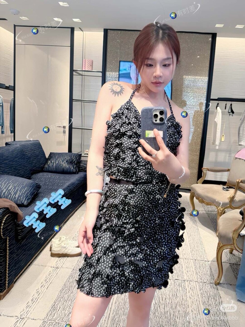 홀터넥 캐미솔 + A라인 미니스커트 세트