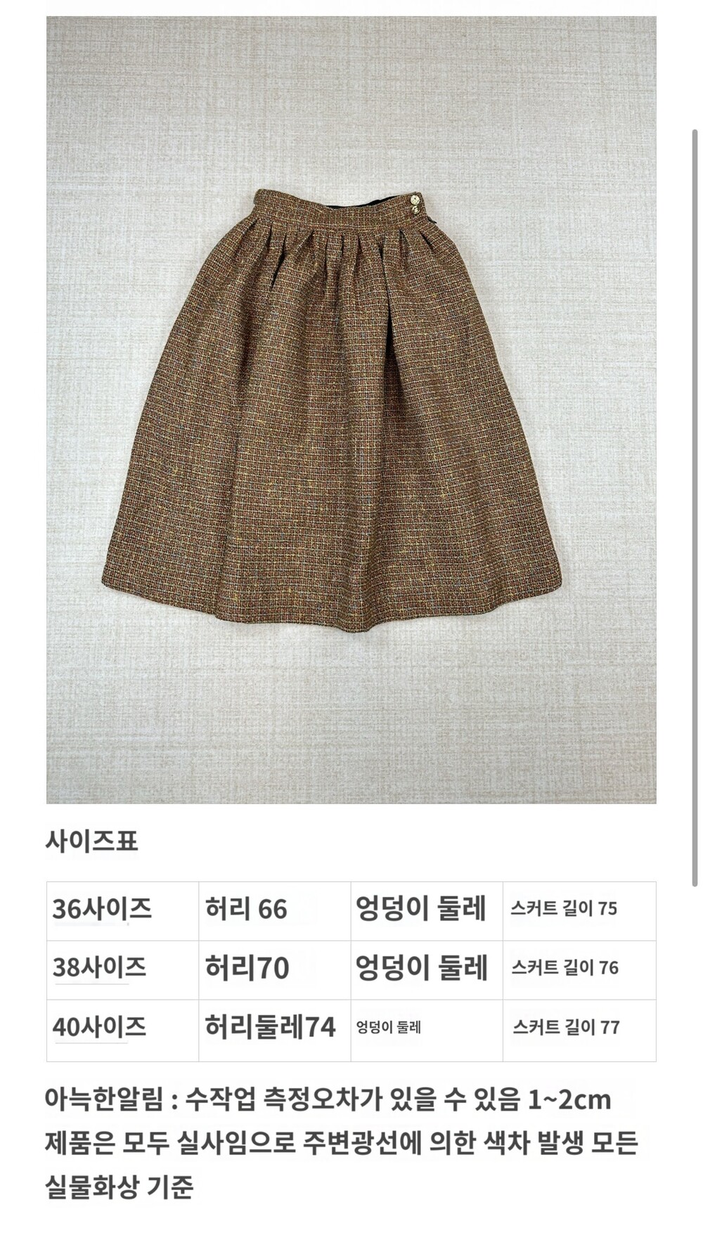 (측정방법에 따라 ±1~3cm의 오차가 있을 수 있습니다)