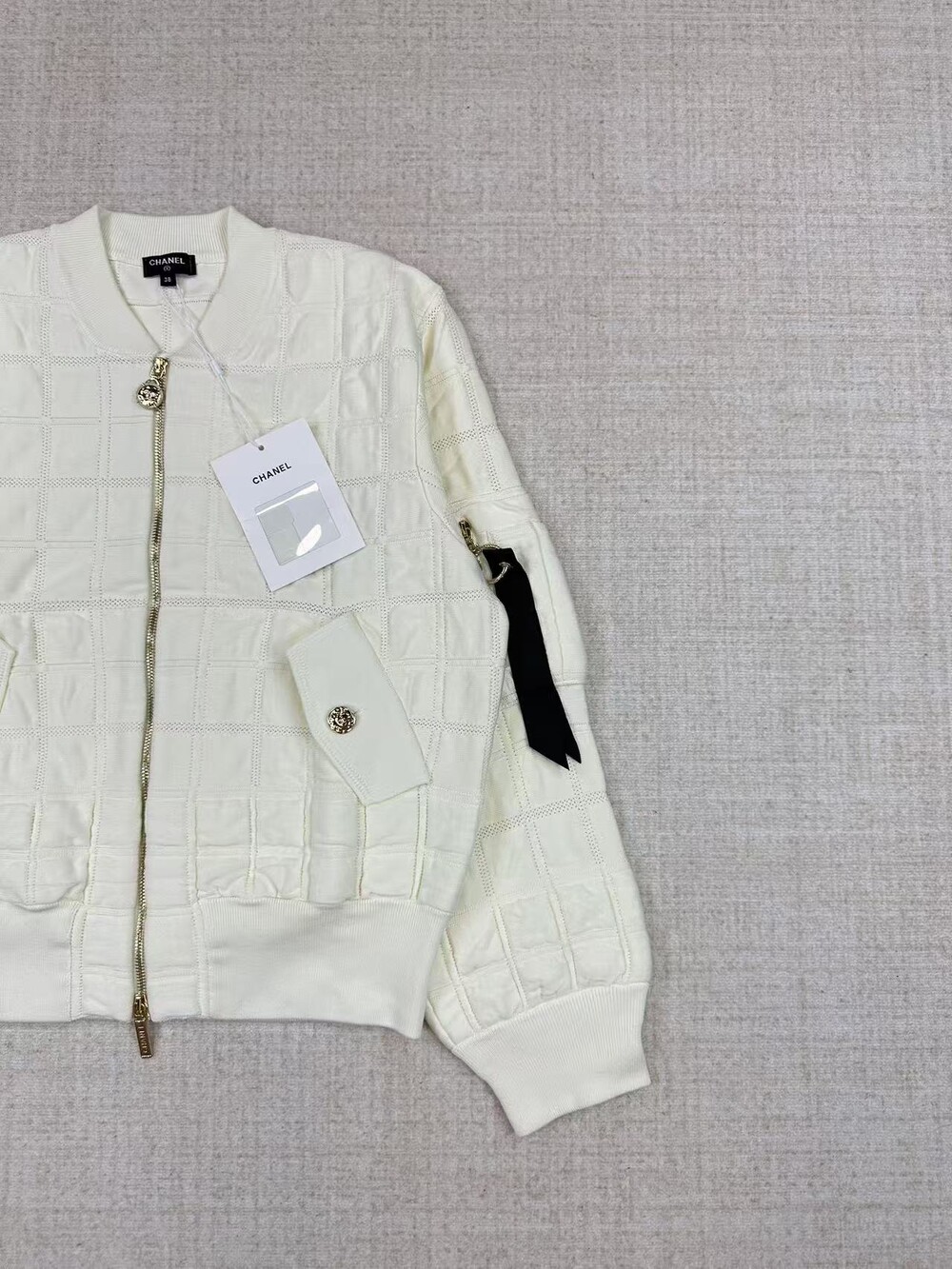 스탠드업 칼라 지퍼 리본 보머 재킷 |