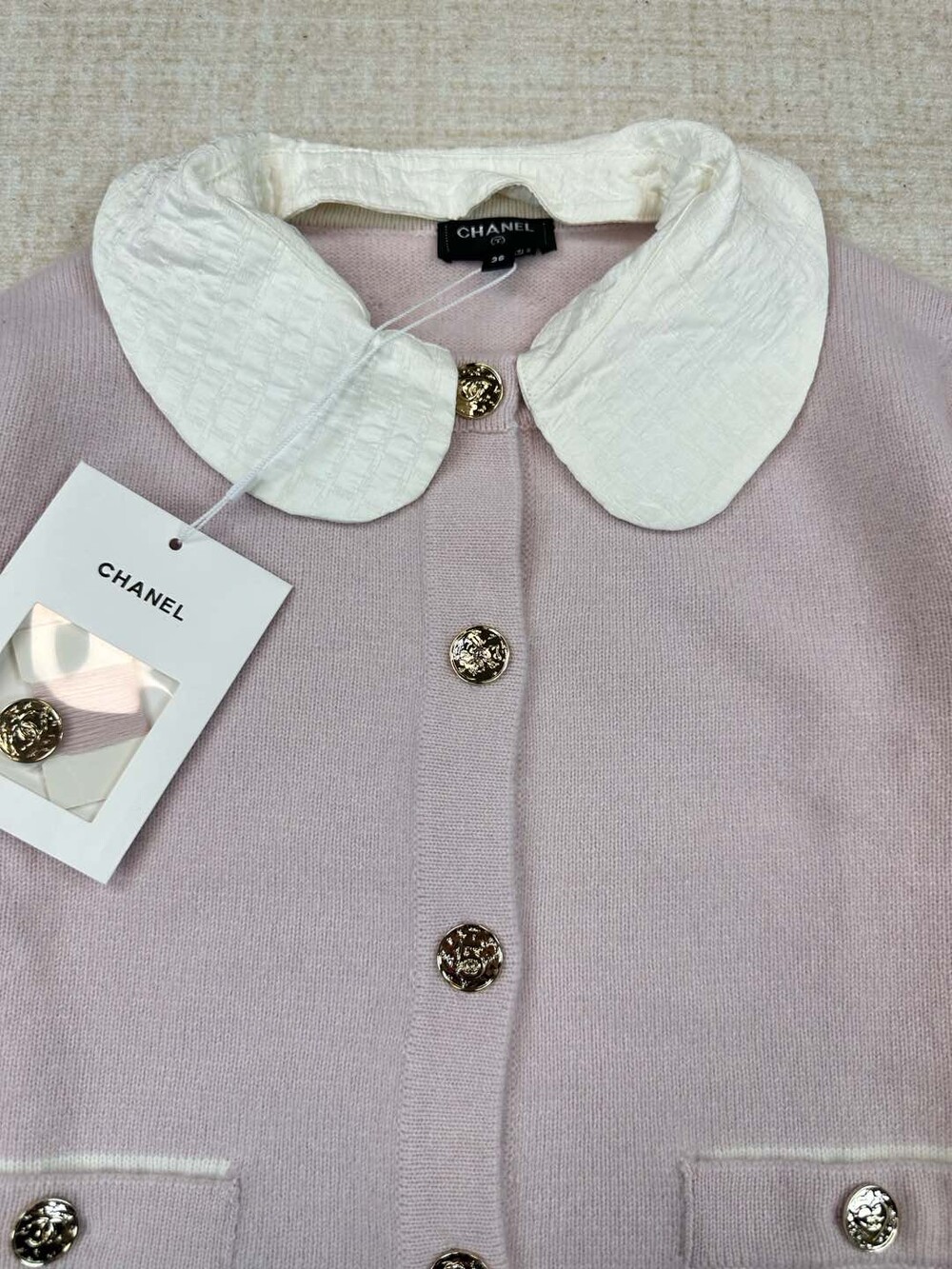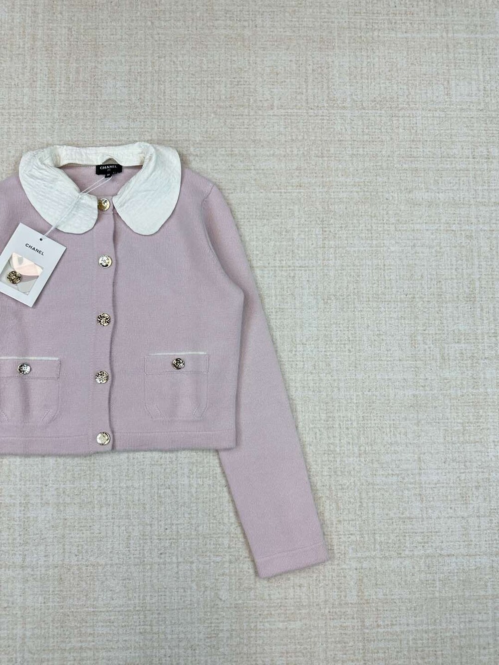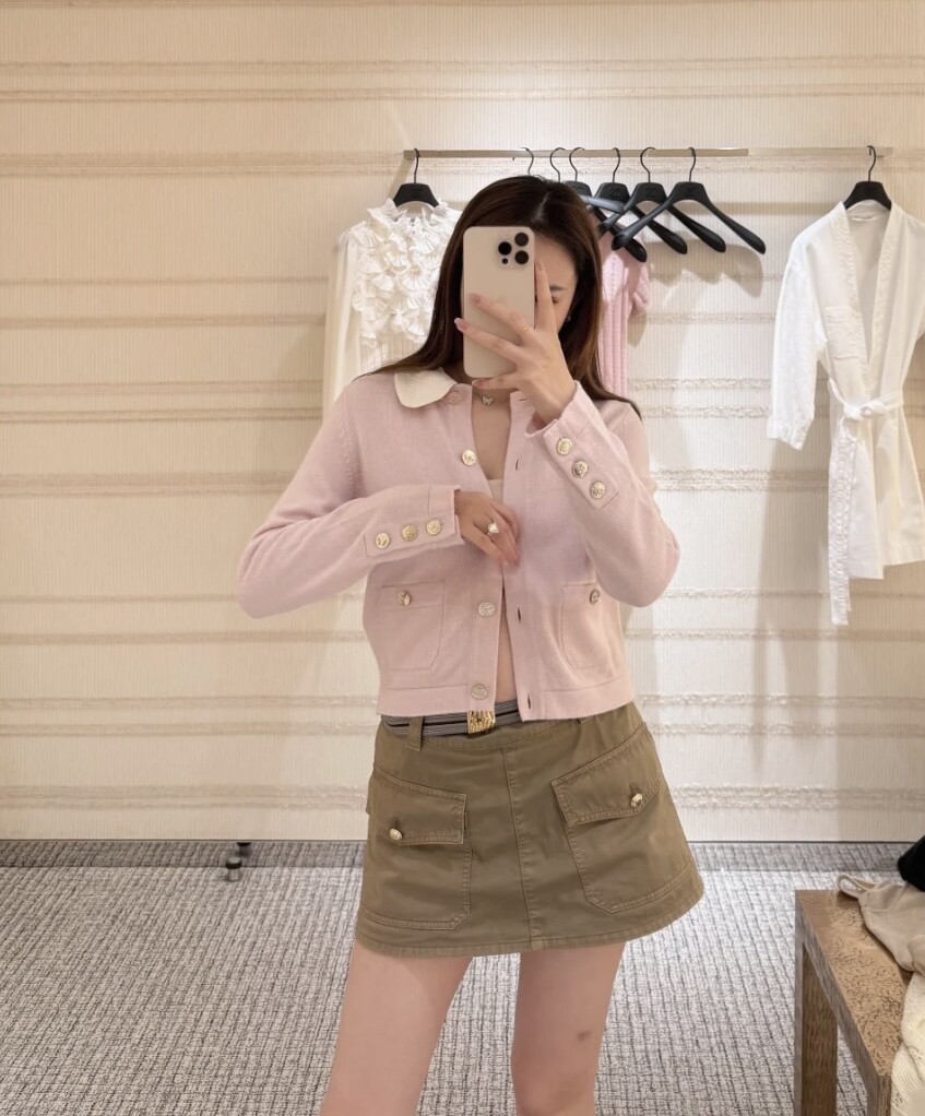더블 C 자카드 칼라 니트 카디건 |