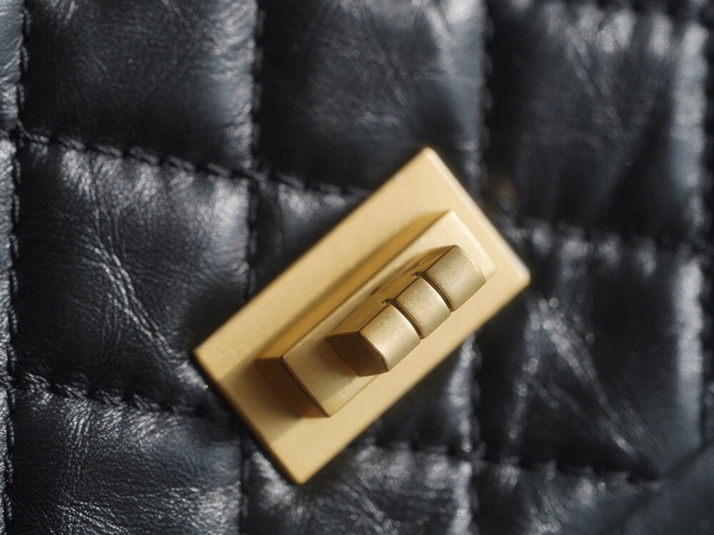 사각형 잠금장치가 달린 독특한 퀼팅 가죽