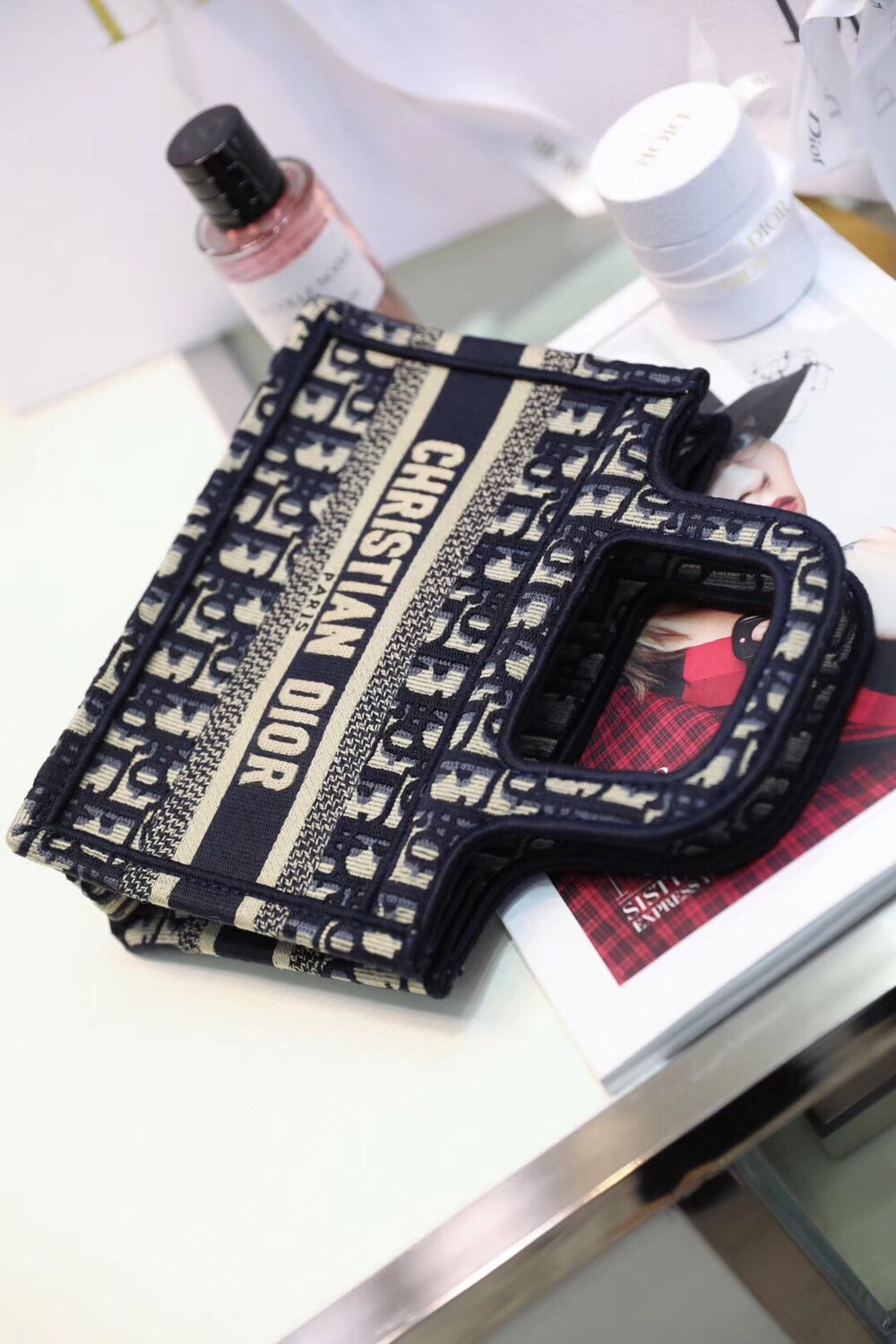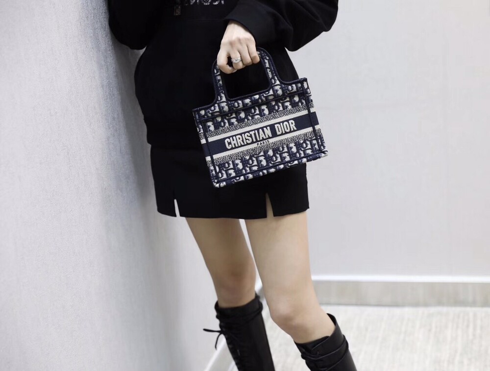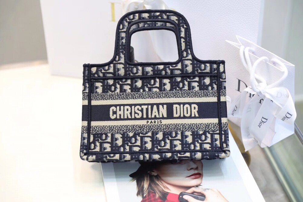 D.ior Book Tote Oblique 패턴 미니블루