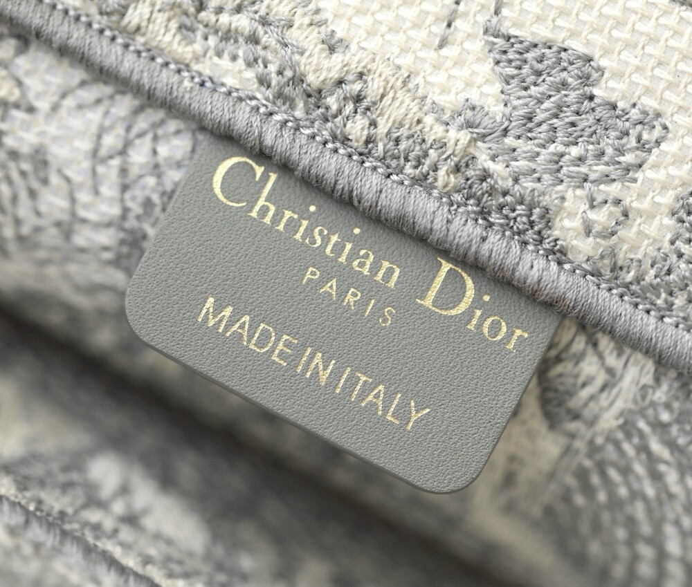 전면의 "C.hristian D.ior" 시그니처 자수가