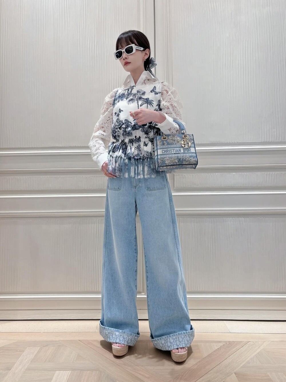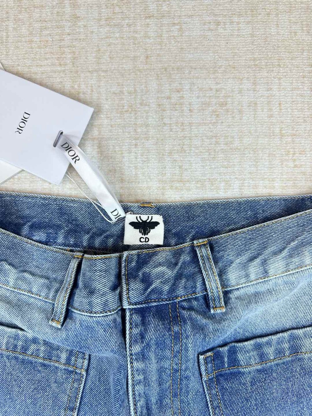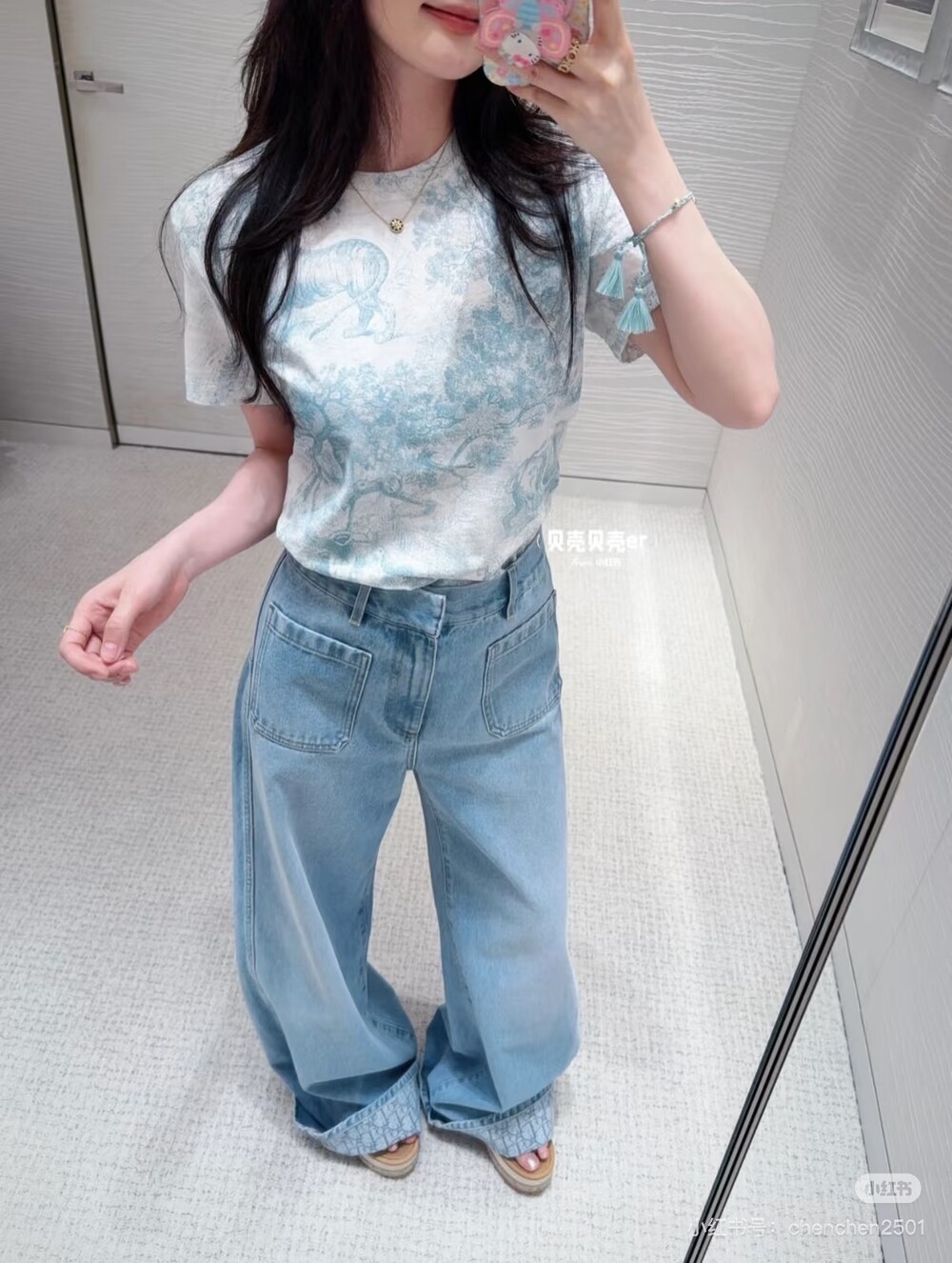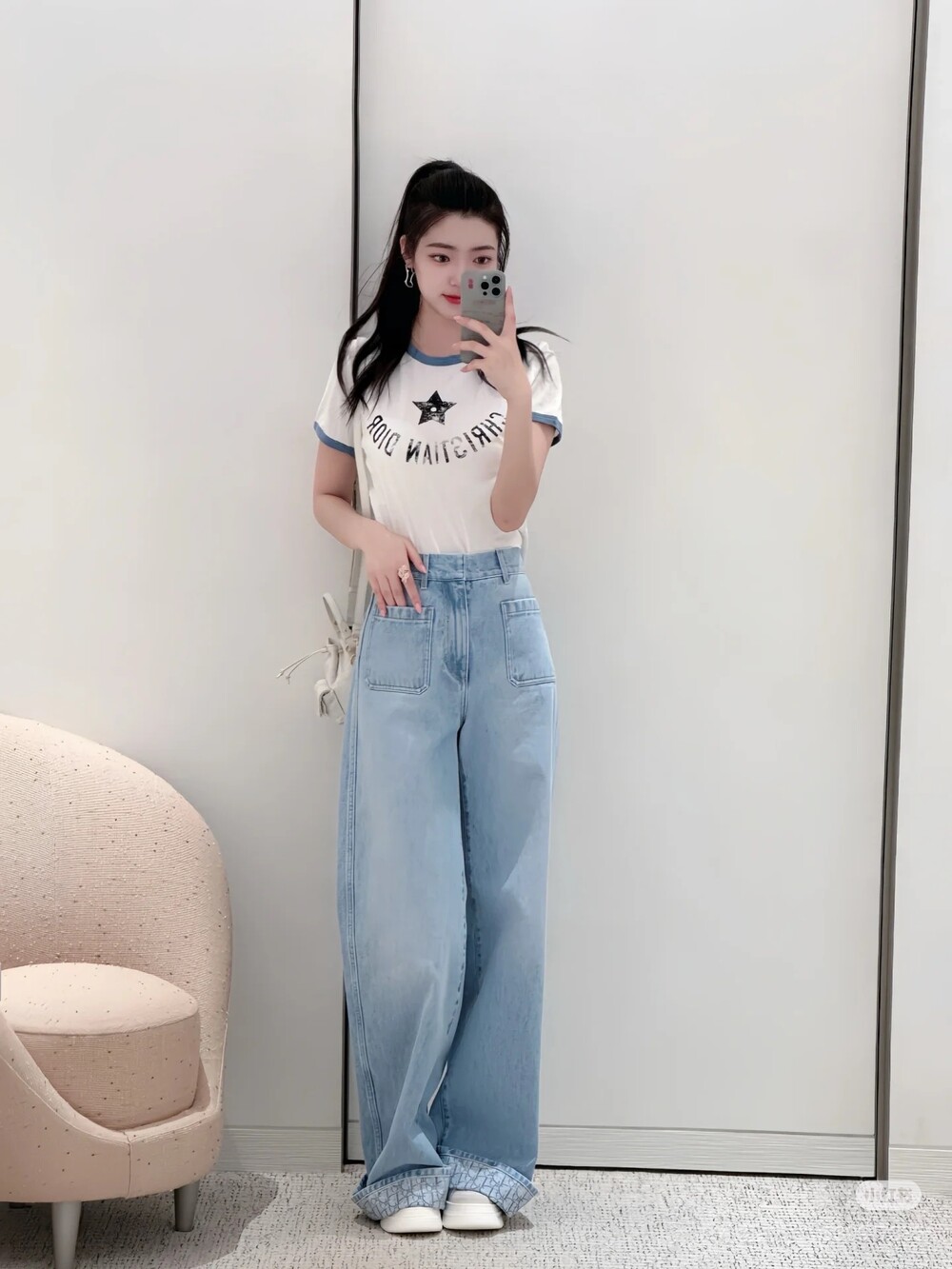 라이트 블루 워싱 원단으로 제작된